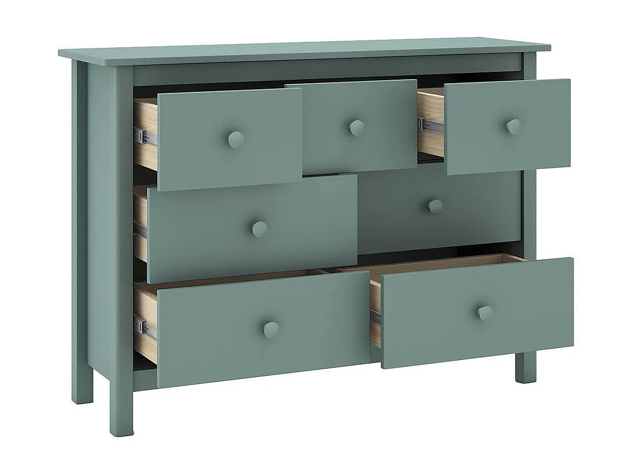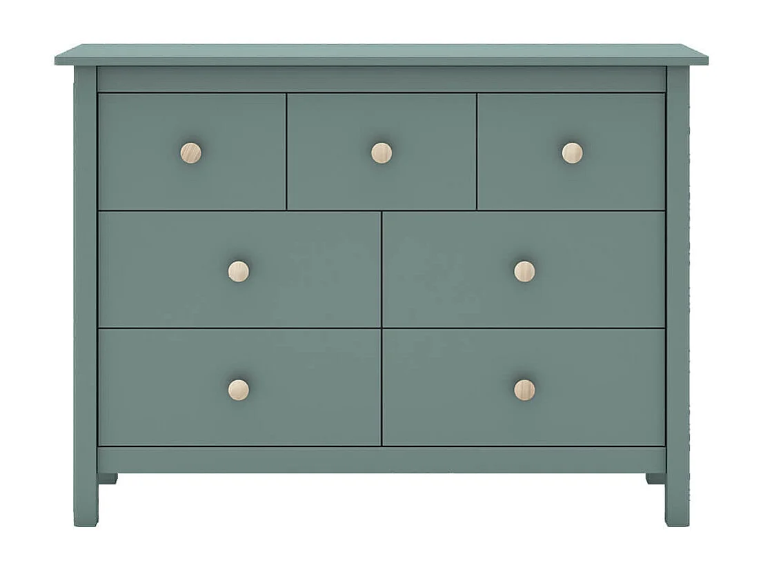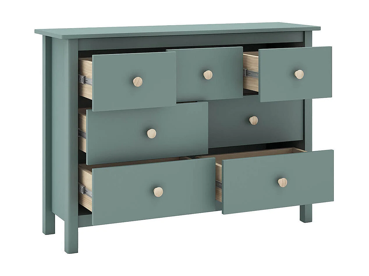 DAVA - Commode 7 Tiroirs en Pin Massif Vert Pétrole