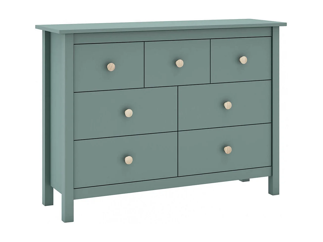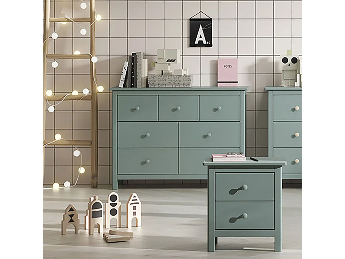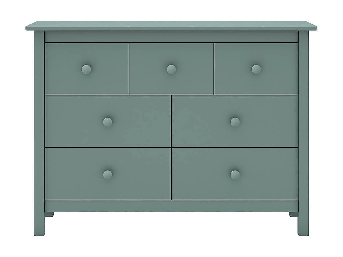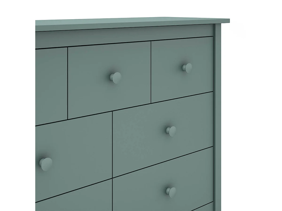 DAVA - Commode 7 Tiroirs en Pin Massif Vert Pétrole
