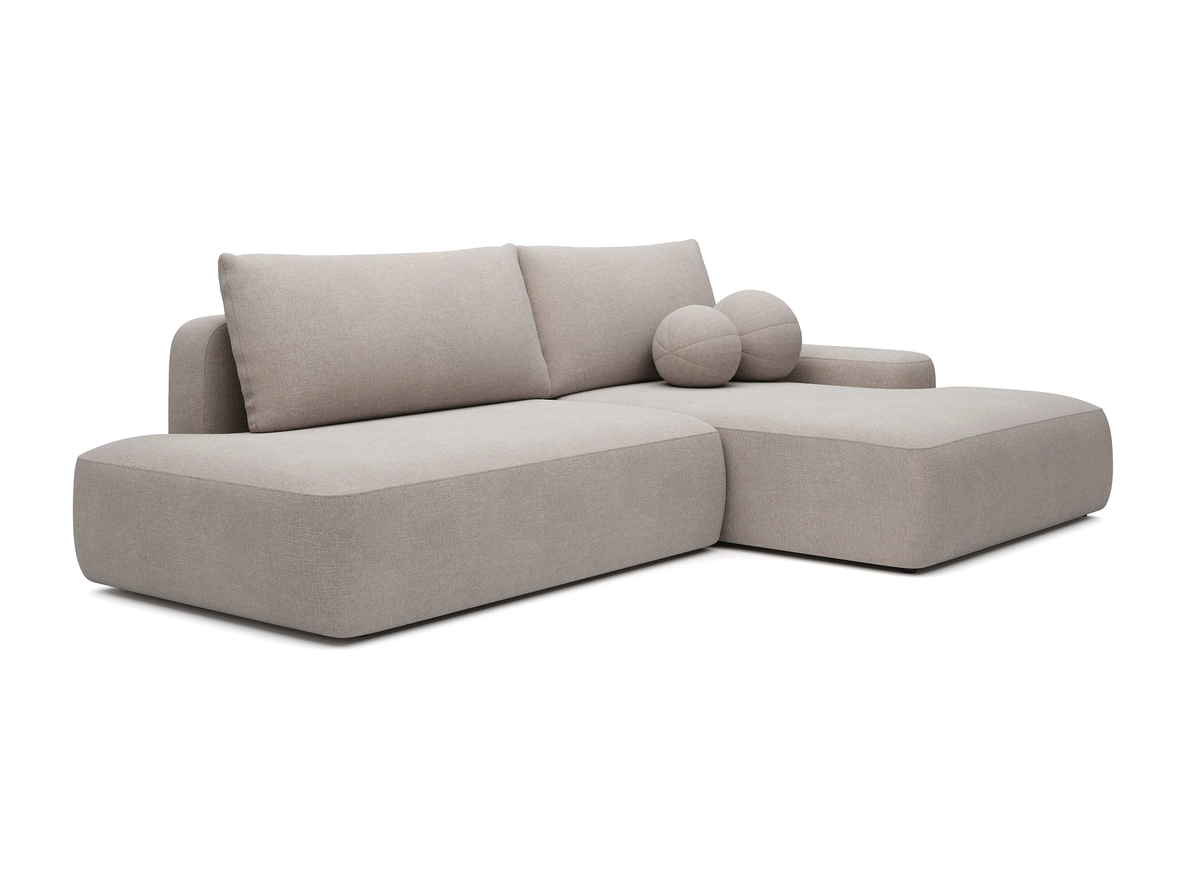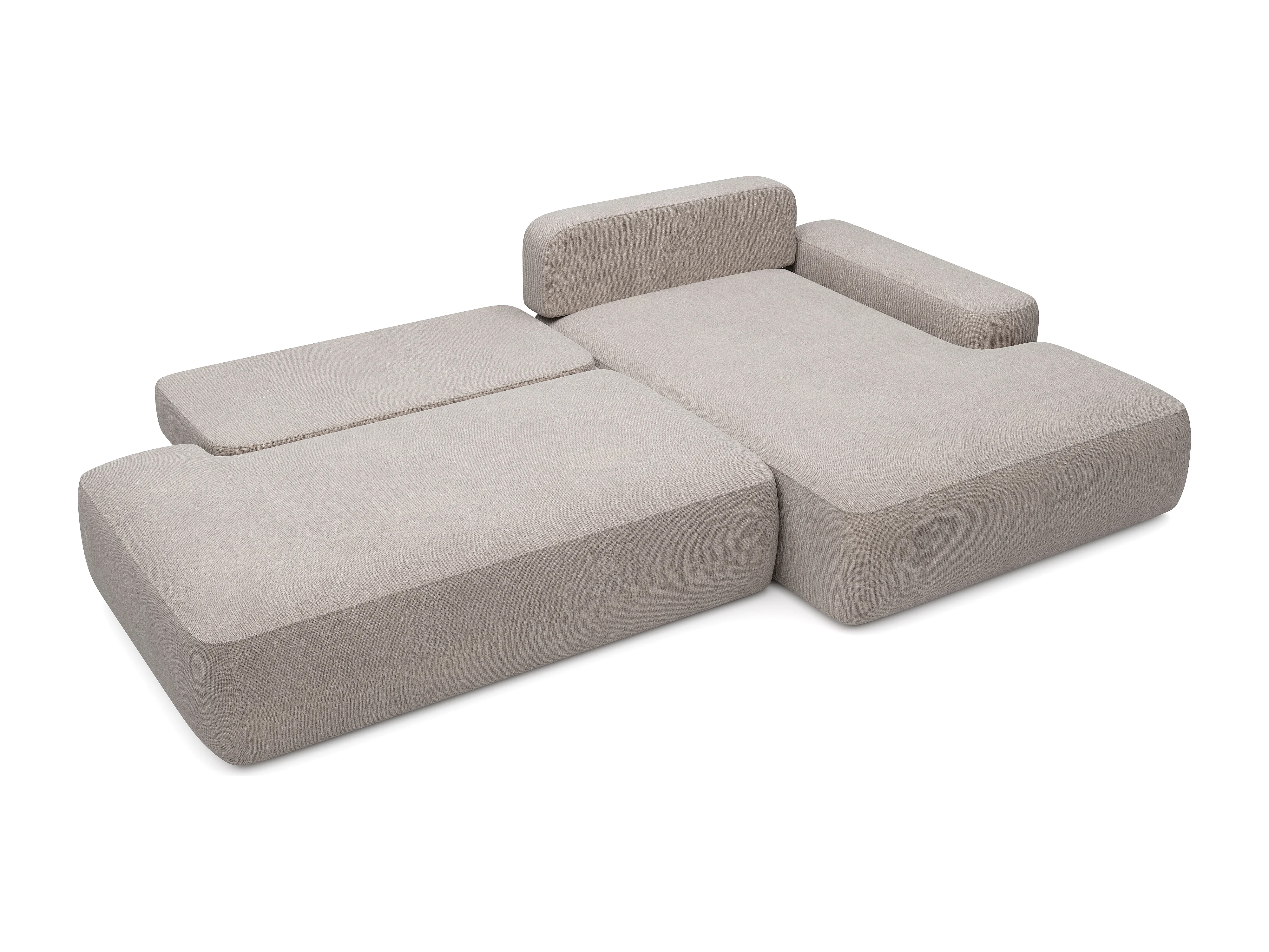 Canapé d'angle droit ouvert convertible en tissu texturé taupe DAVISO