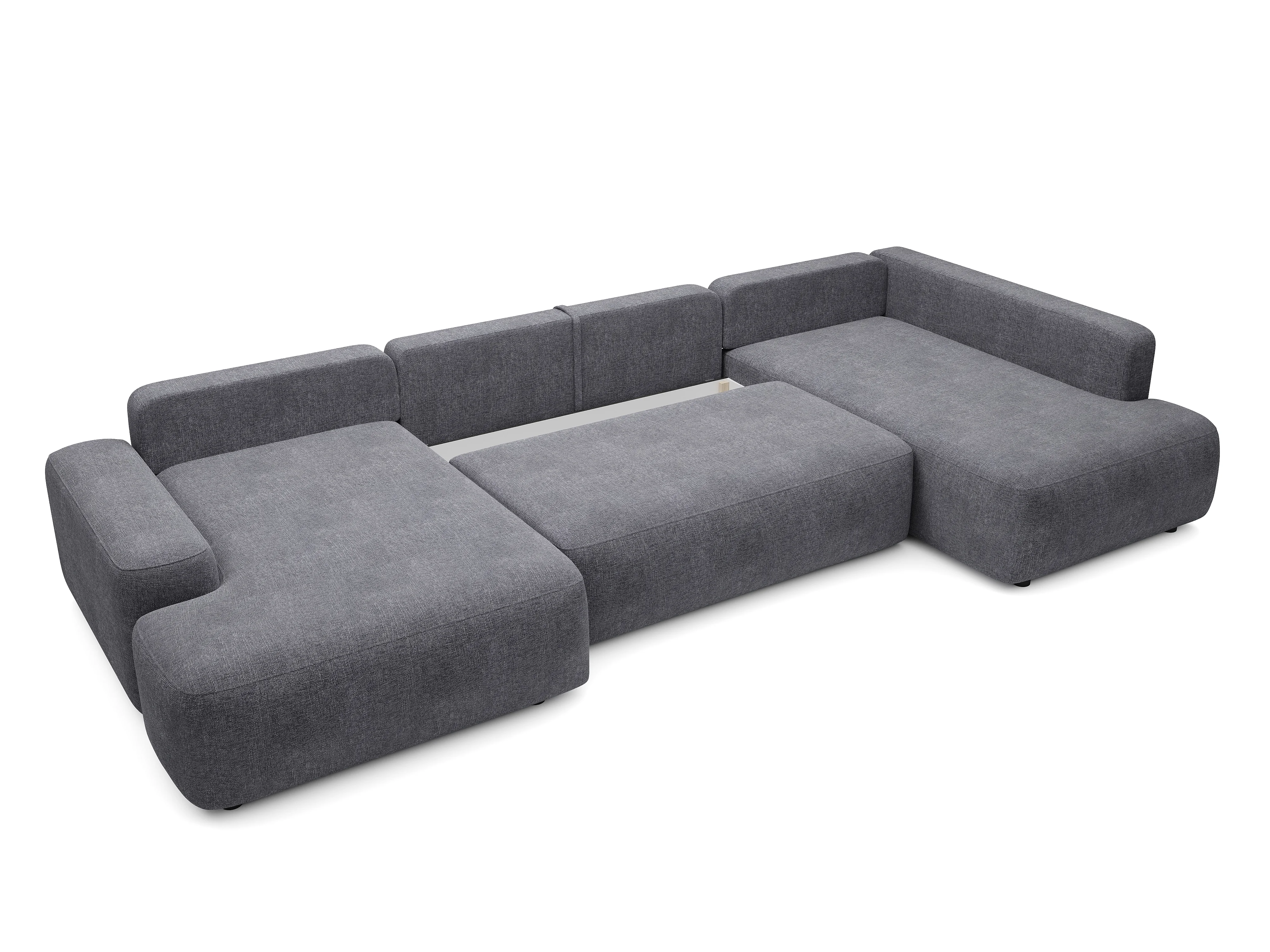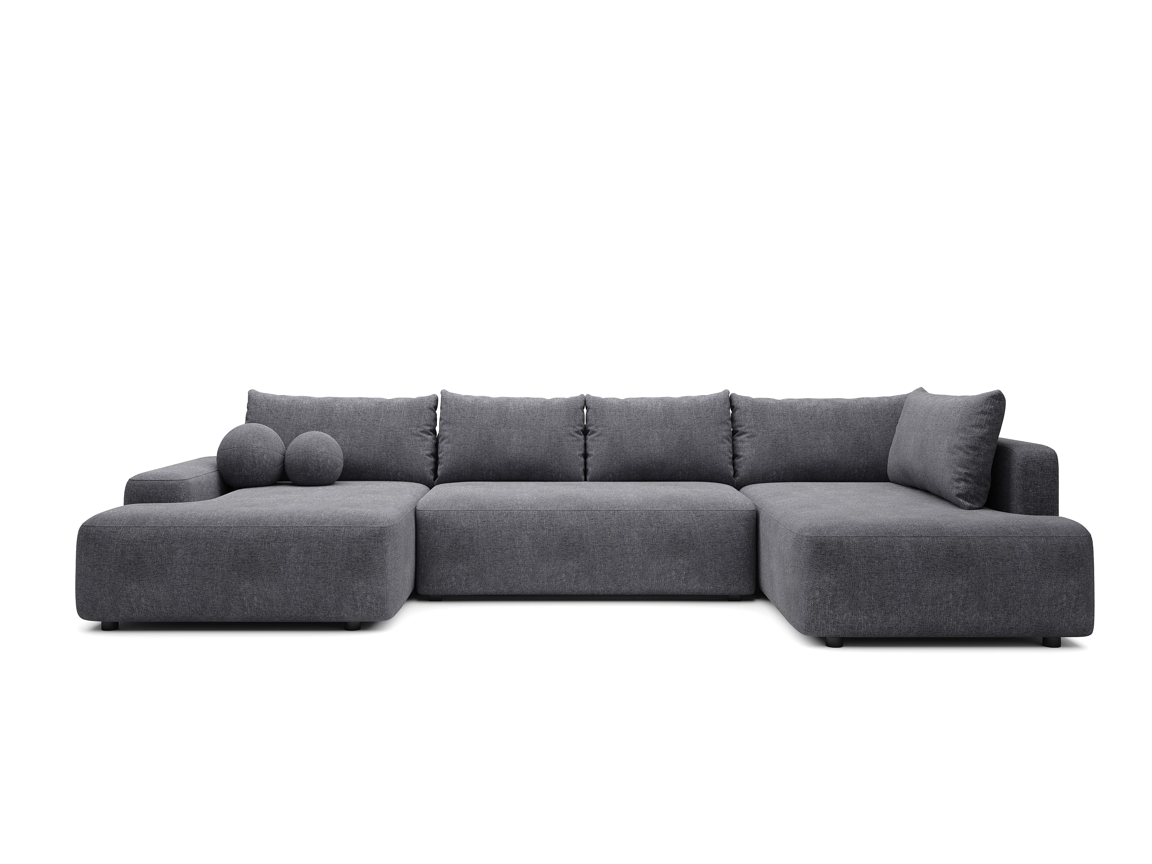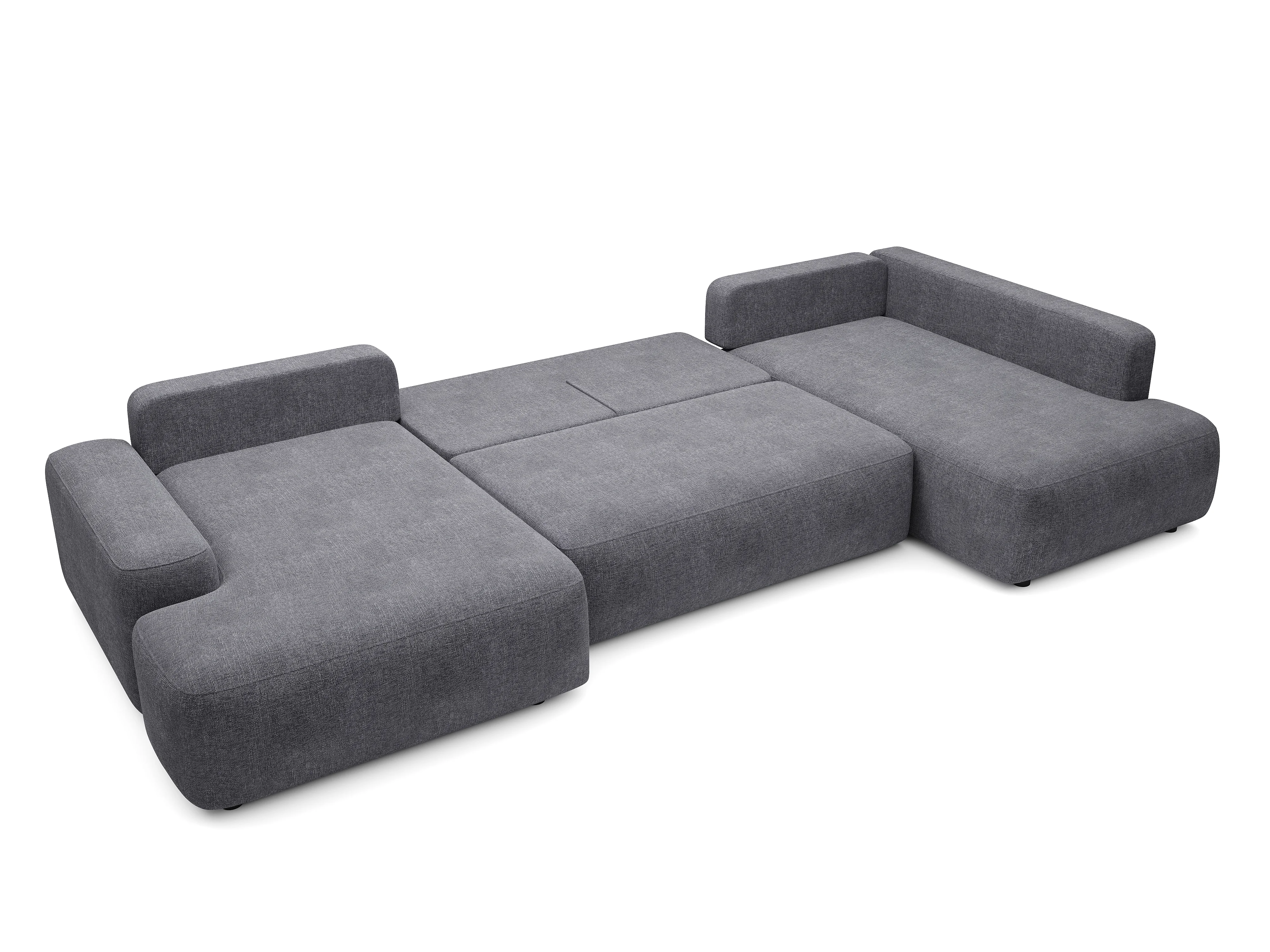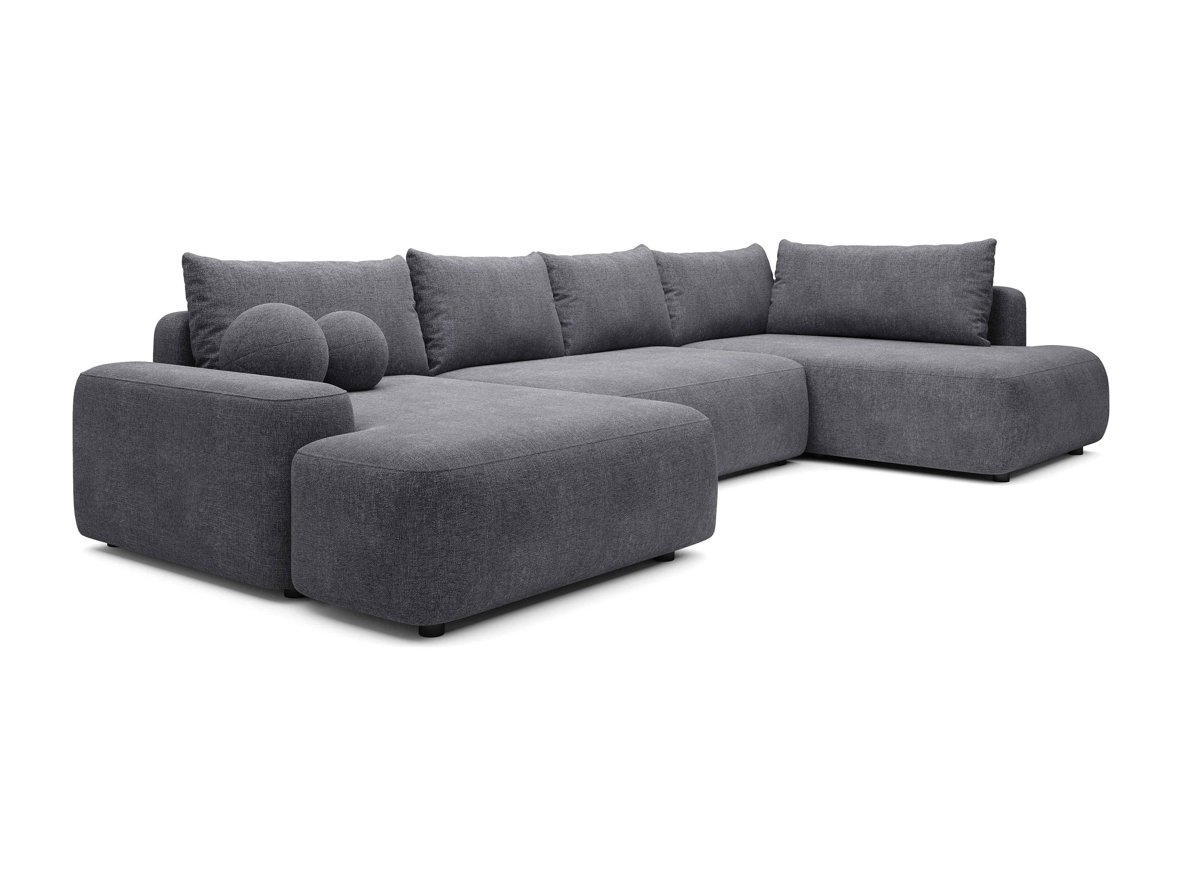 Grand canapé d'angle droit panoramique convertible en tissu texturé gris anthracite DAVISO