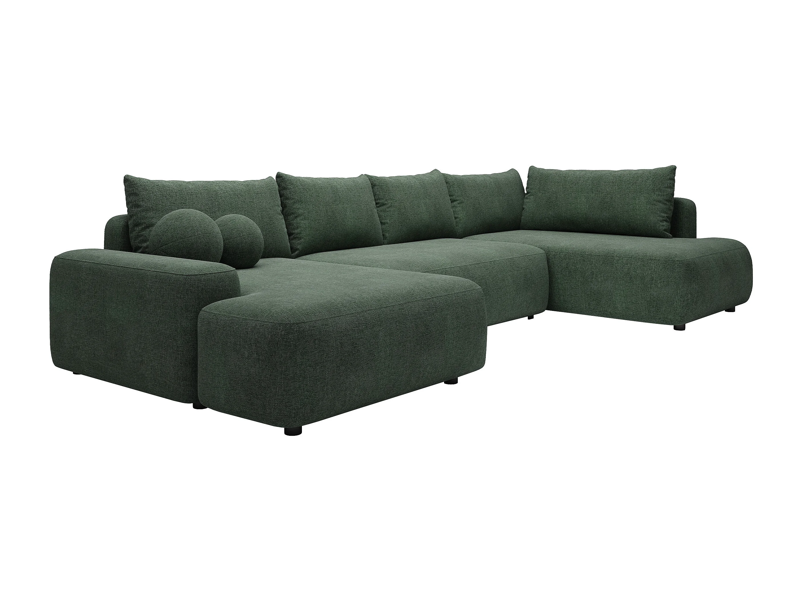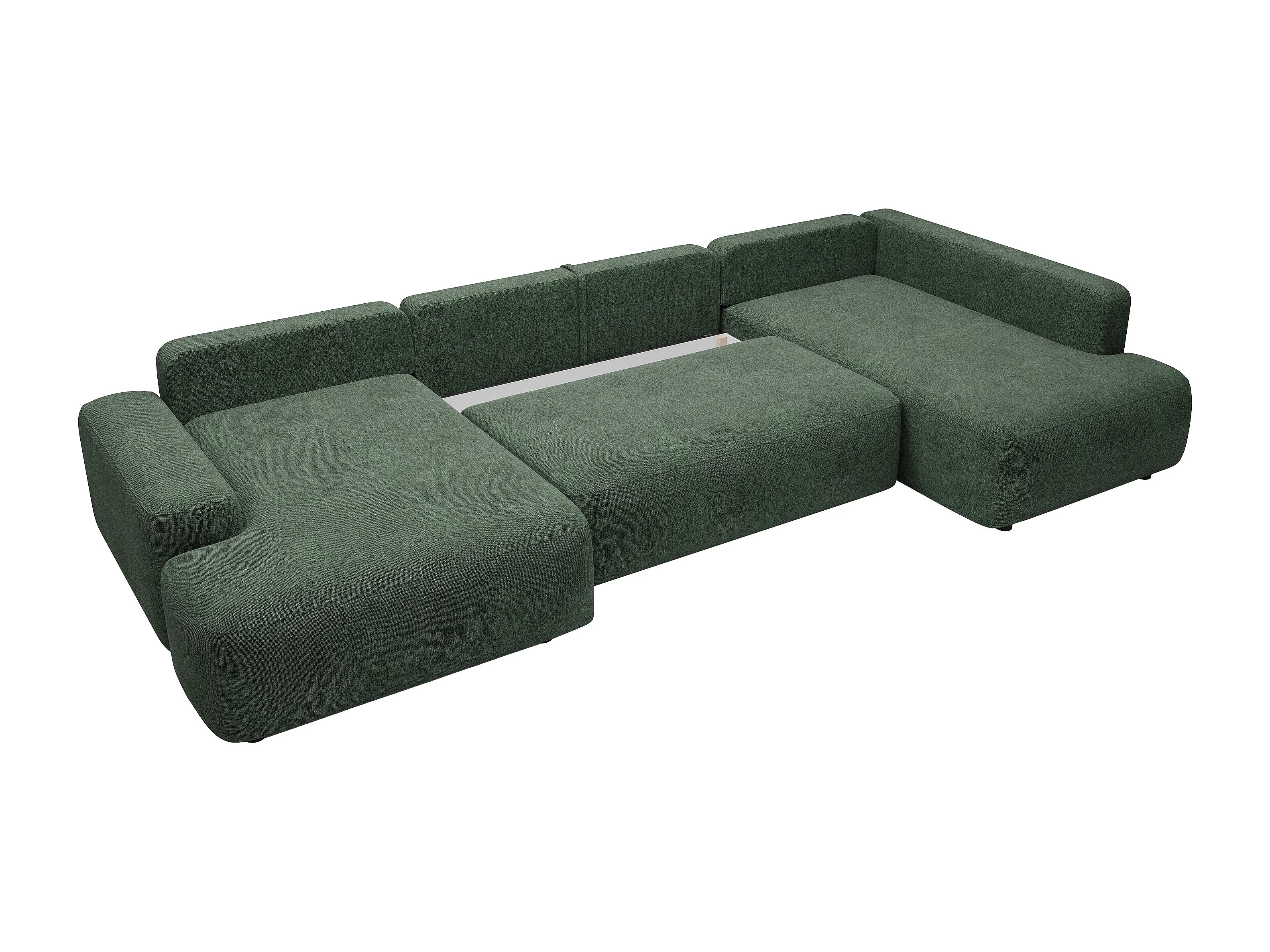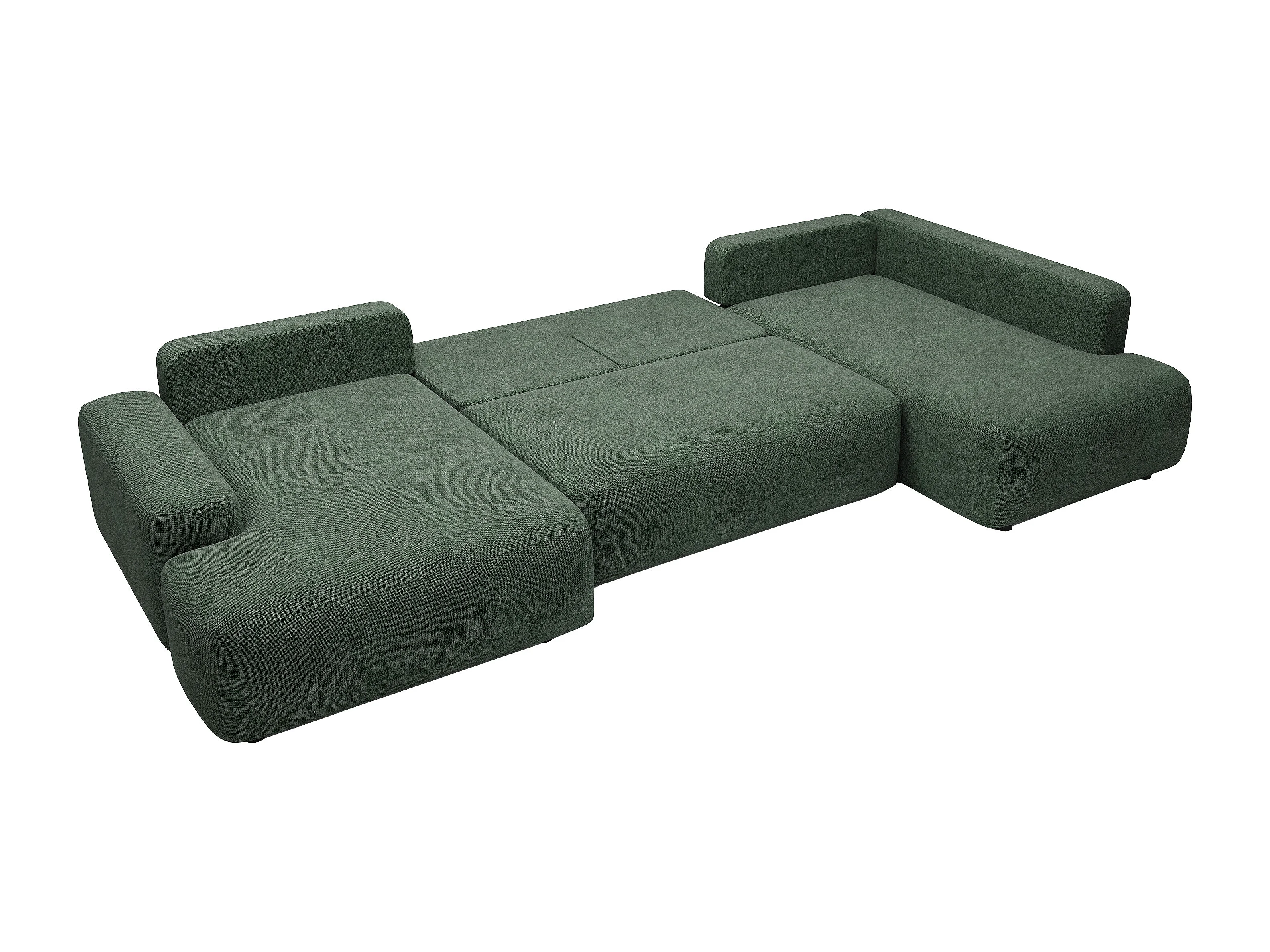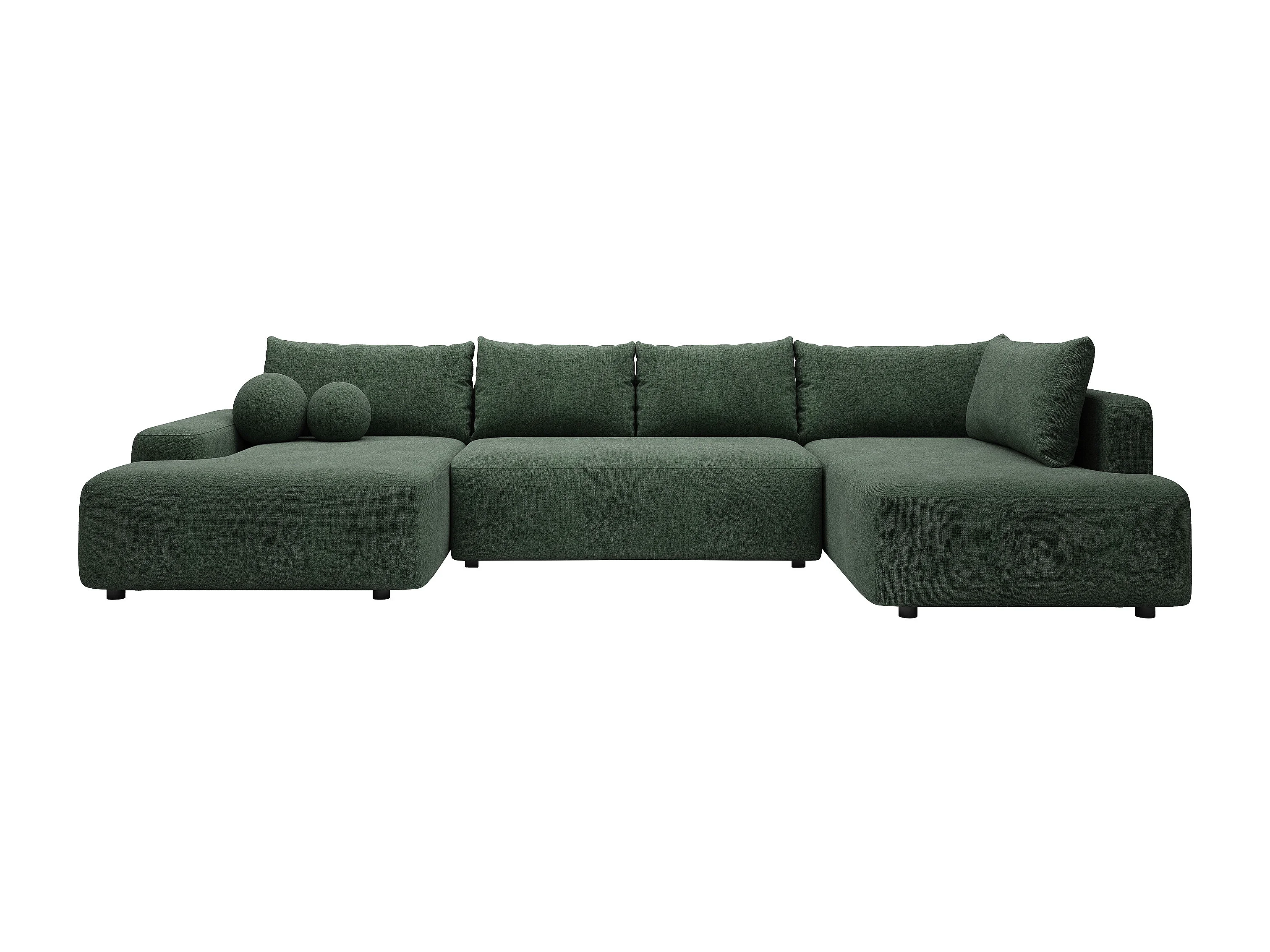 Grand canapé d'angle droit panoramique convertible en tissu texturé vert sapin DAVISO