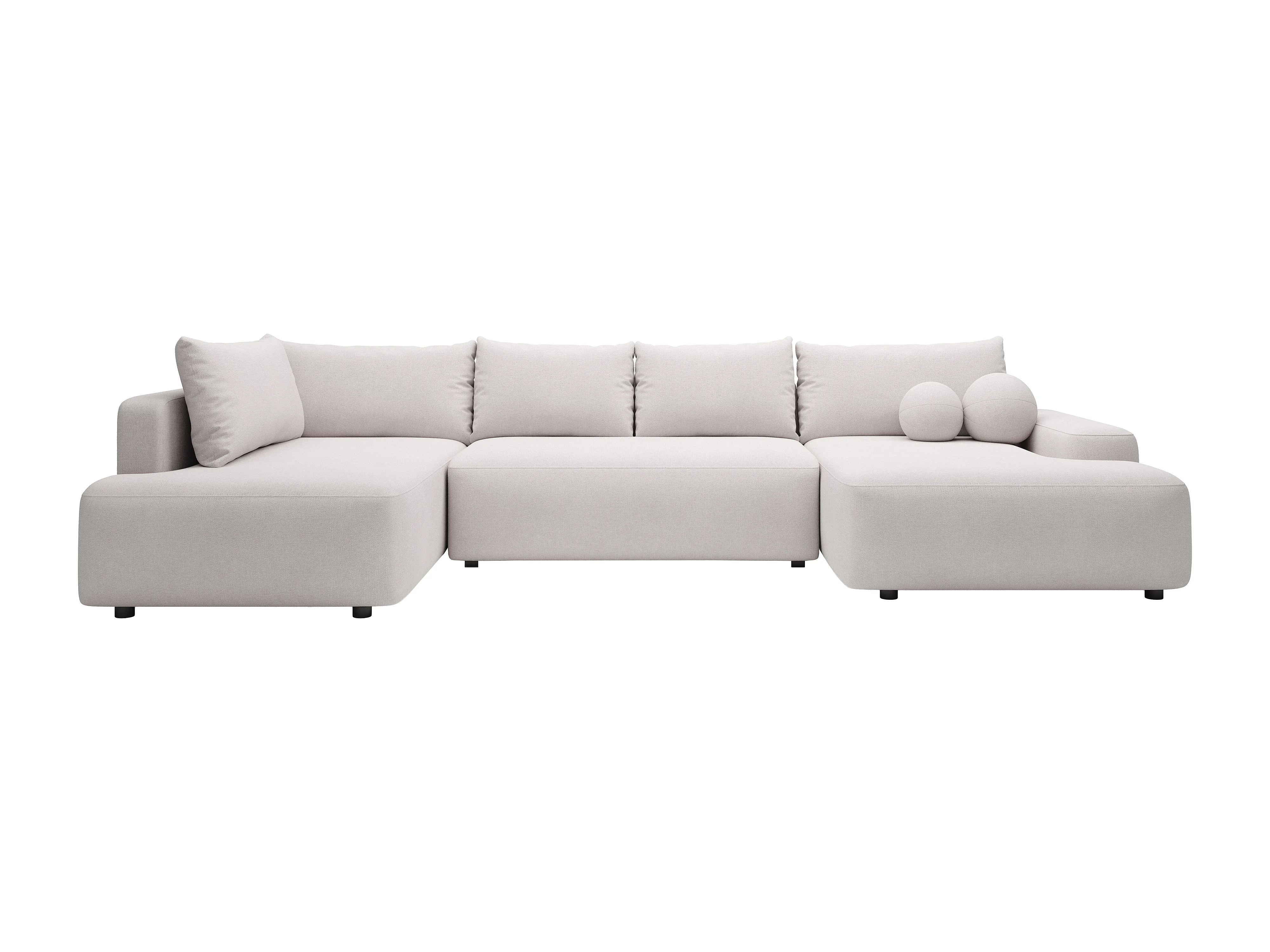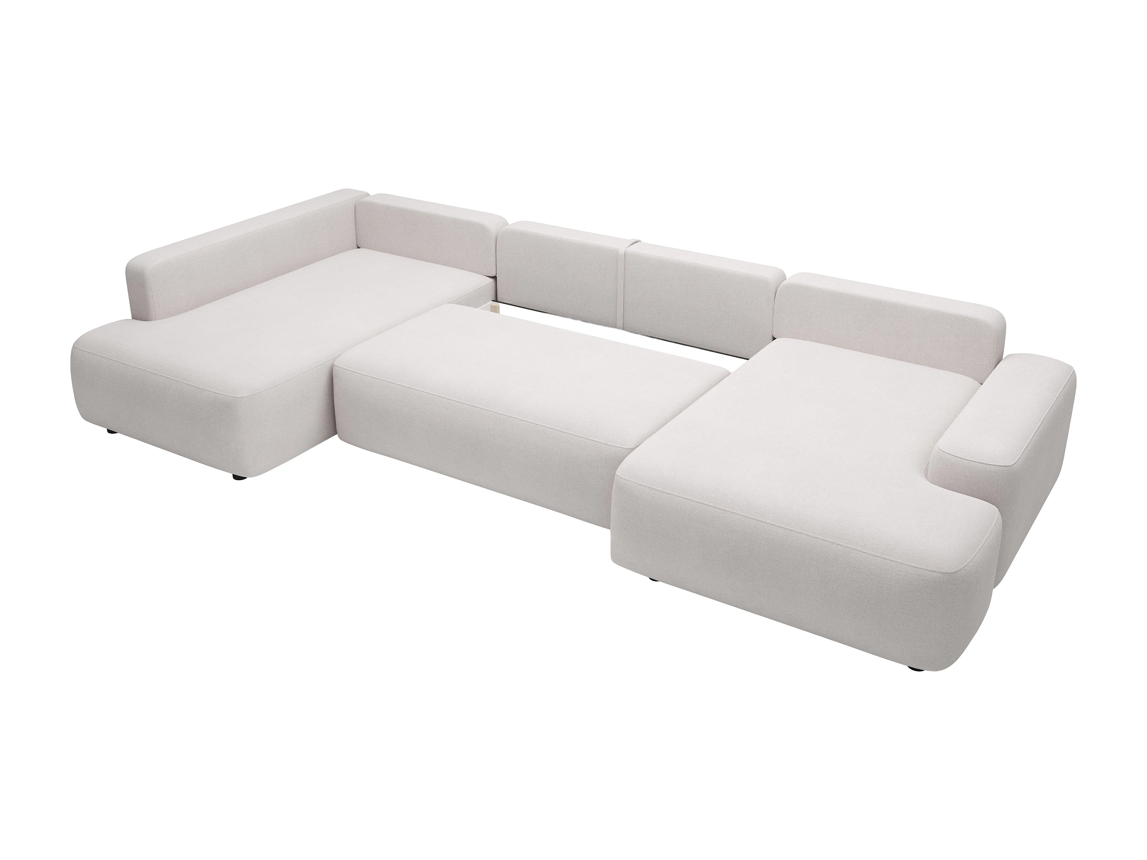 Grand canapé d'angle gauche panoramique convertible en tissu texturé beige DAVISO