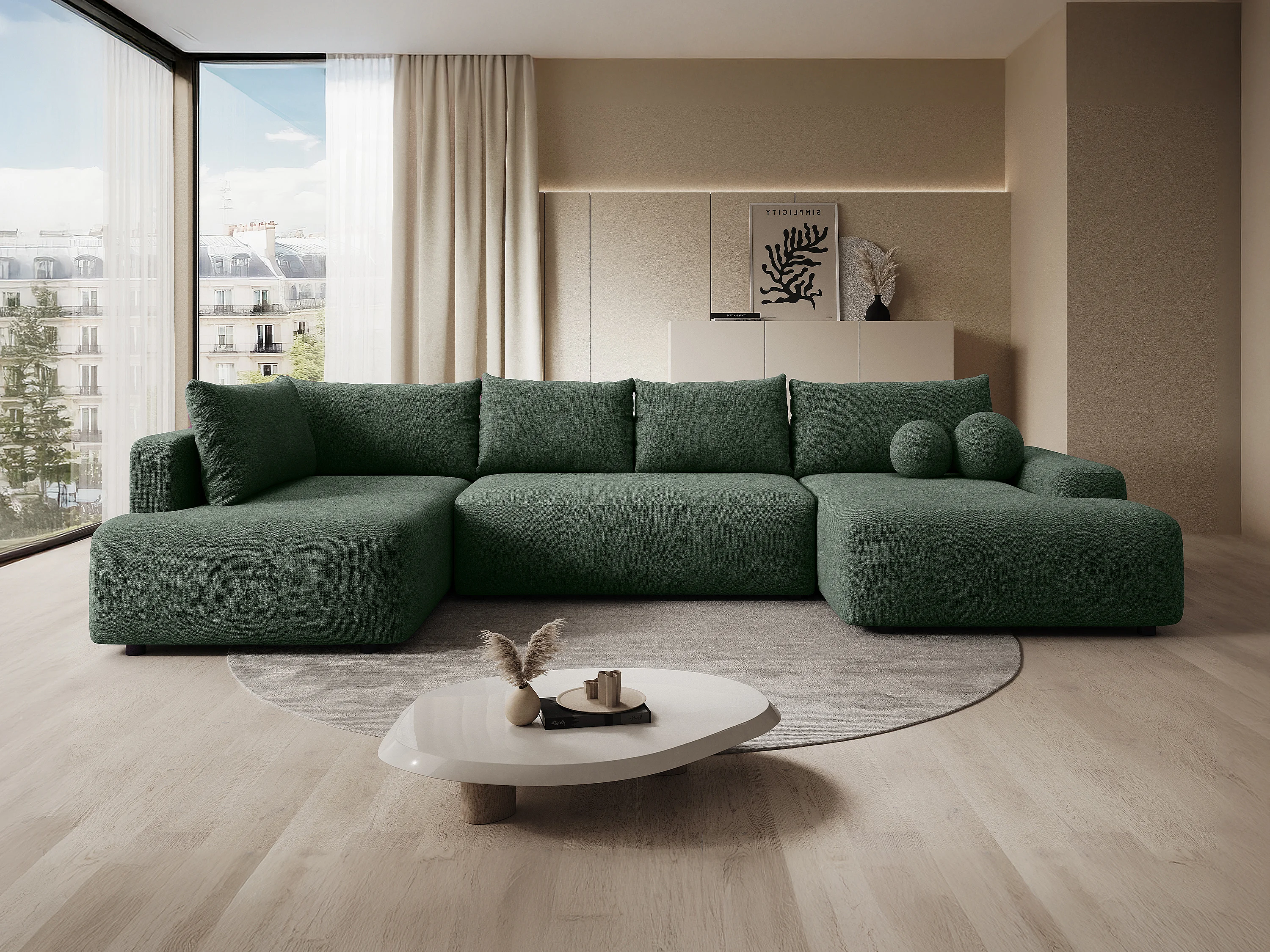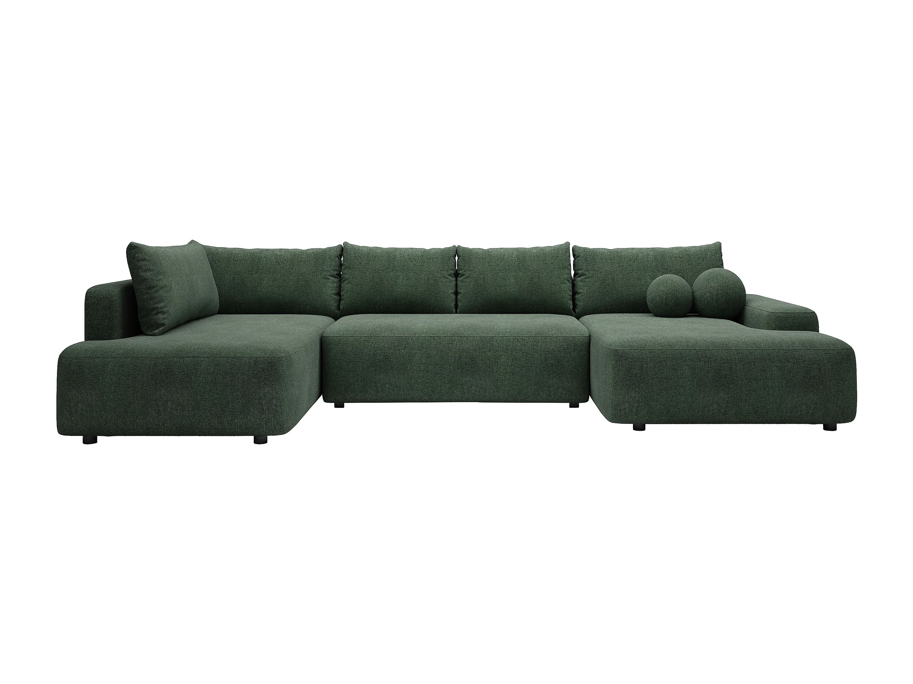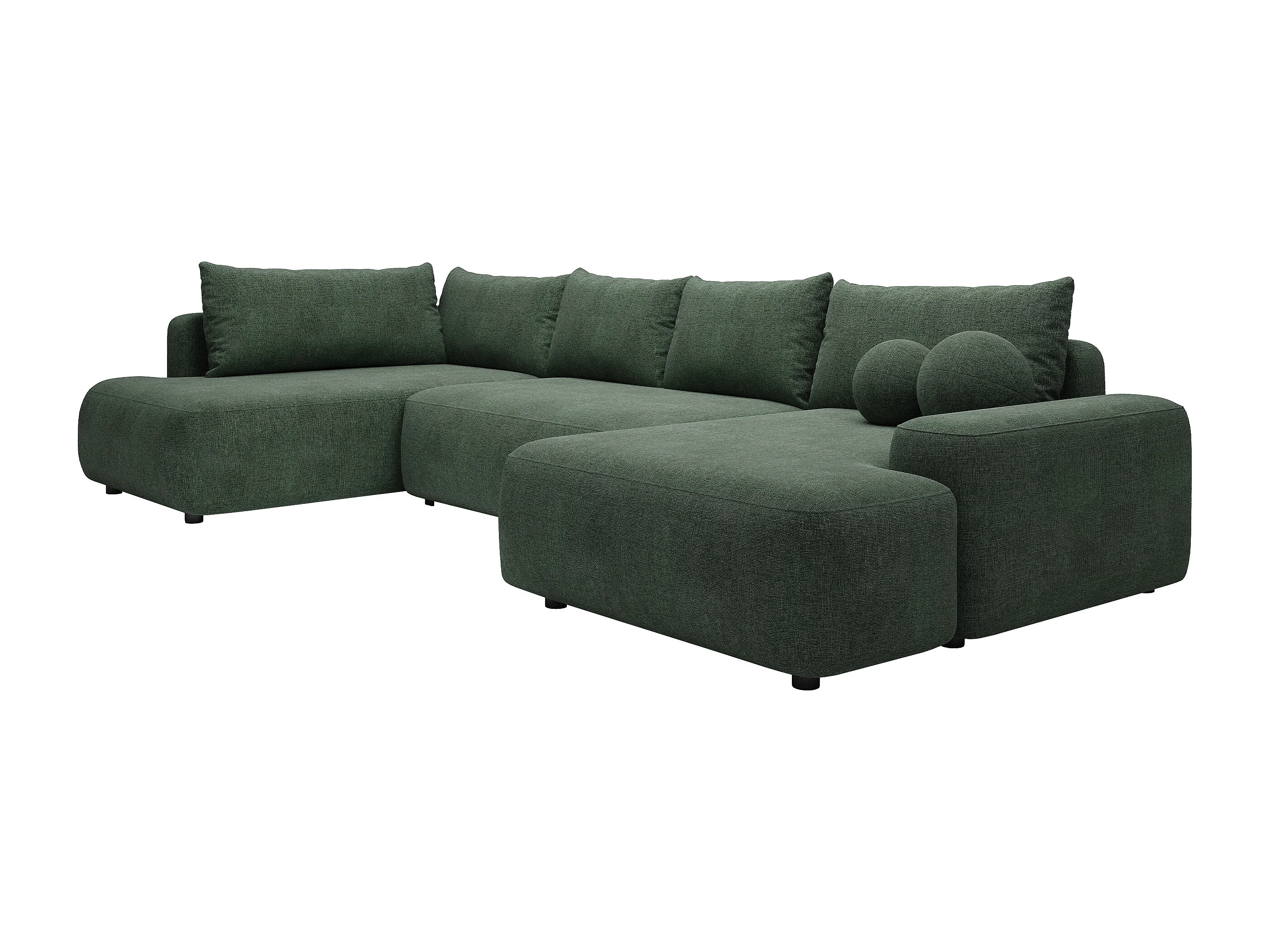 Grand canapé d'angle gauche panoramique convertible en tissu texturé vert sapin DAVISO