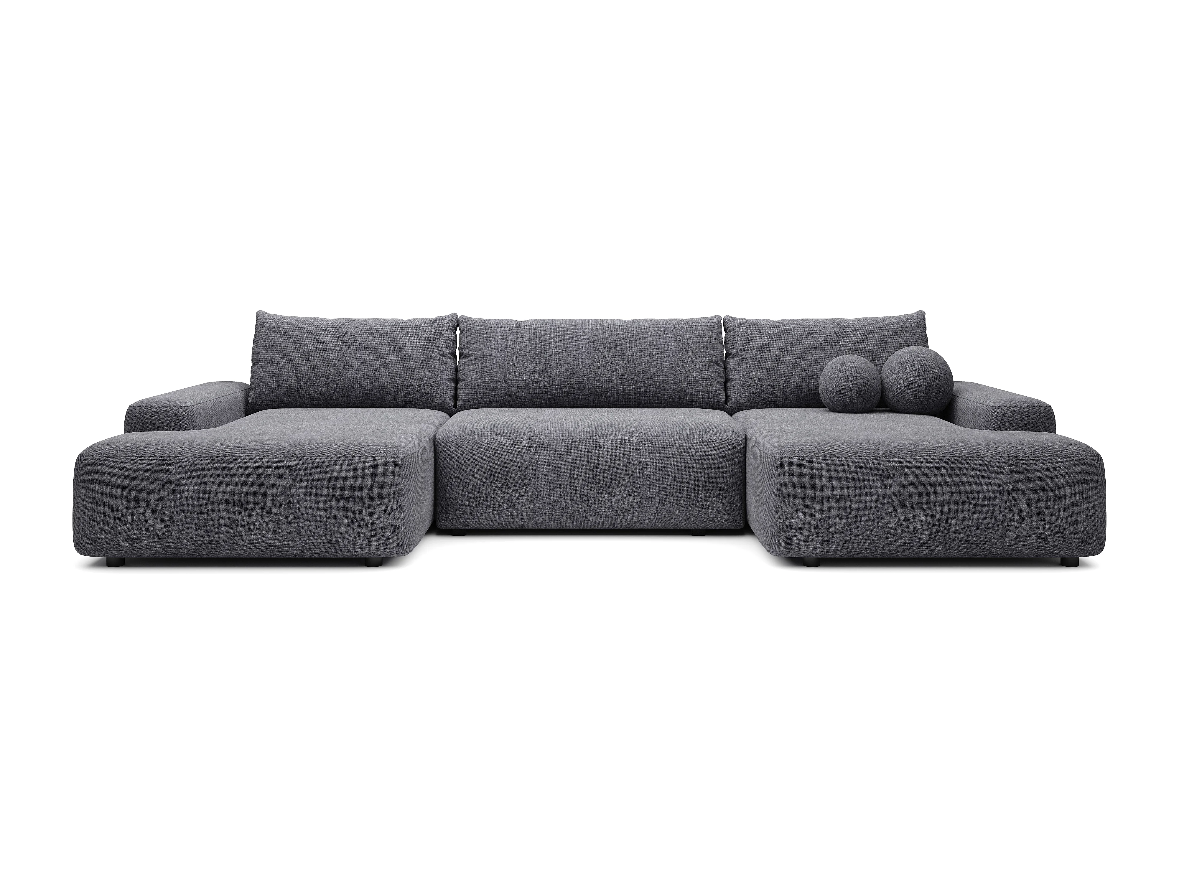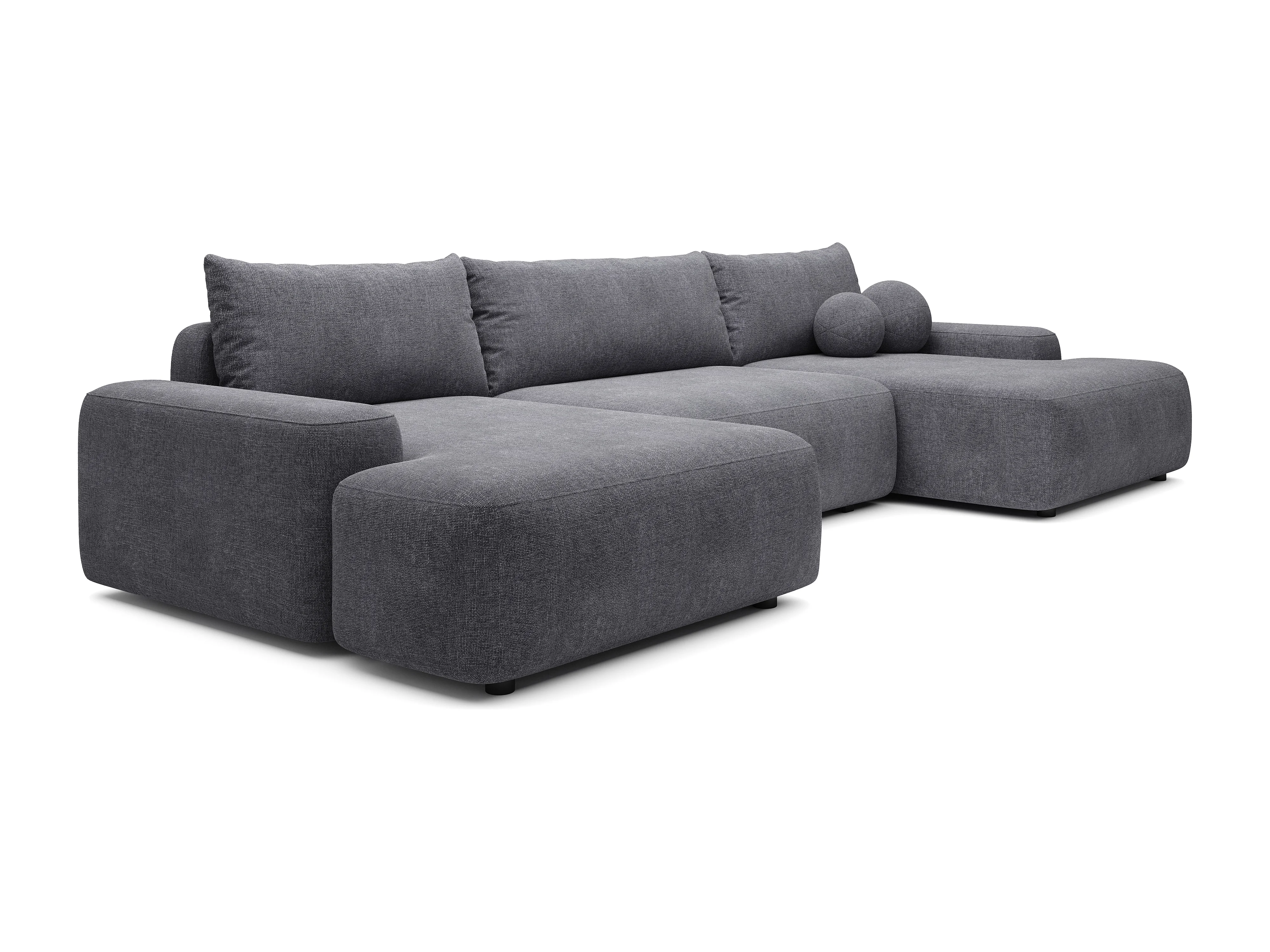 Grand canapé d'angle panoramique convertible en tissu texturé gris anthracite DAVISO