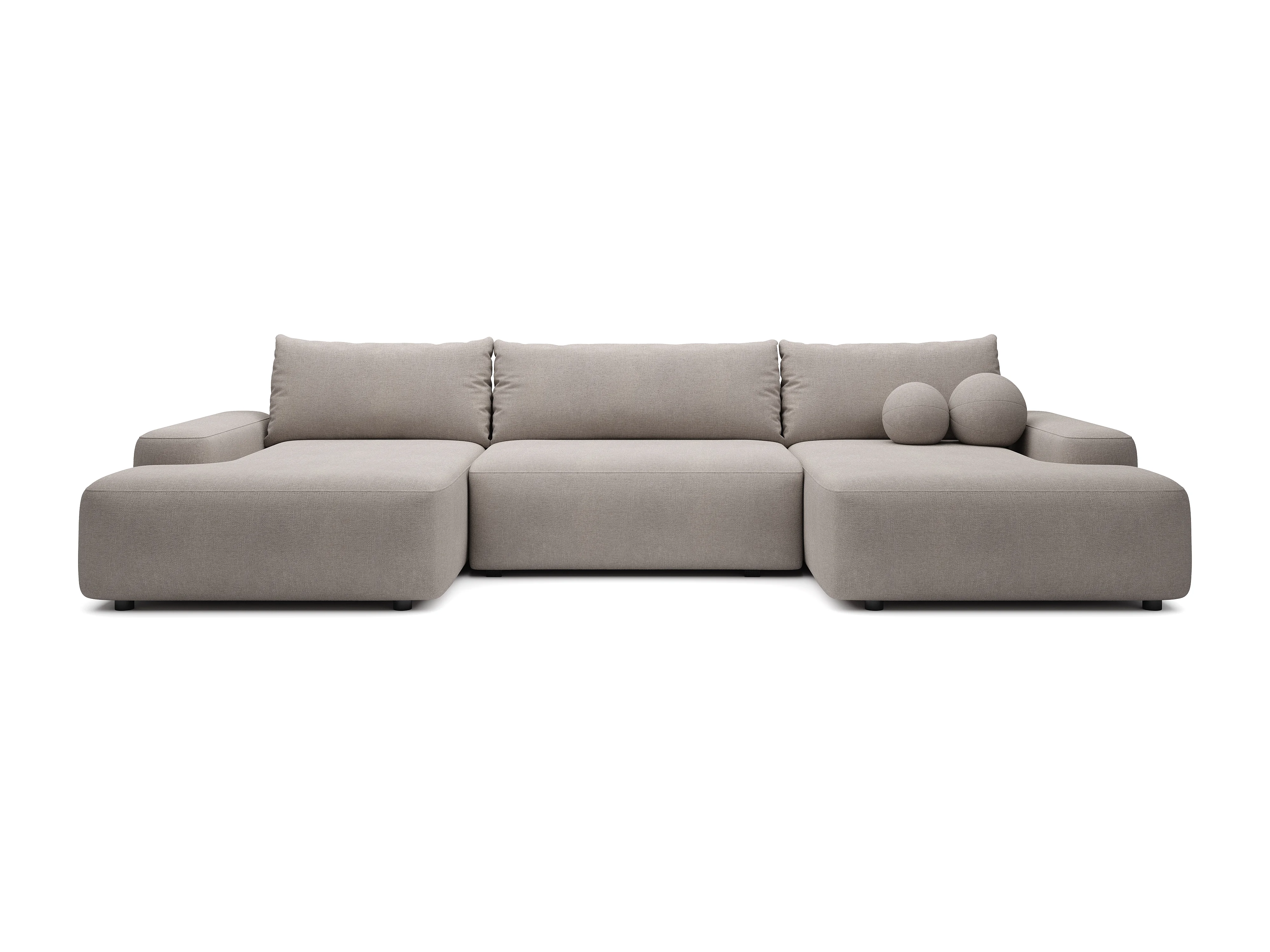 Grand canapé d'angle panoramique convertible en tissu texturé taupe DAVISO