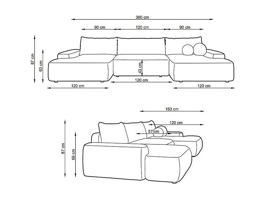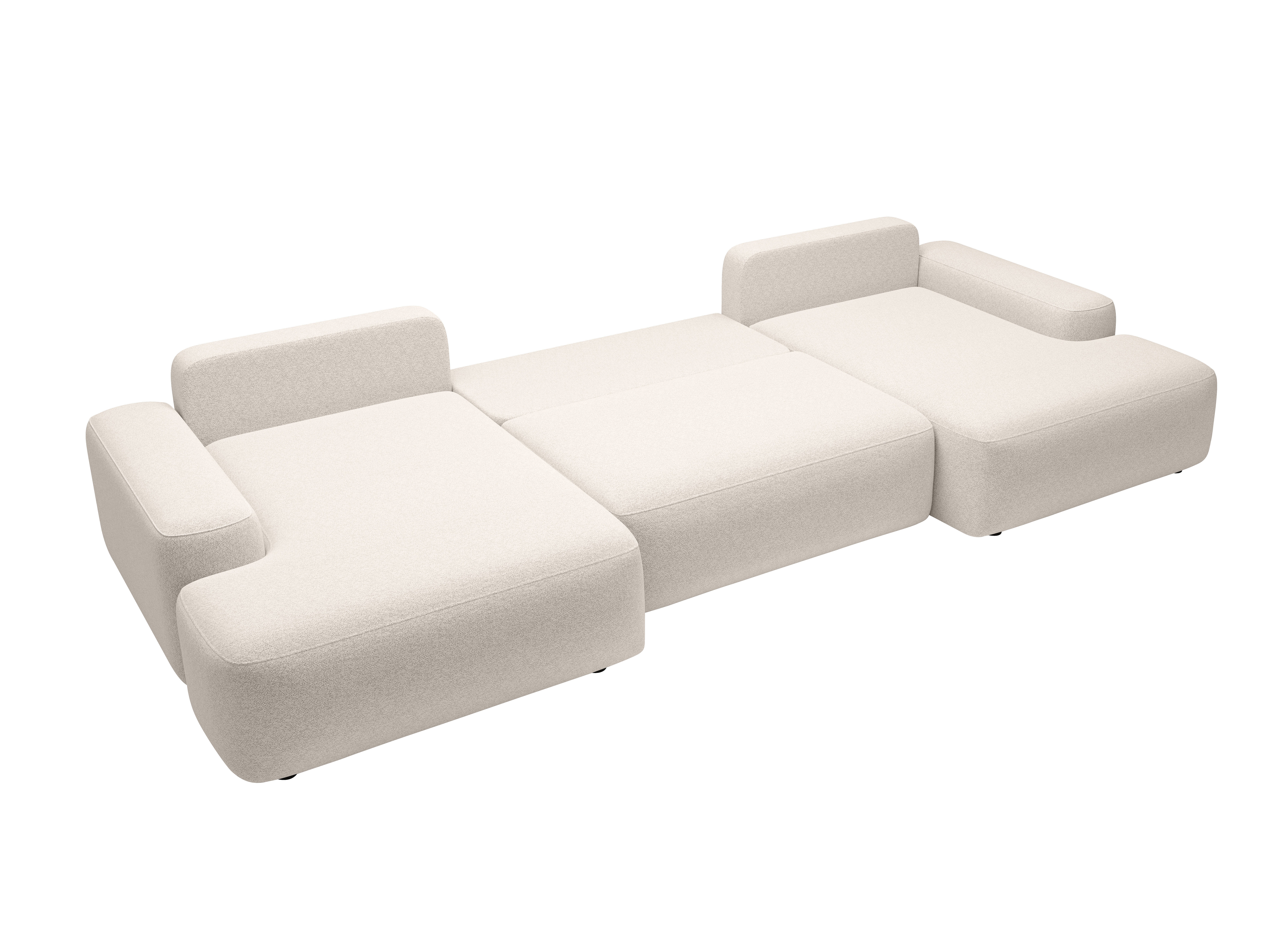Grand canapé d'angle panoramique convertible en tissu texturé crème DAVISO