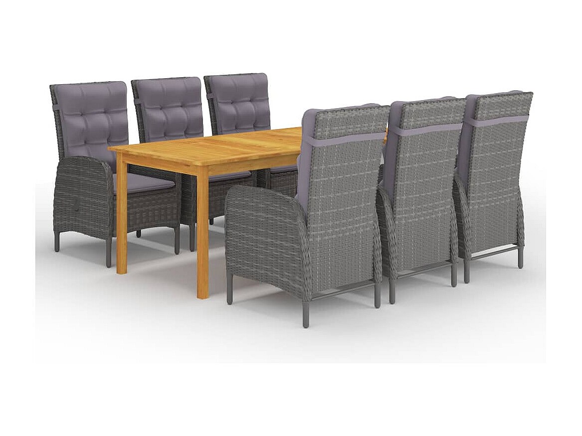 Davud Ensemble à manger de jardin 7 pcs Gris