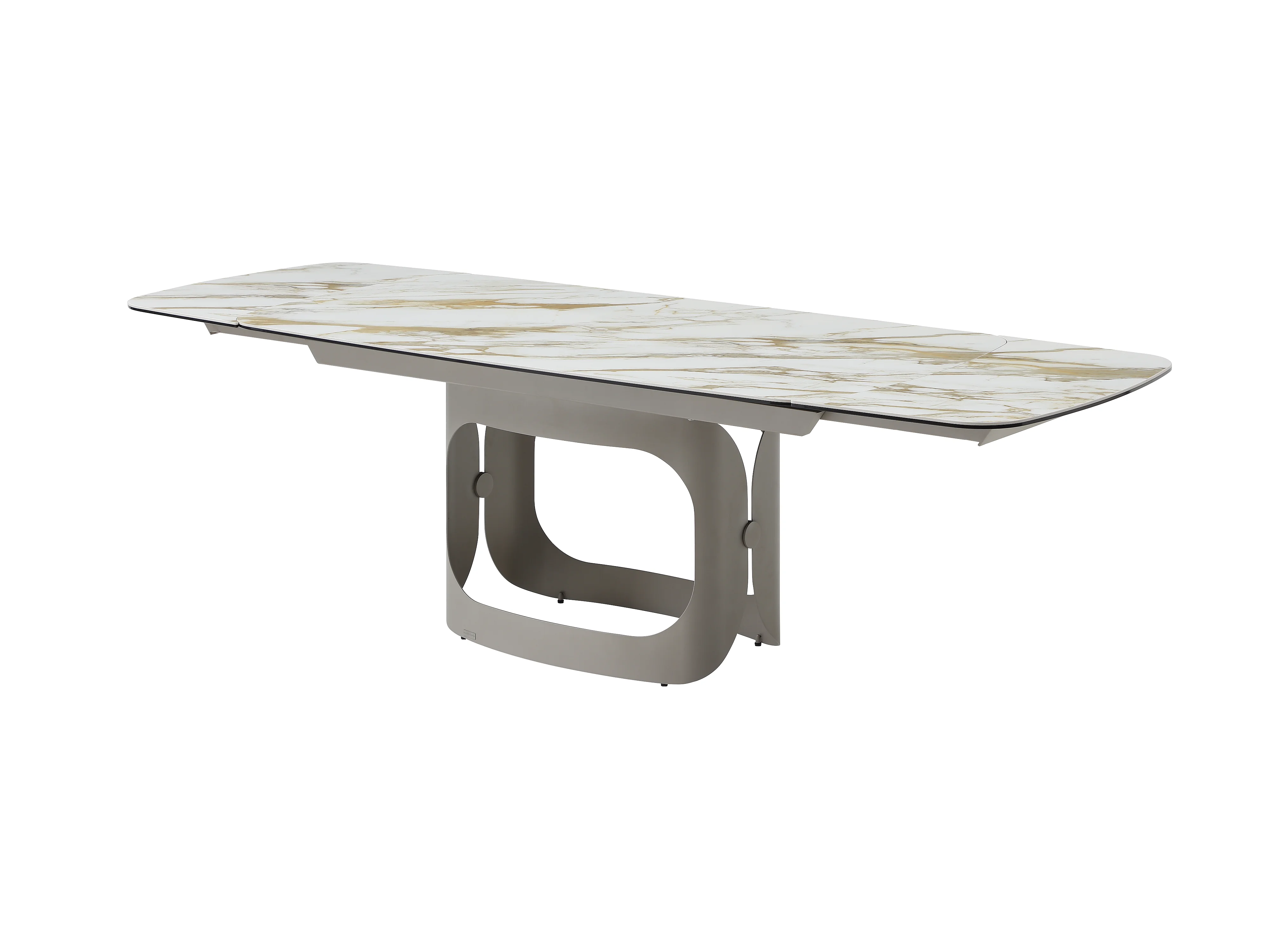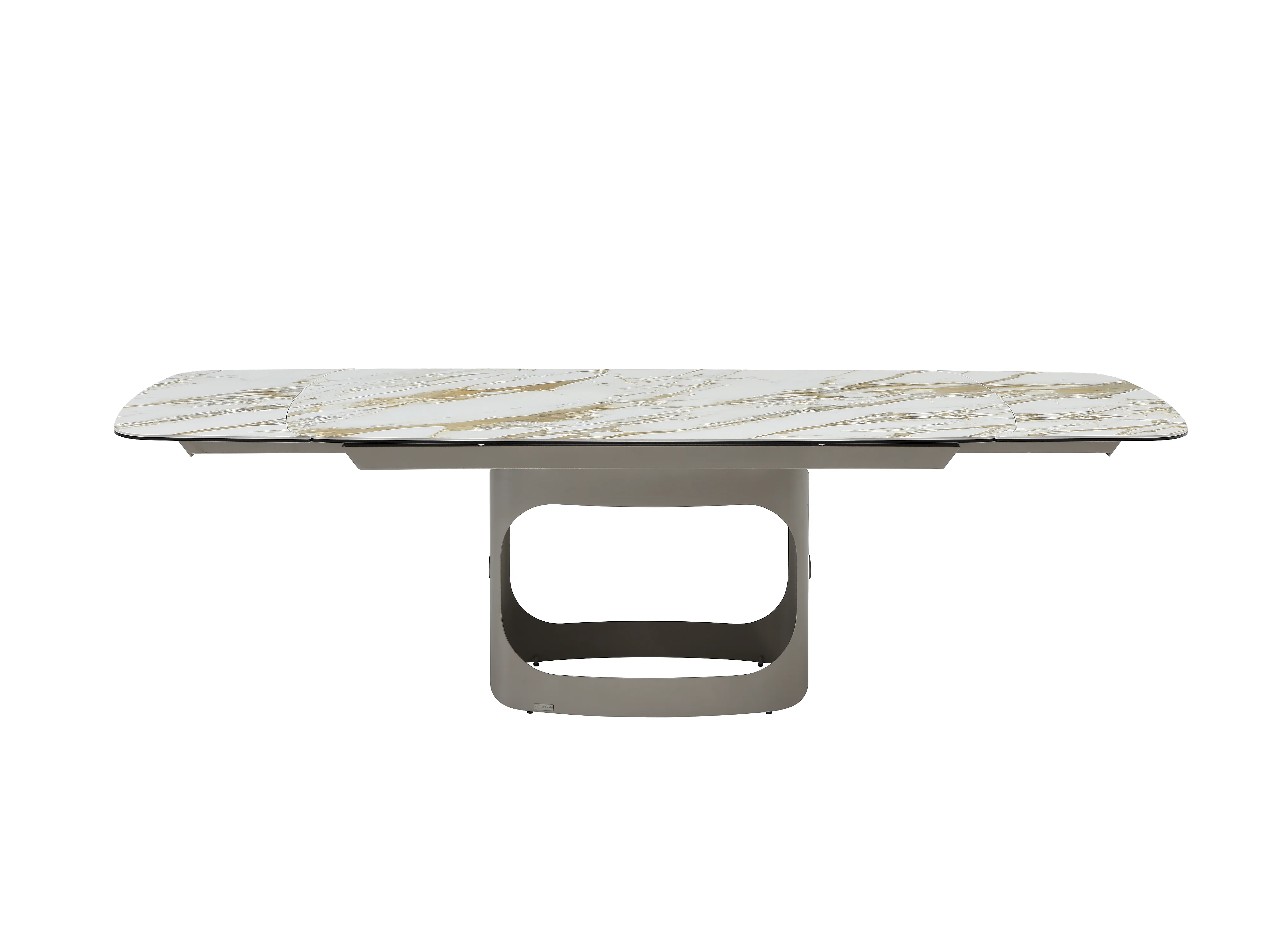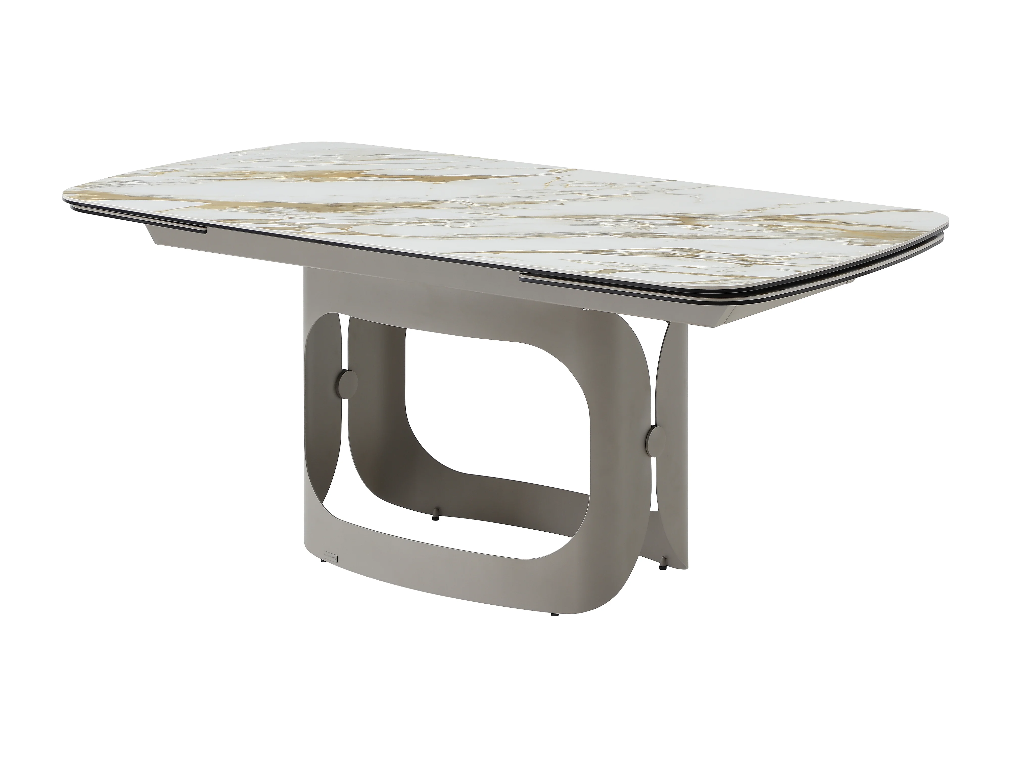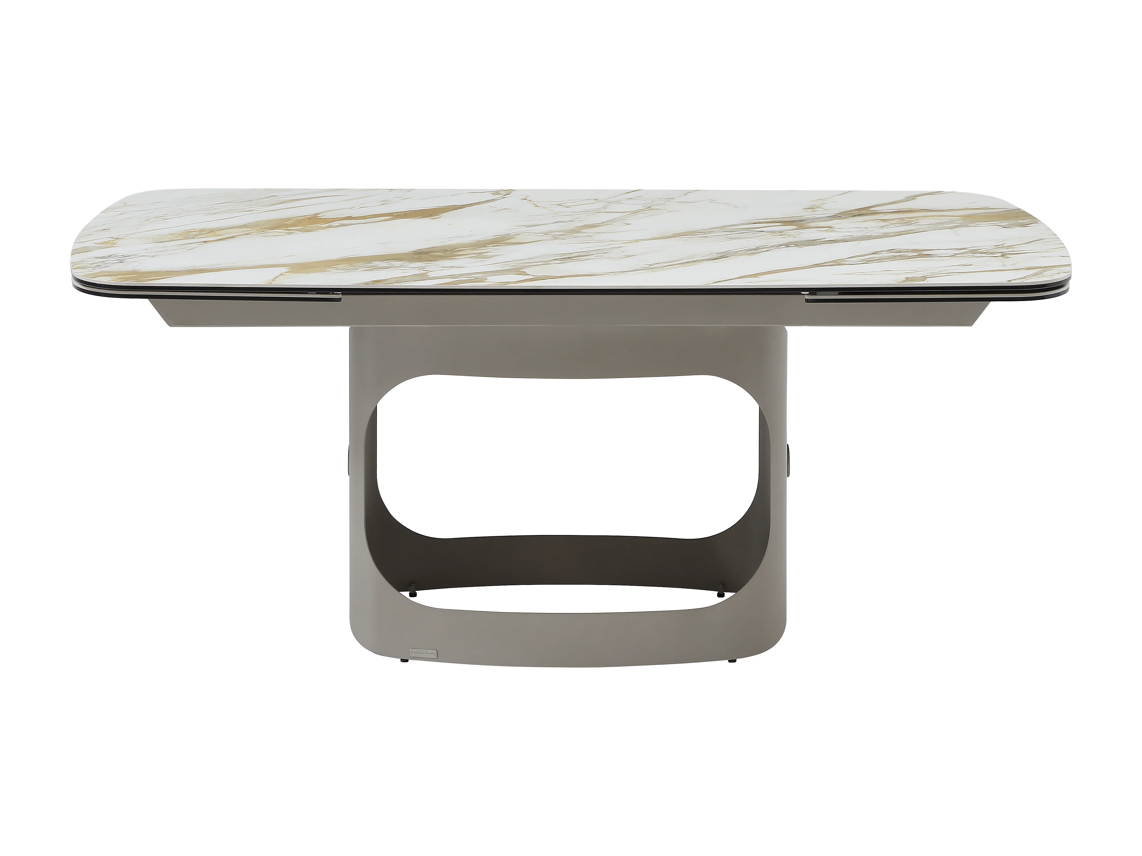Table à manger extensible 6 à 10 personnes en céramique, verre trempé et métal taupe - Effet marbre blanc - DAVULO de Maison Céphy