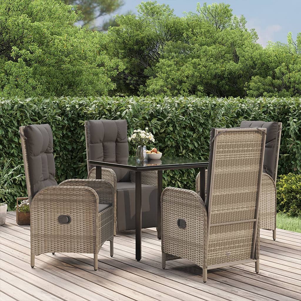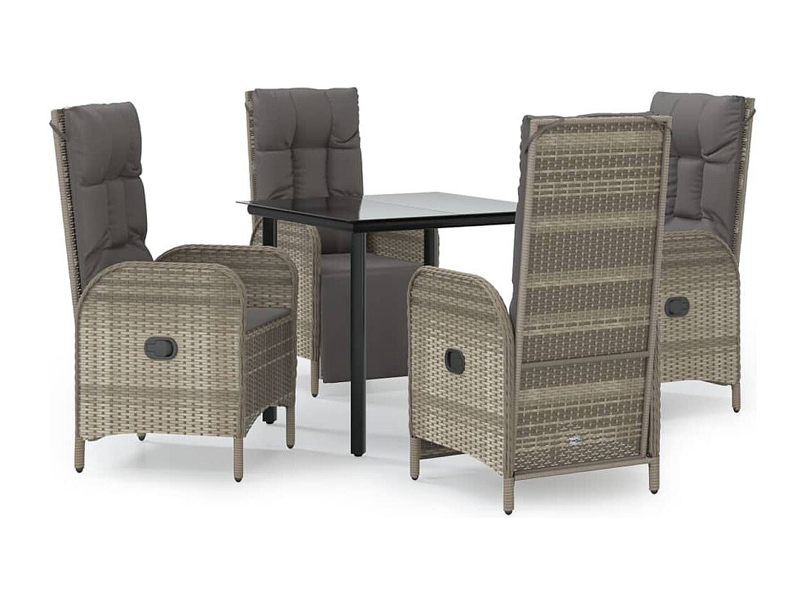 De Haan Ensemble à manger de jardin coussins 5 pcs noir et gris