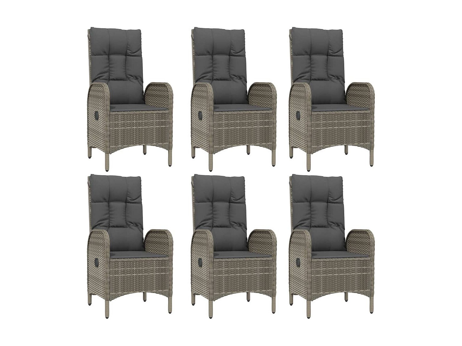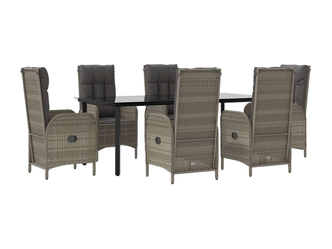 De Haan Ensemble à manger jardin et coussins 7 pcs Noir et gris Rotin