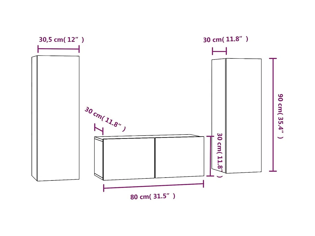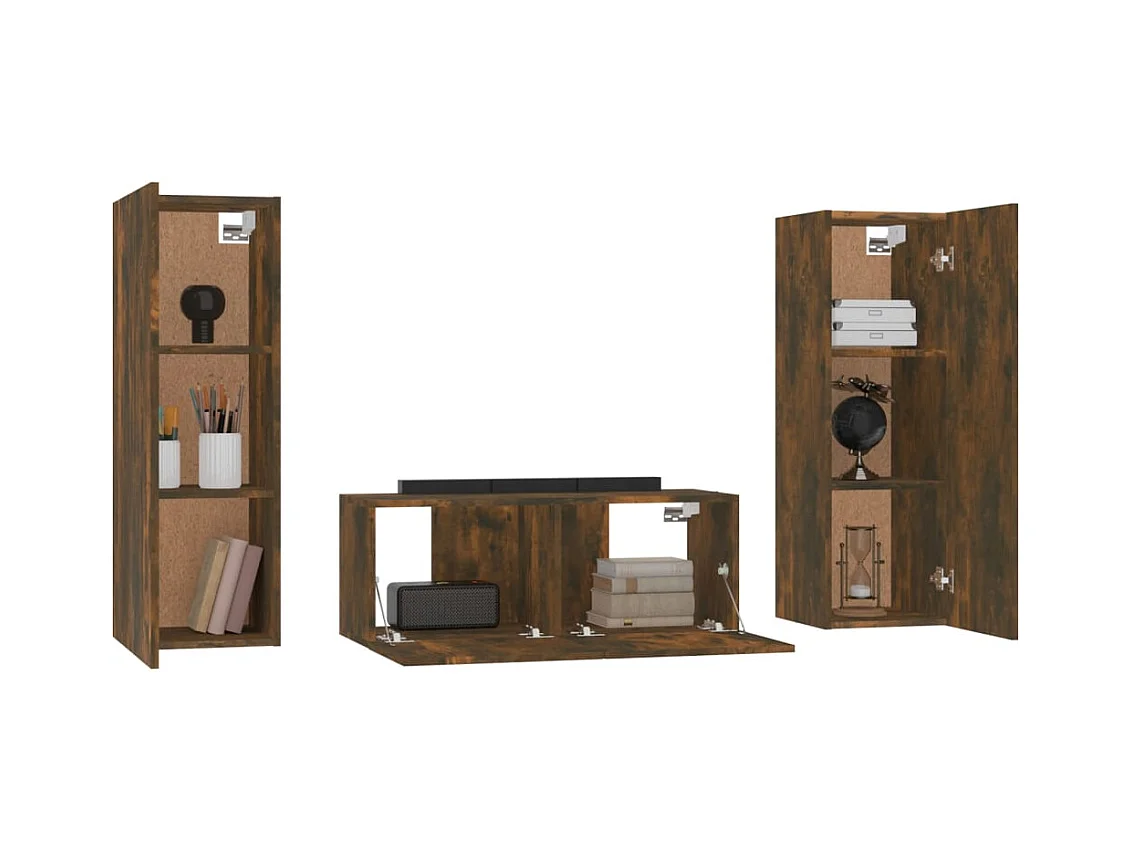 Deadwood Ensemble de meubles TV 3 pcs Chêne fumé Bois d'ingénierie