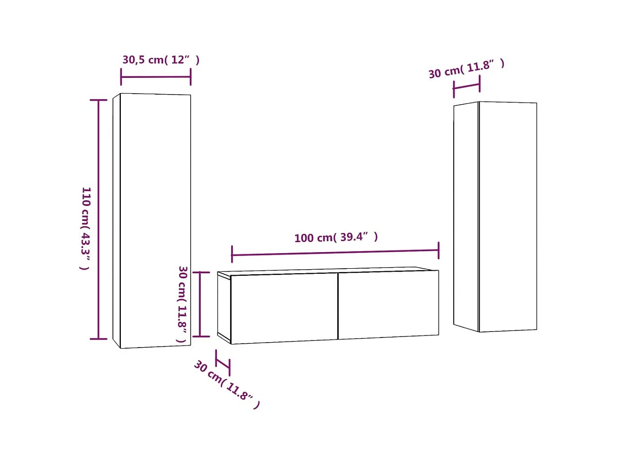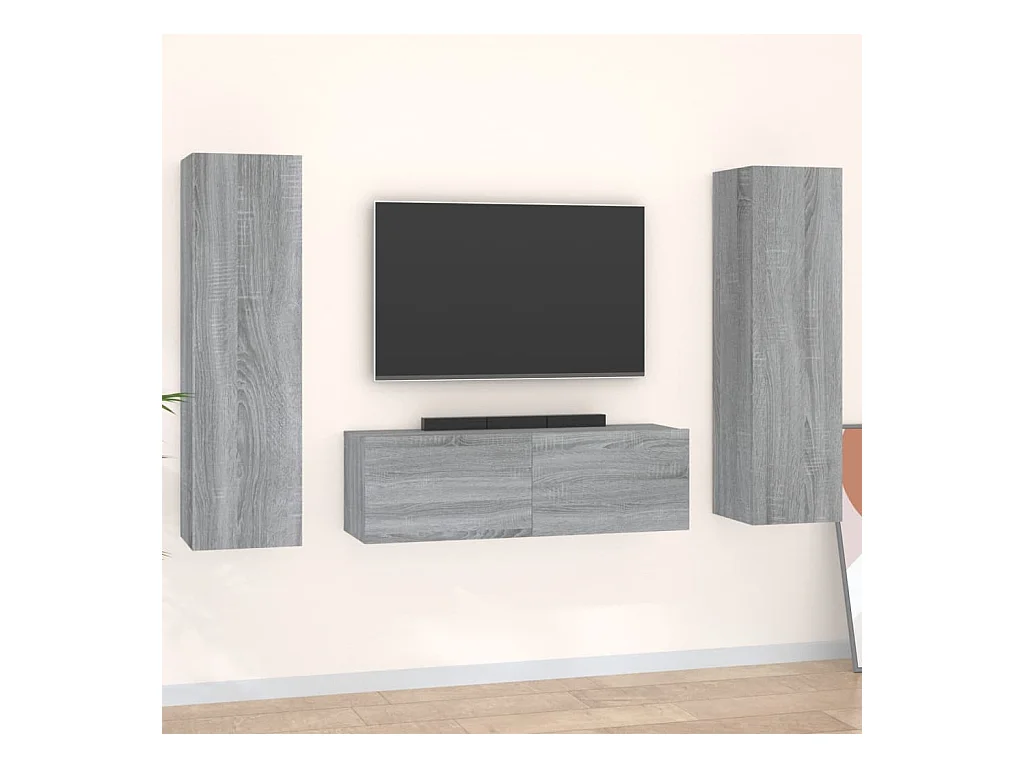 Deadwood Ensemble de meubles TV 3 pcs Sonoma gris Bois d'ingénierie