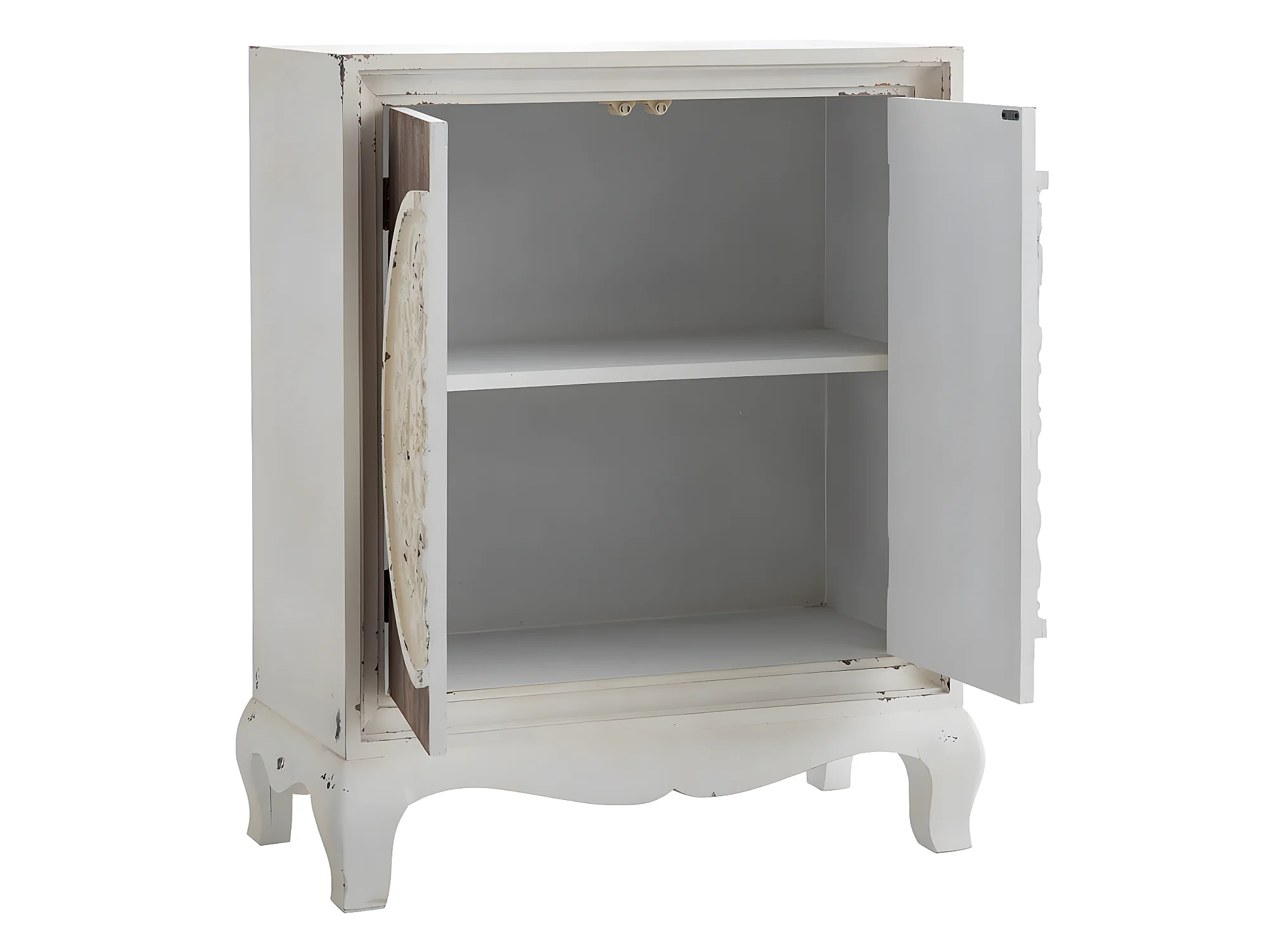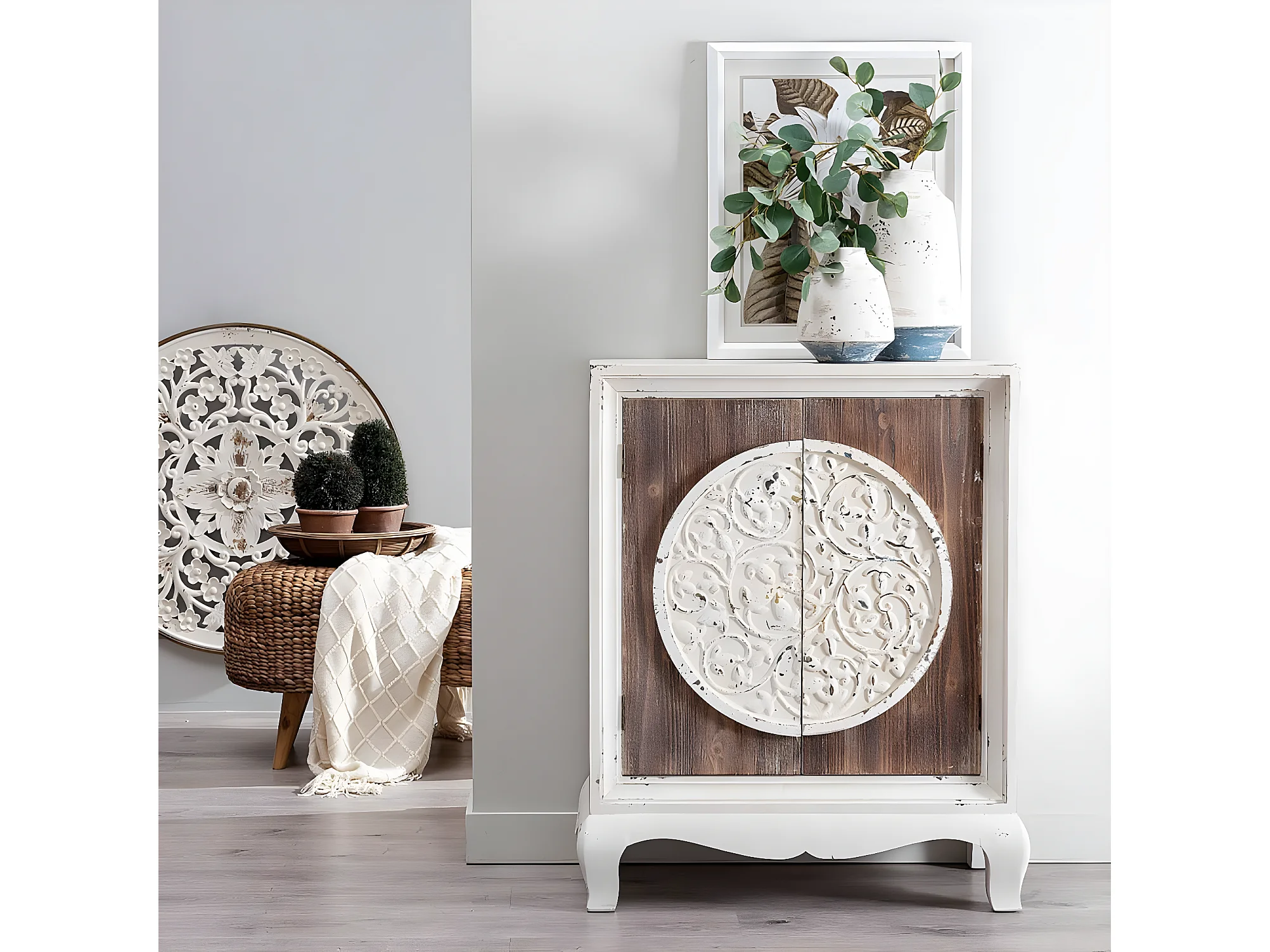 DEBBI - Meuble 2 Portes Sapin massif Aspect Vieilli Marron et Blanc