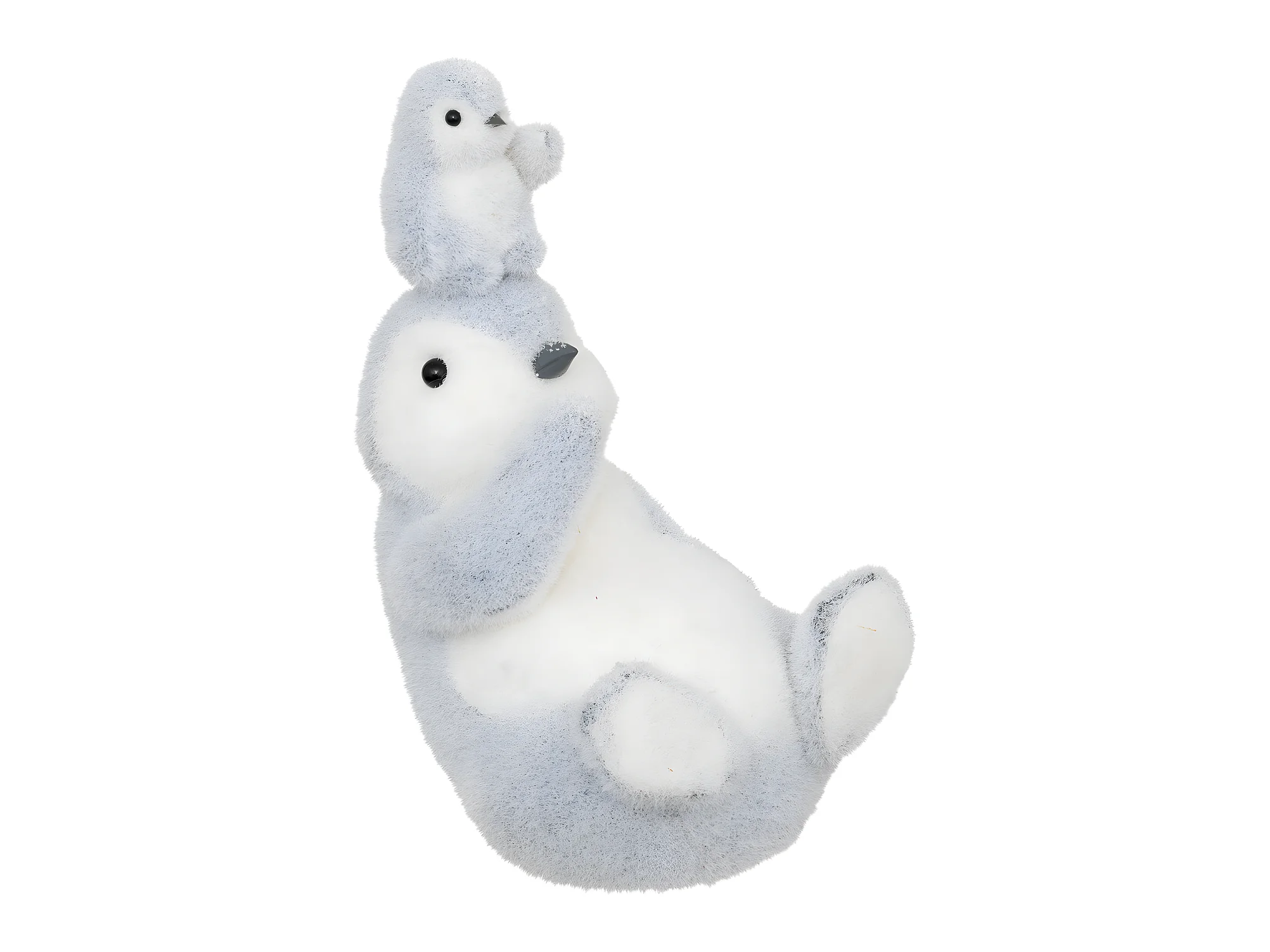 Déco de Noël Bébé Pingouin sur sa Maman Gris et Blanc L 18 x H 28 cm