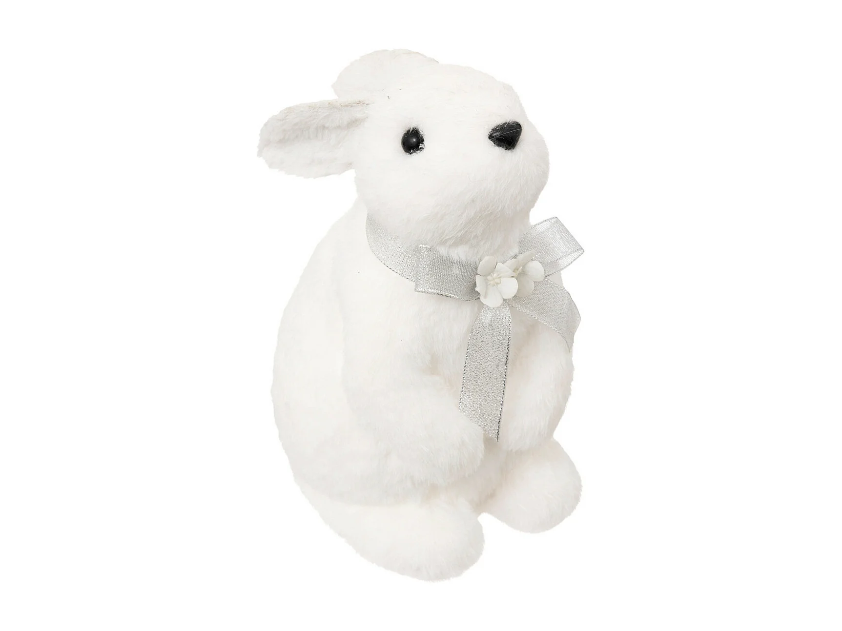 Déco de Noël Lapin avec noeud Argenté H 25 cm