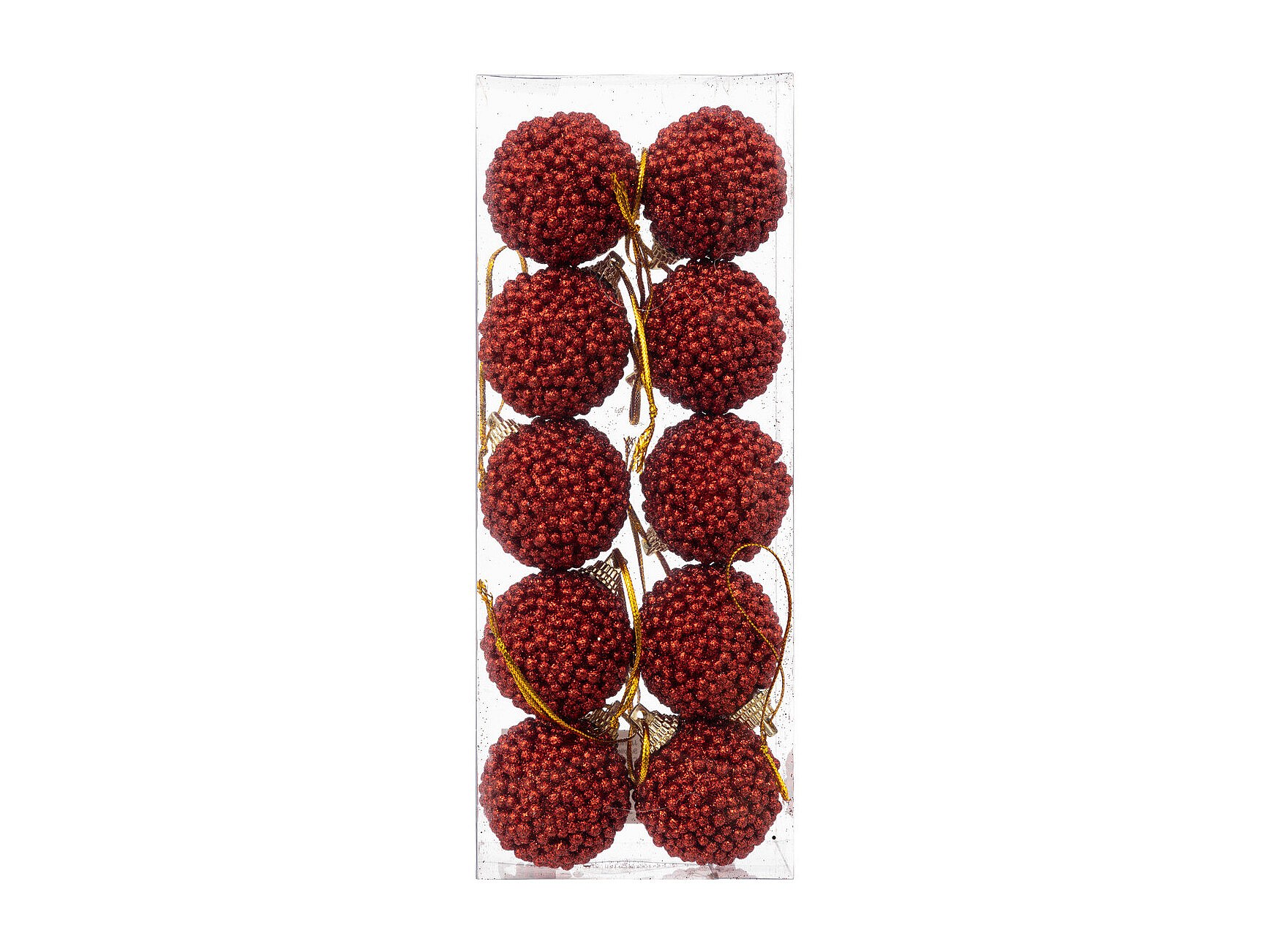 Déco de Sapin Kit 10 Boules de Noël D 4 cm Bille Rouge pailleté