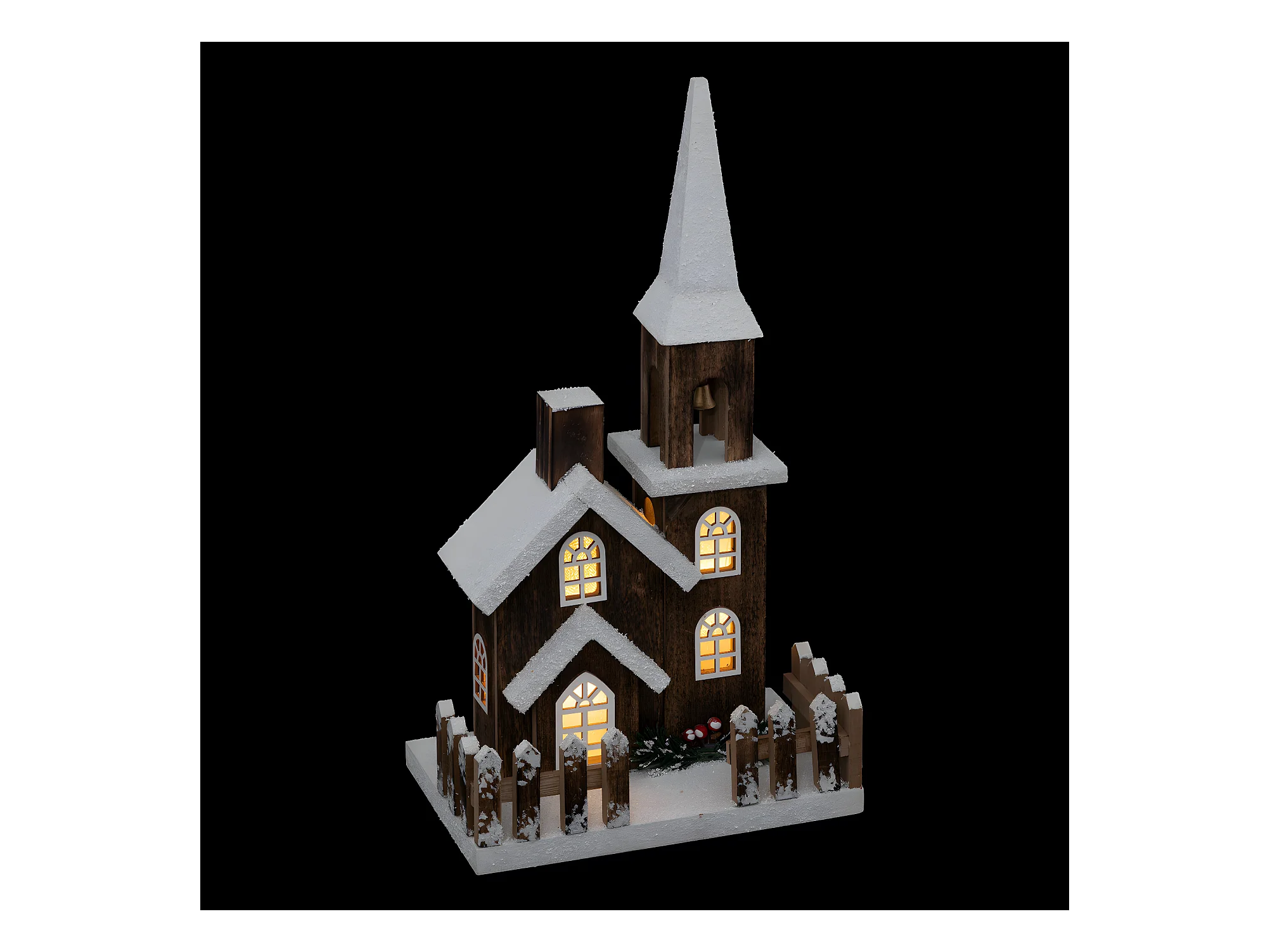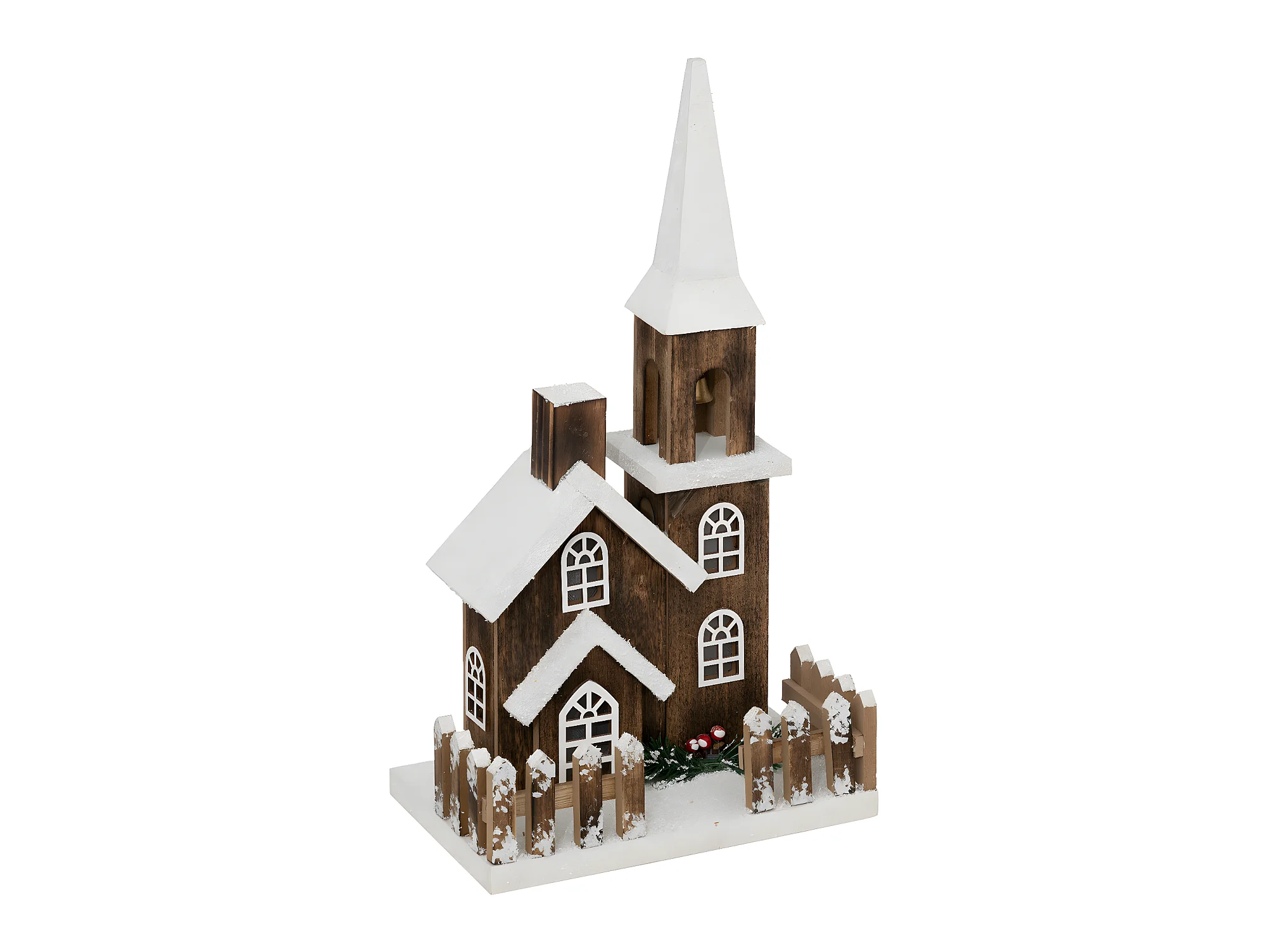 Déco Lumineuse Église enneigée en bois LED Blanc chaud H 40 cm