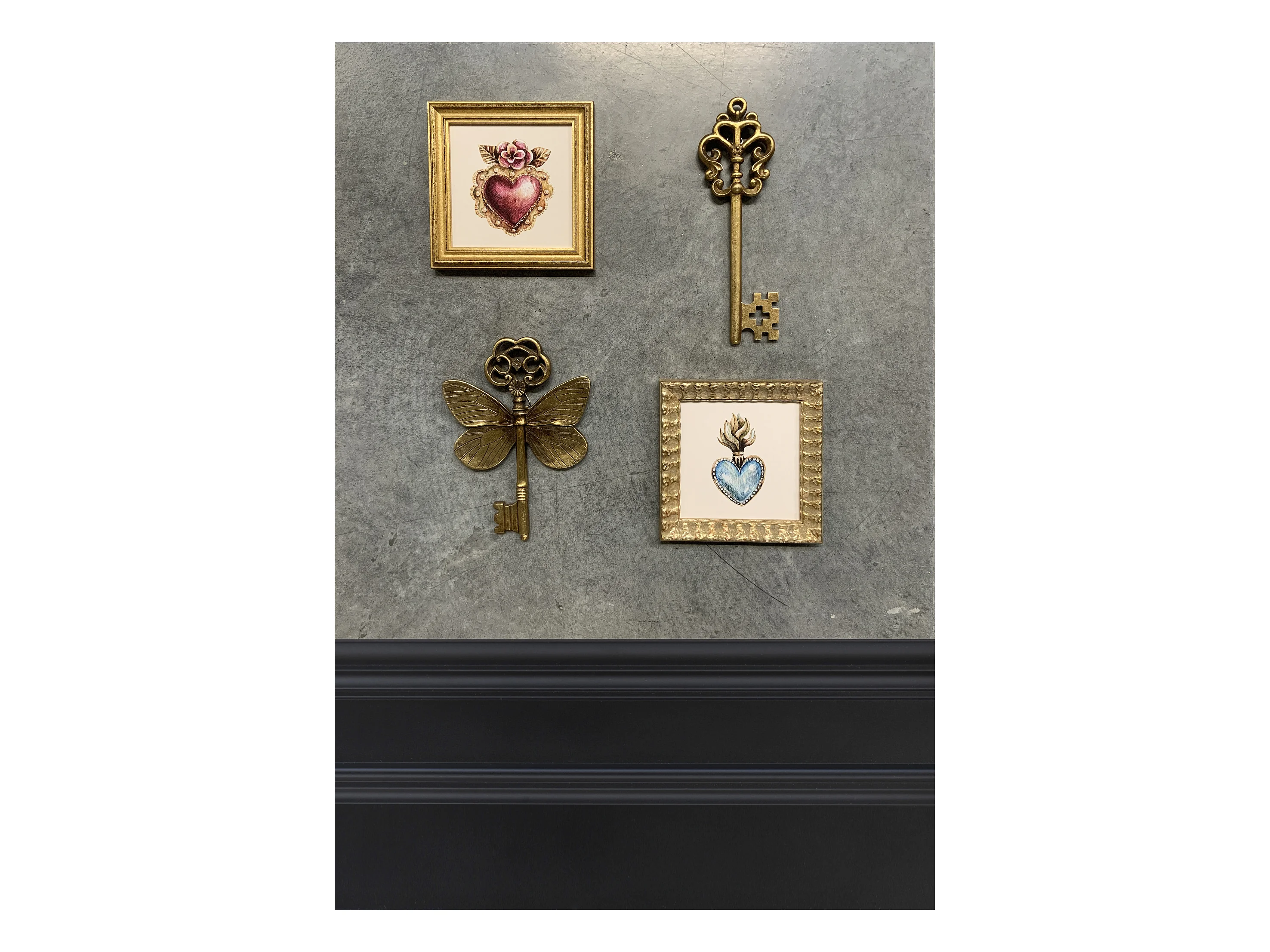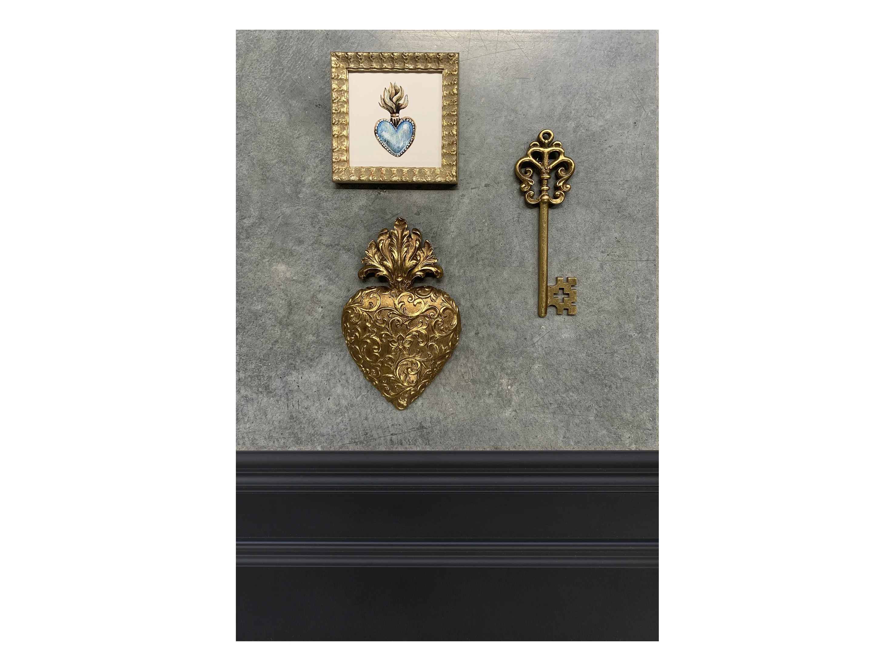 Déco murale ex-voto coeur plumes doré 24.7x25.3cm