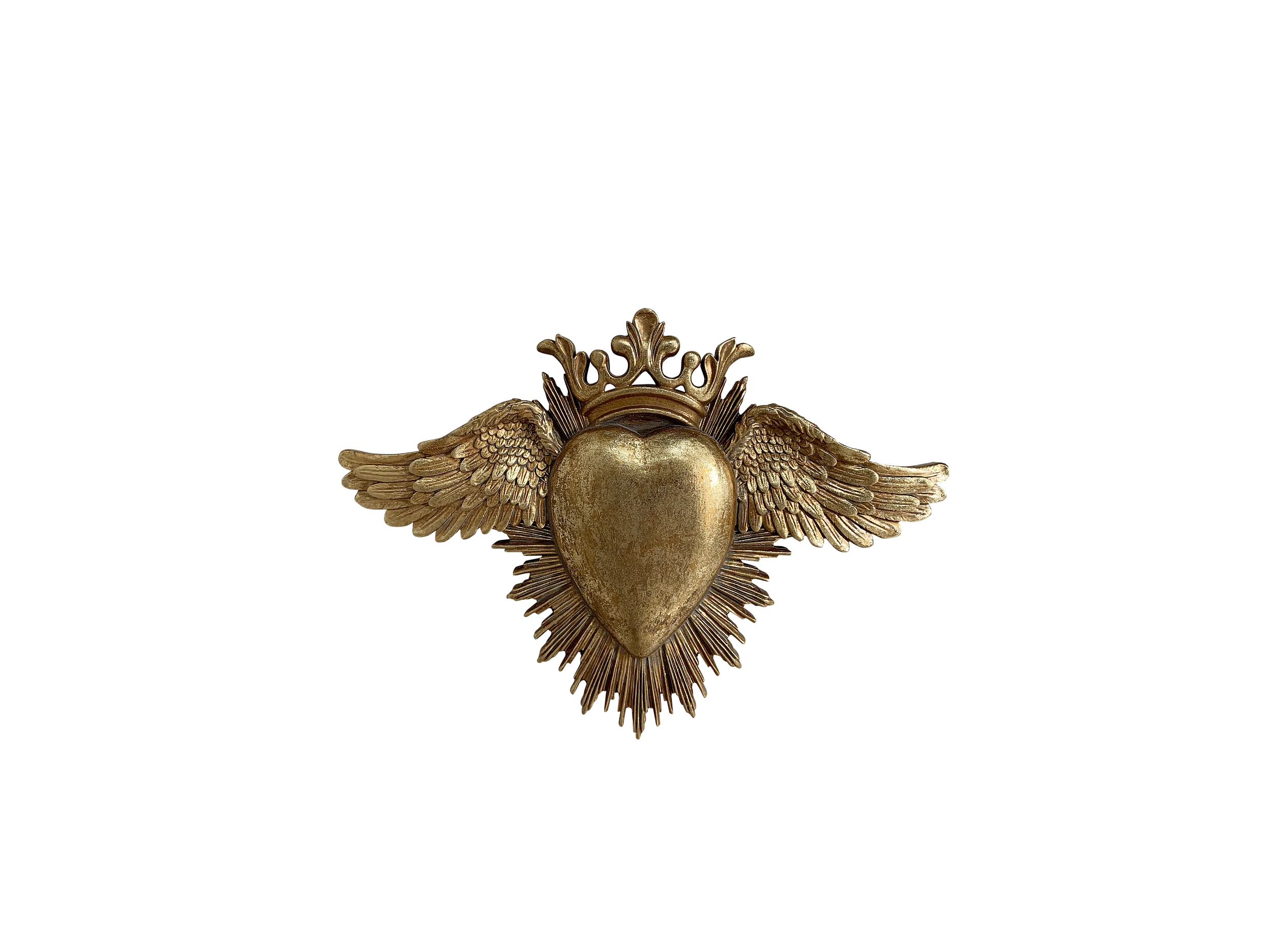 Déco murale ex-voto coeur ailes doré 24,5x17,5cm