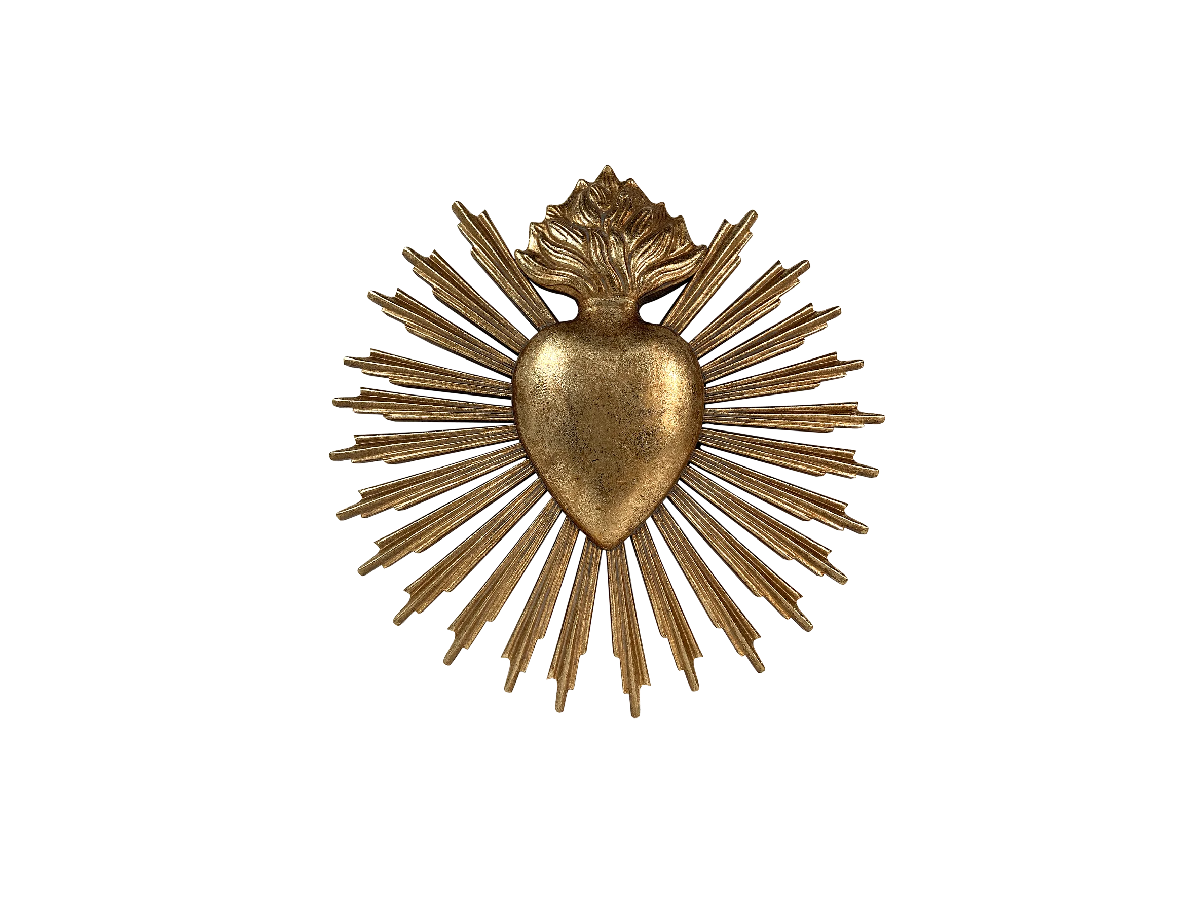 Déco murale ex-voto coeur soleil doré 25x25cm