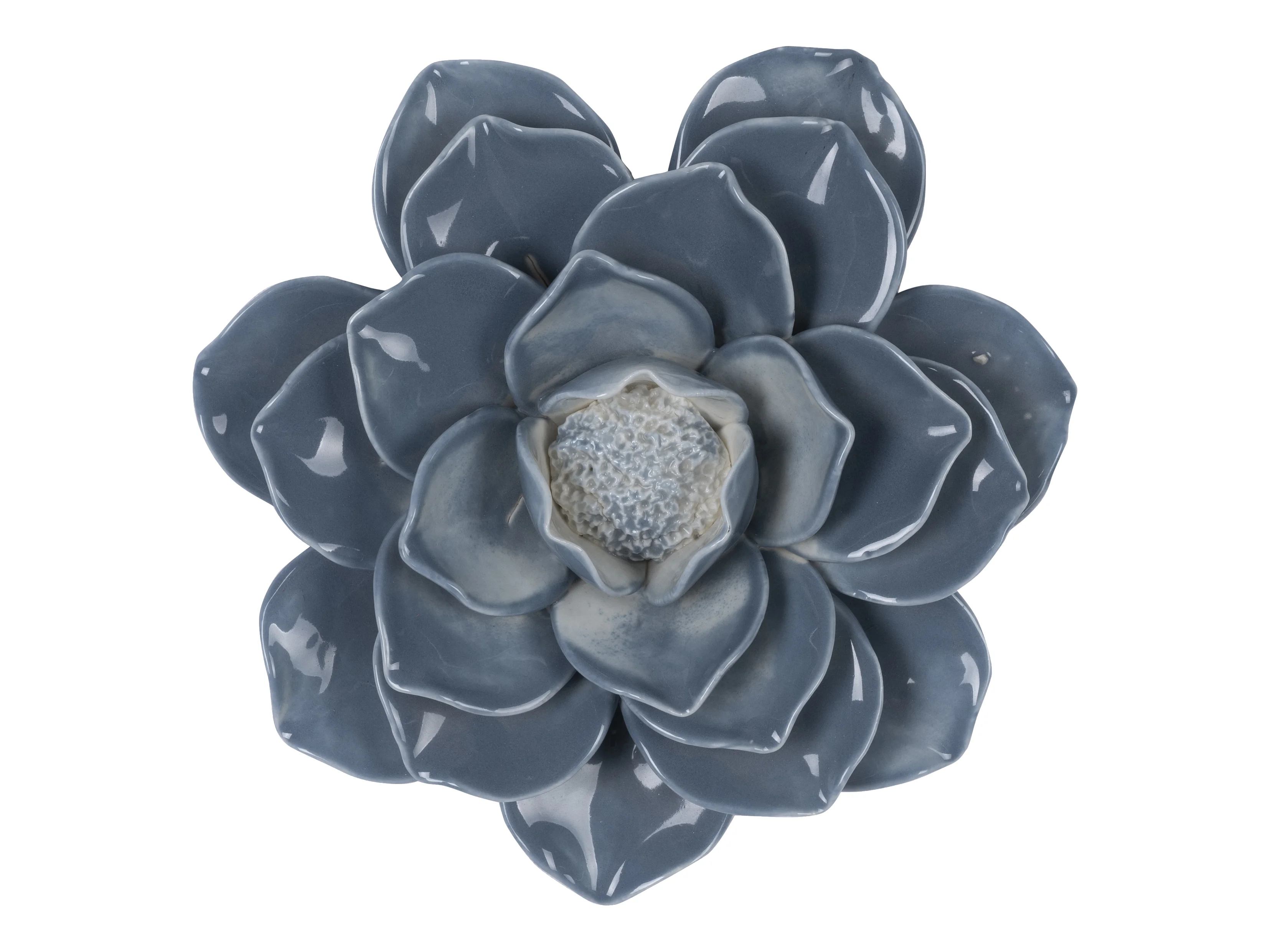 Déco murale fleur céramique bleu 17.4cm