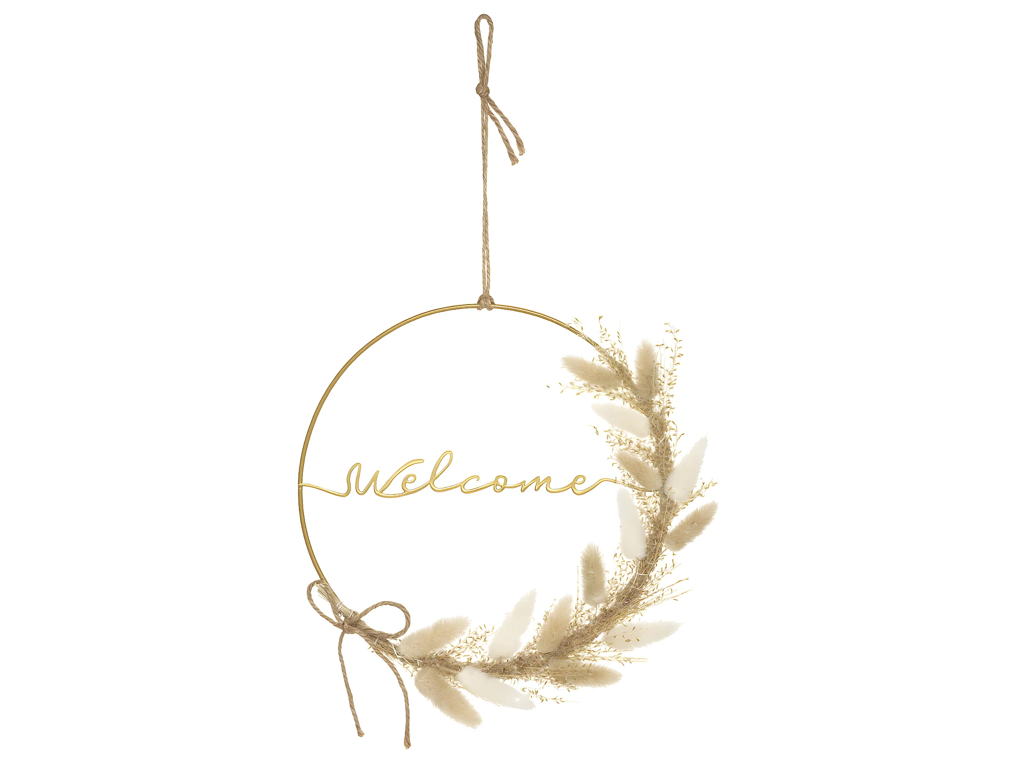 Déco murale Fleurs séchées sur cerceau en Métal Doré D 24 cm