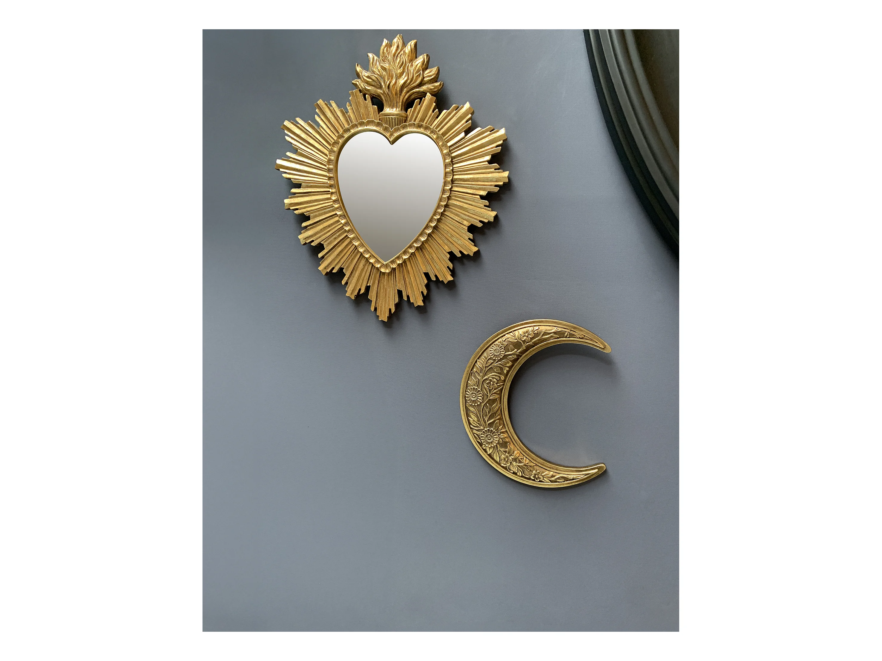 Déco murale ex-voto coeur plumes doré 24.7x25.3cm