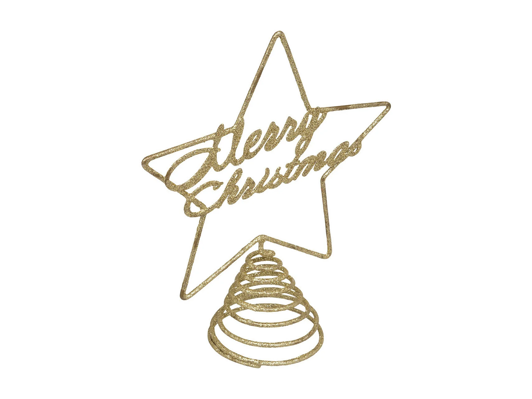 Déco Sapin de Noël Cimier Étoile "Merry Christmas" en métal Doré pailleté