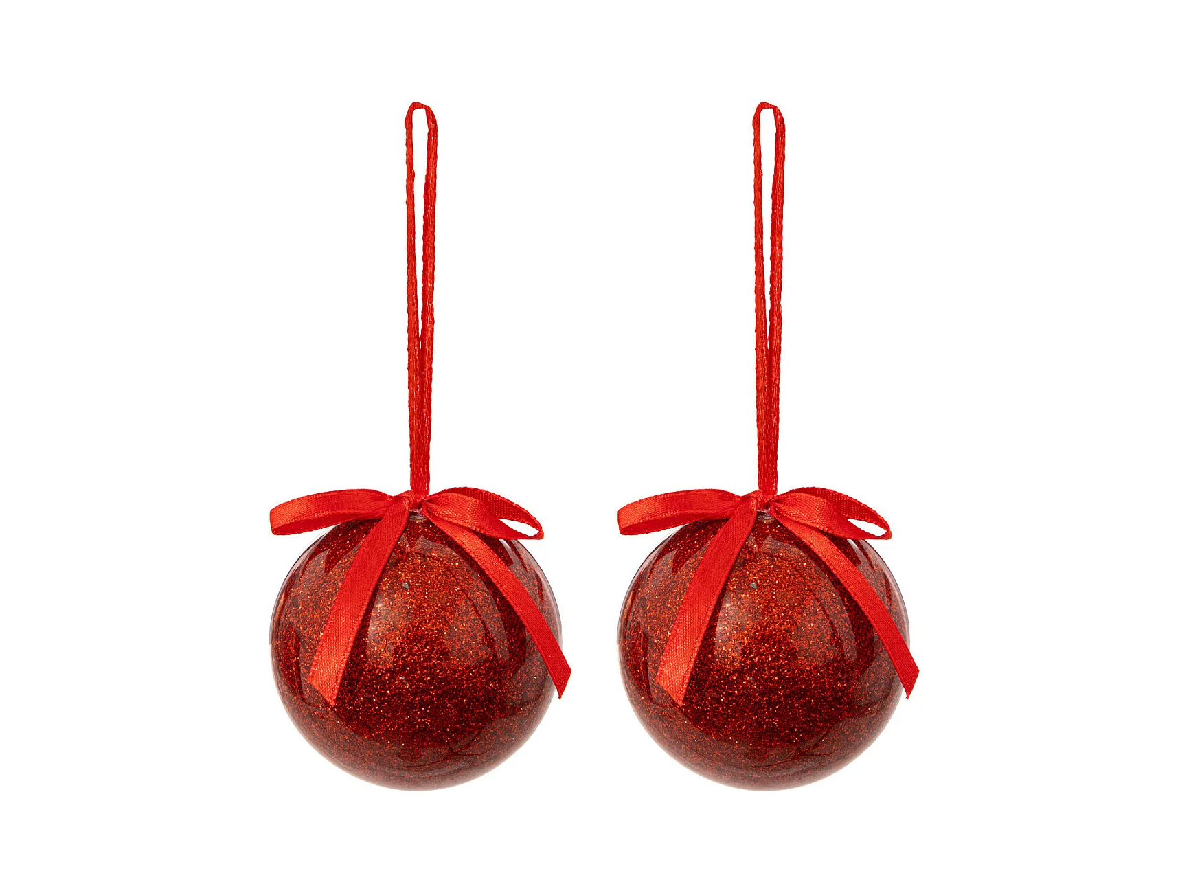 Déco Sapin Lot de 2 Boules de Noël Rouge pailleté D 6 cm