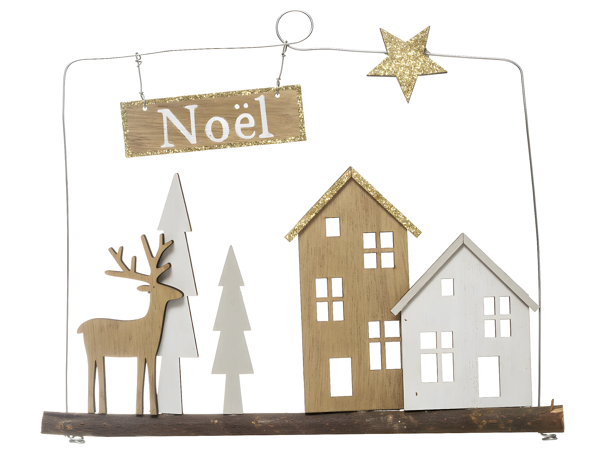 Déco de Noël Sapin en Bois ajouré avec Rennes et Branches L 15.5 x H 28.5 cm