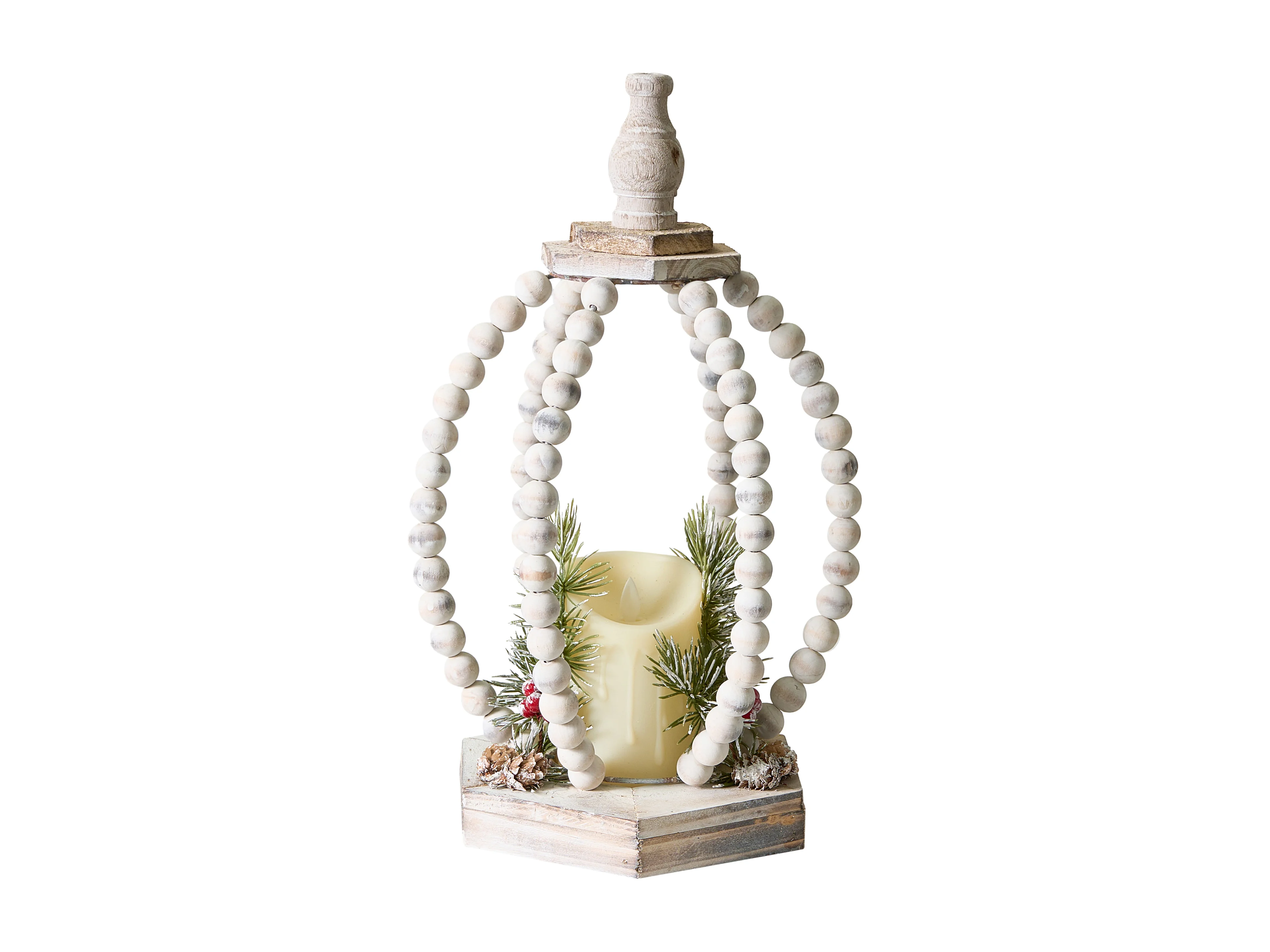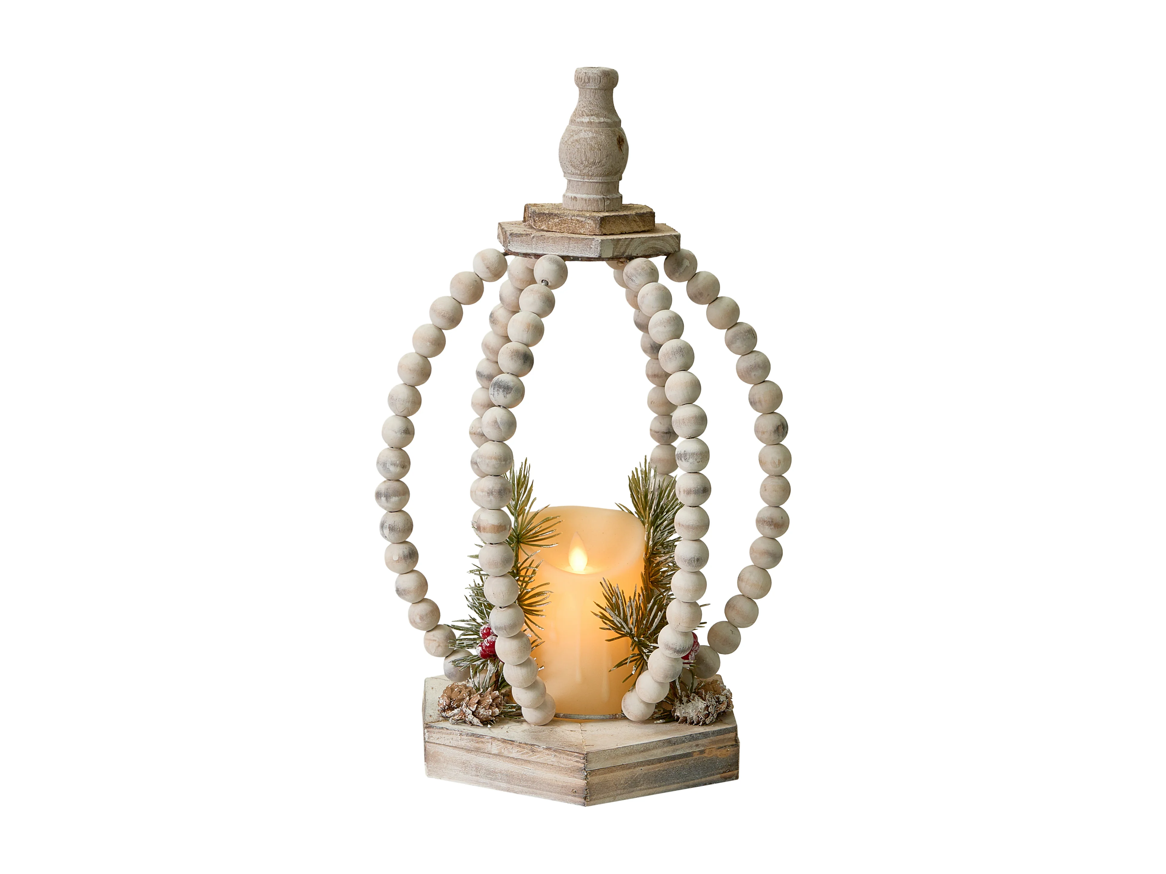 Déco Lumineuse Lanterne enneigée en bois LED Blanc chaud H 60 cm