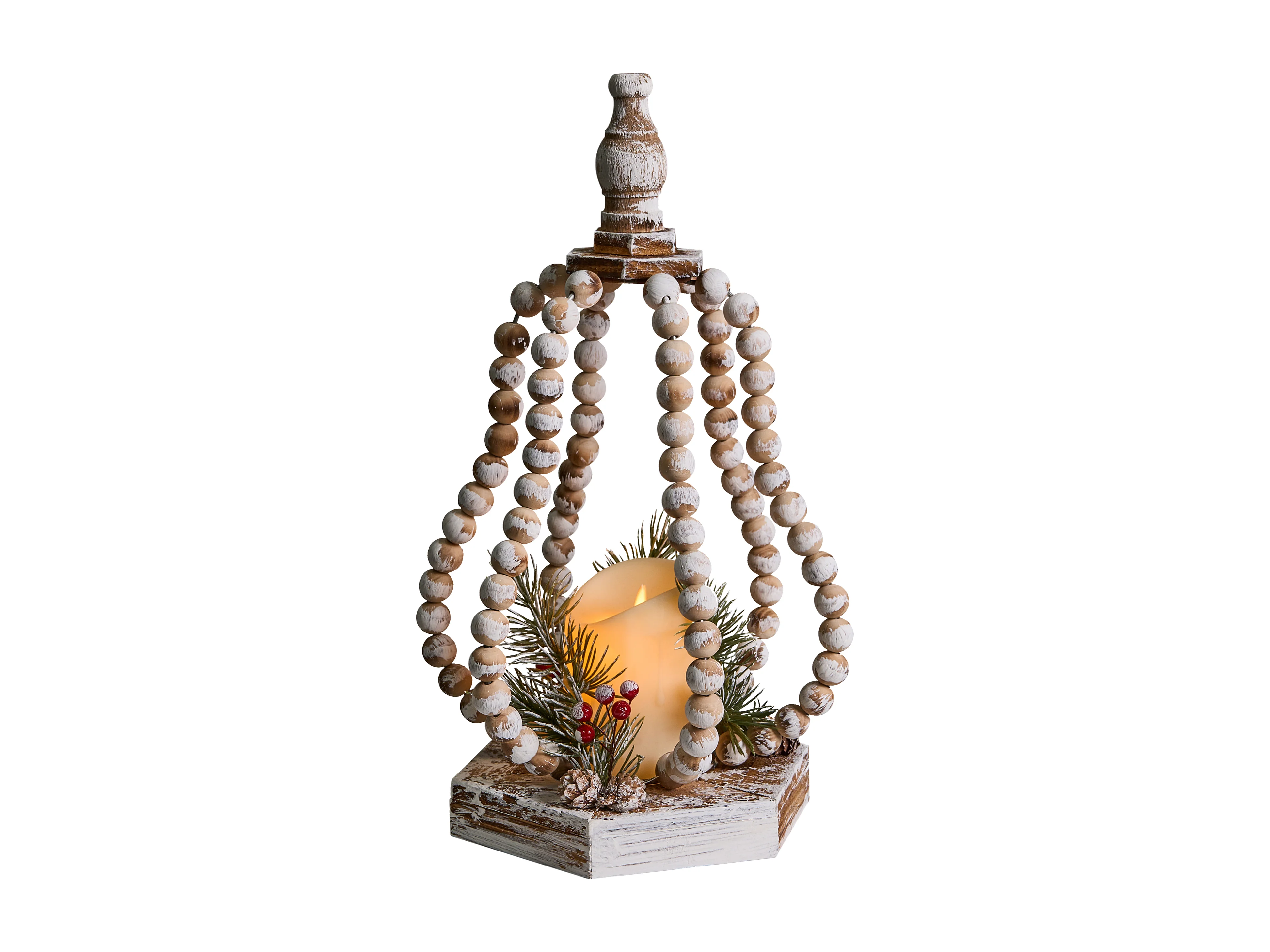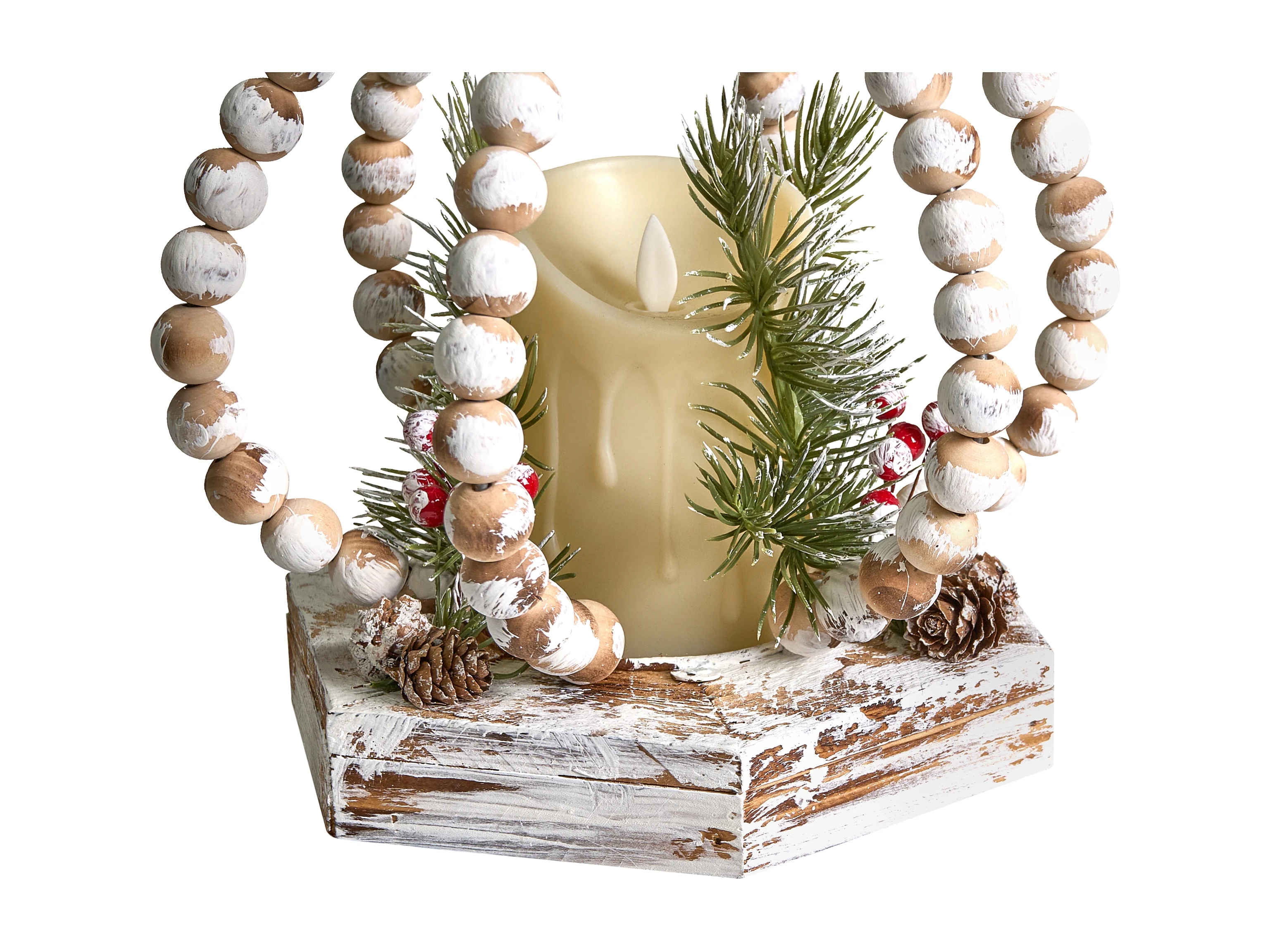 Déco Lumineuse Lanterne enneigée en bois LED Blanc chaud H 60 cm