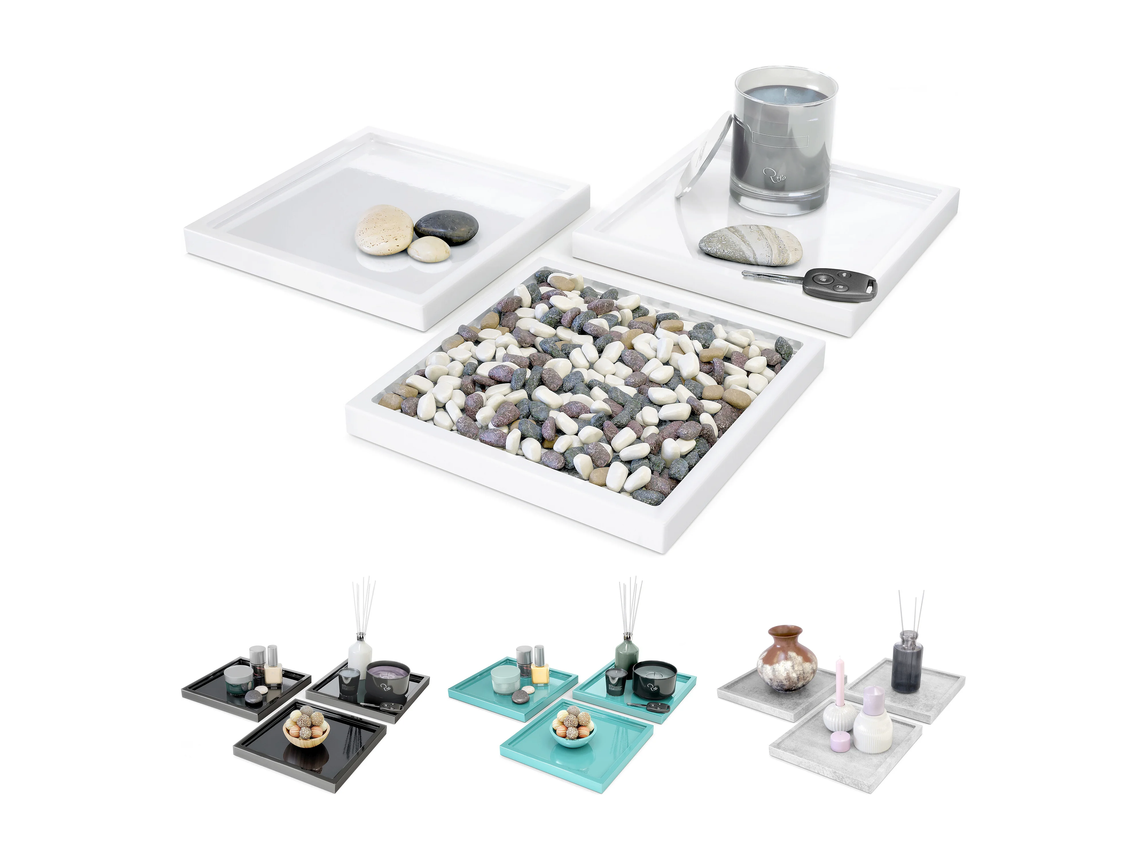 Décoration de table Maya, Plateau rectangulaire décoratif et moderne, Aspect Béton Oxyde, 3 pièces (20 x 1,8 x 20 cm)