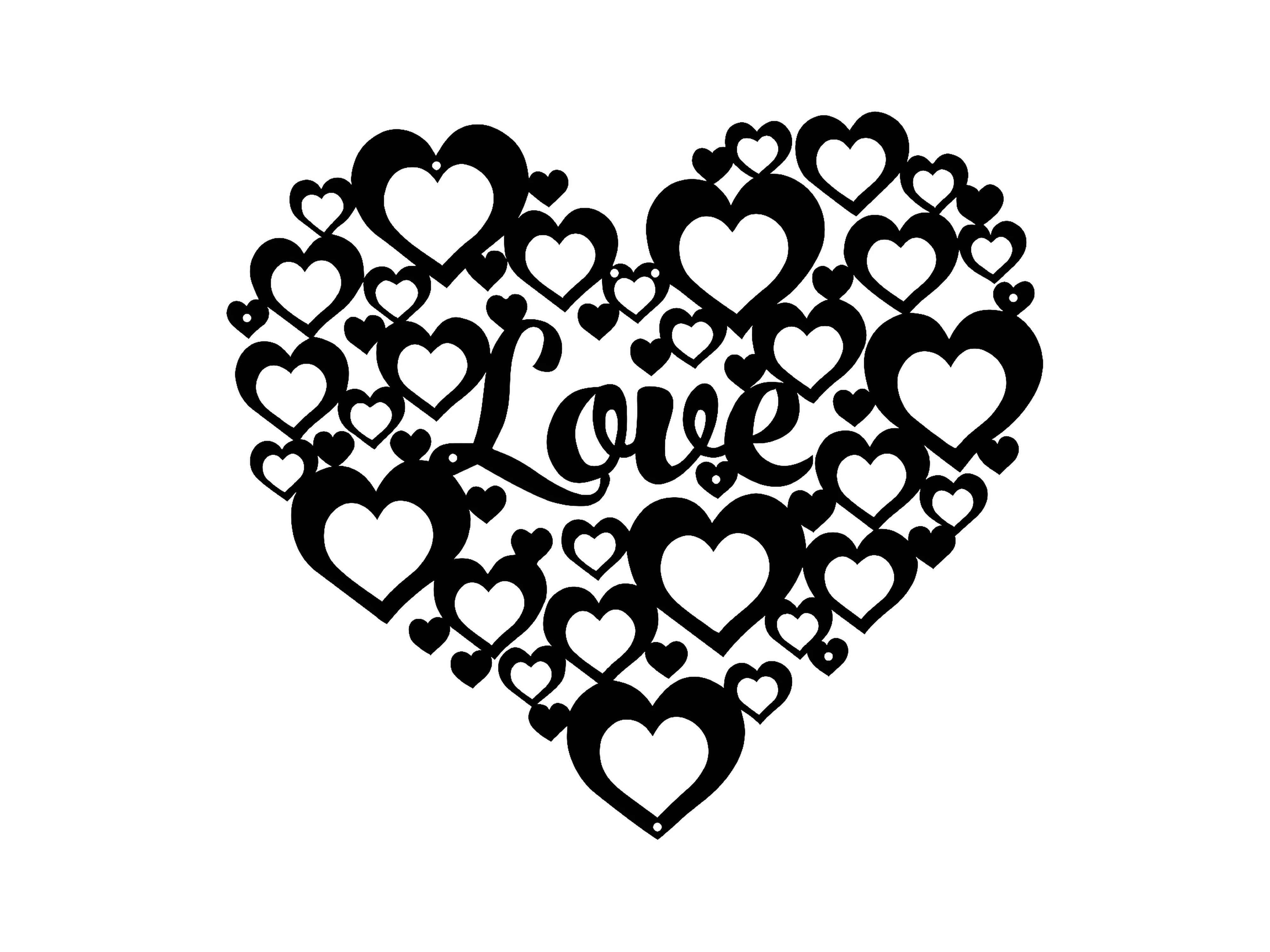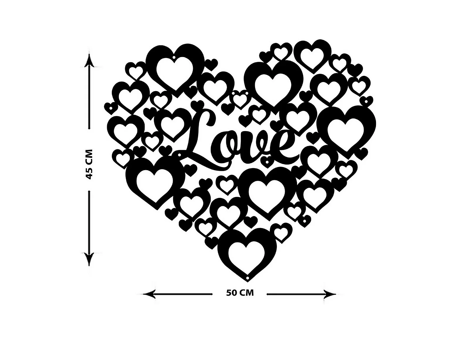Décoration en Métal Cœur 5, Noir, 50x1,5x45 cm, EPIKASA