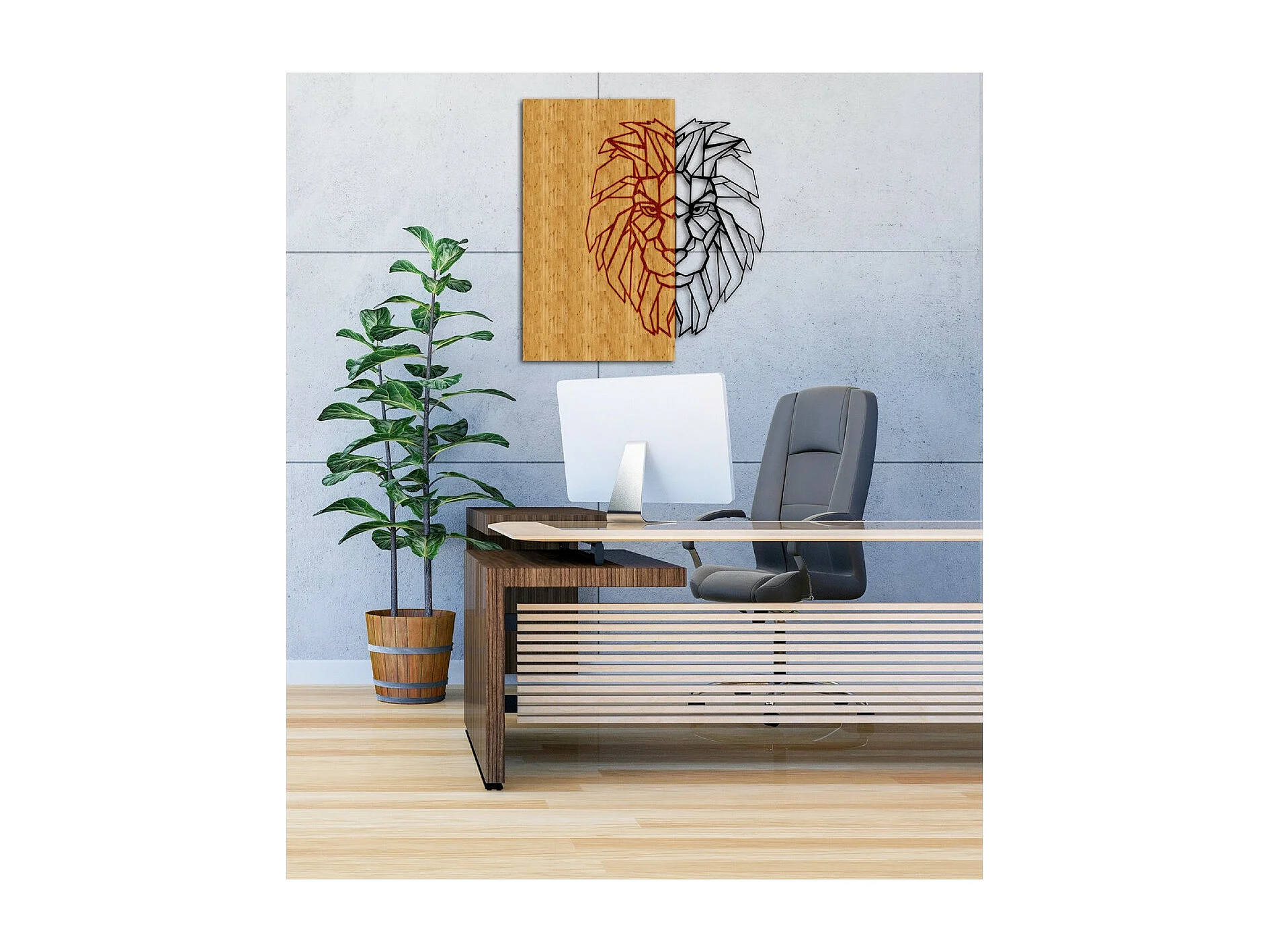 Décoration en Métal et Bois Lion 1, Bois, 46x1,8x50 cm, EPIKASA