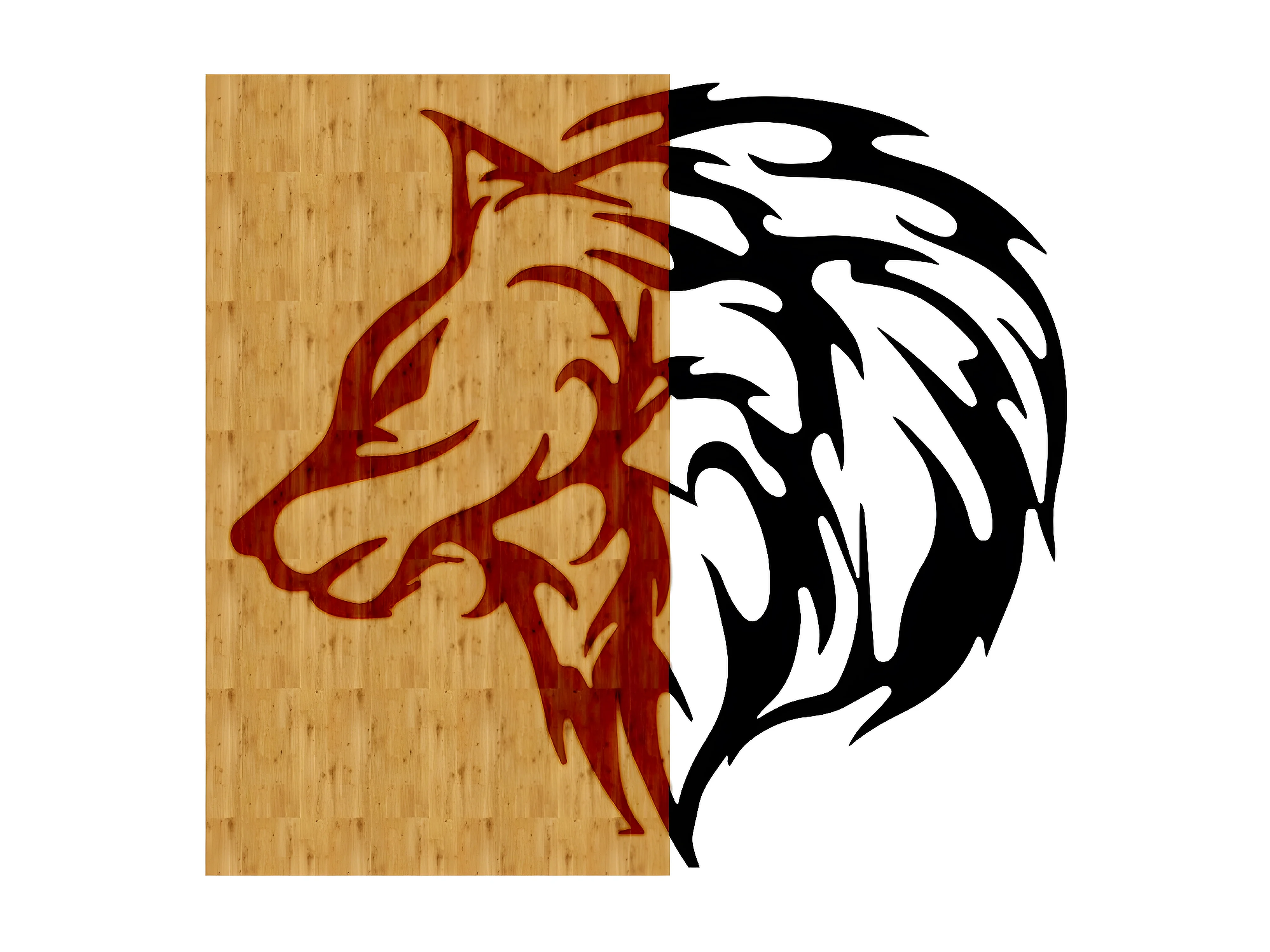 Décoration en Métal et Bois Loup 1, Bois, 55x1,8x50 cm, EPIKASA