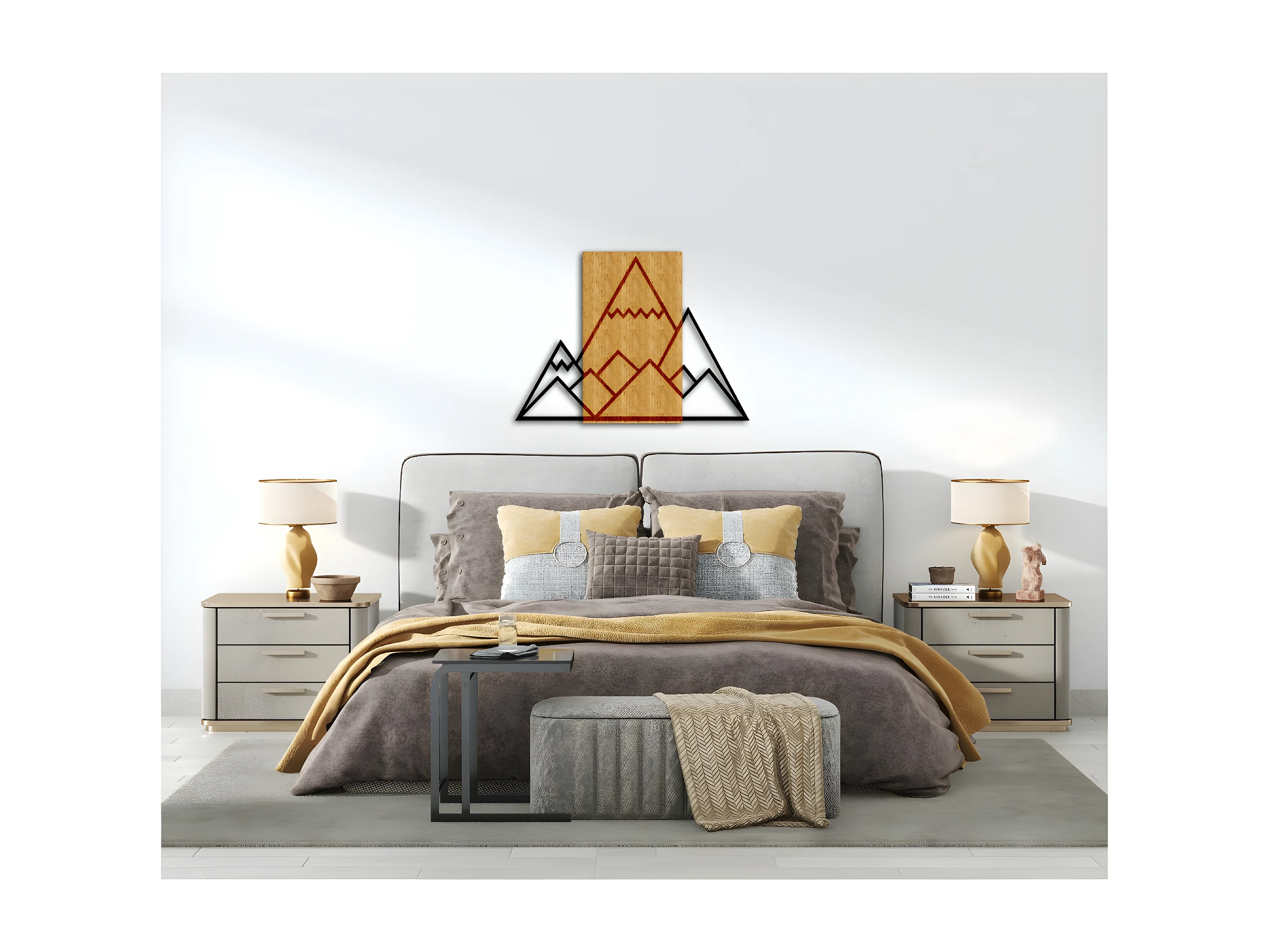 Décoration en Métal et Bois Montagnes 1, Bois, 69x1,8x50 cm, EPIKASA