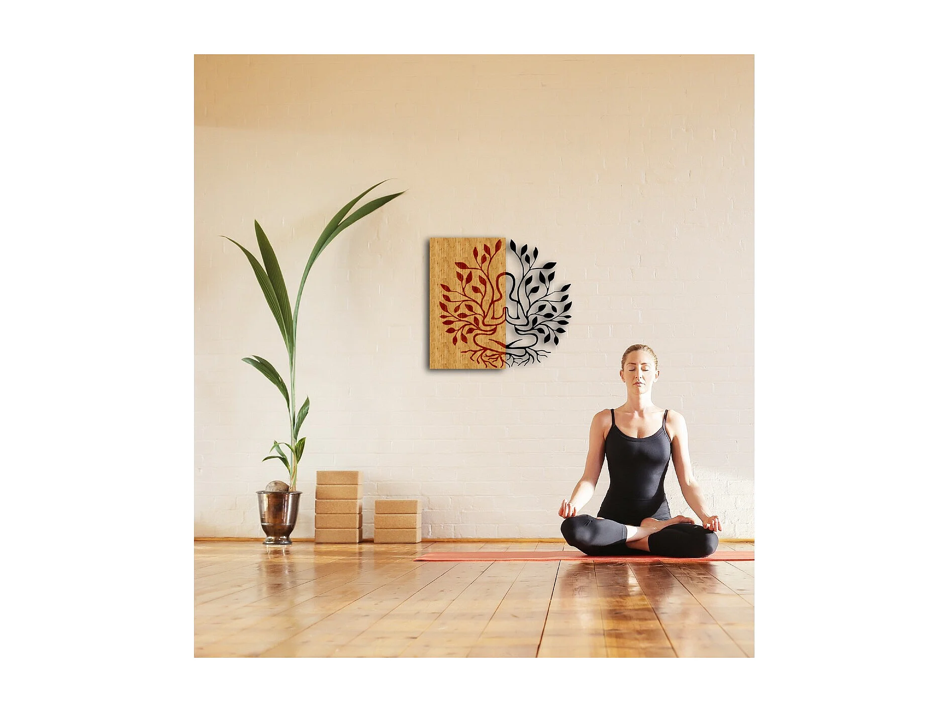 Décoration en Métal et Bois Yoga, Bois, 50x1,8x50 cm, EPIKASA