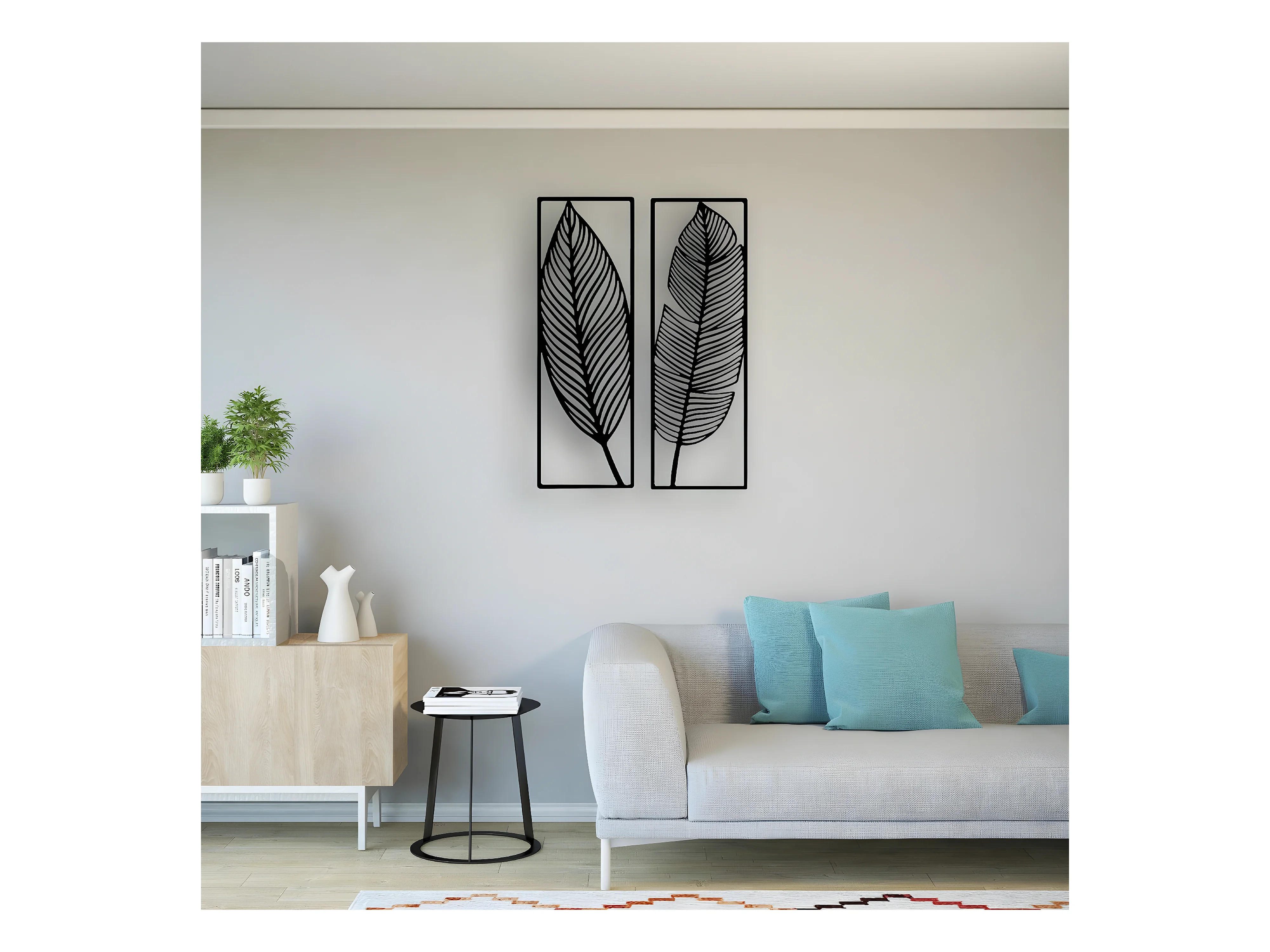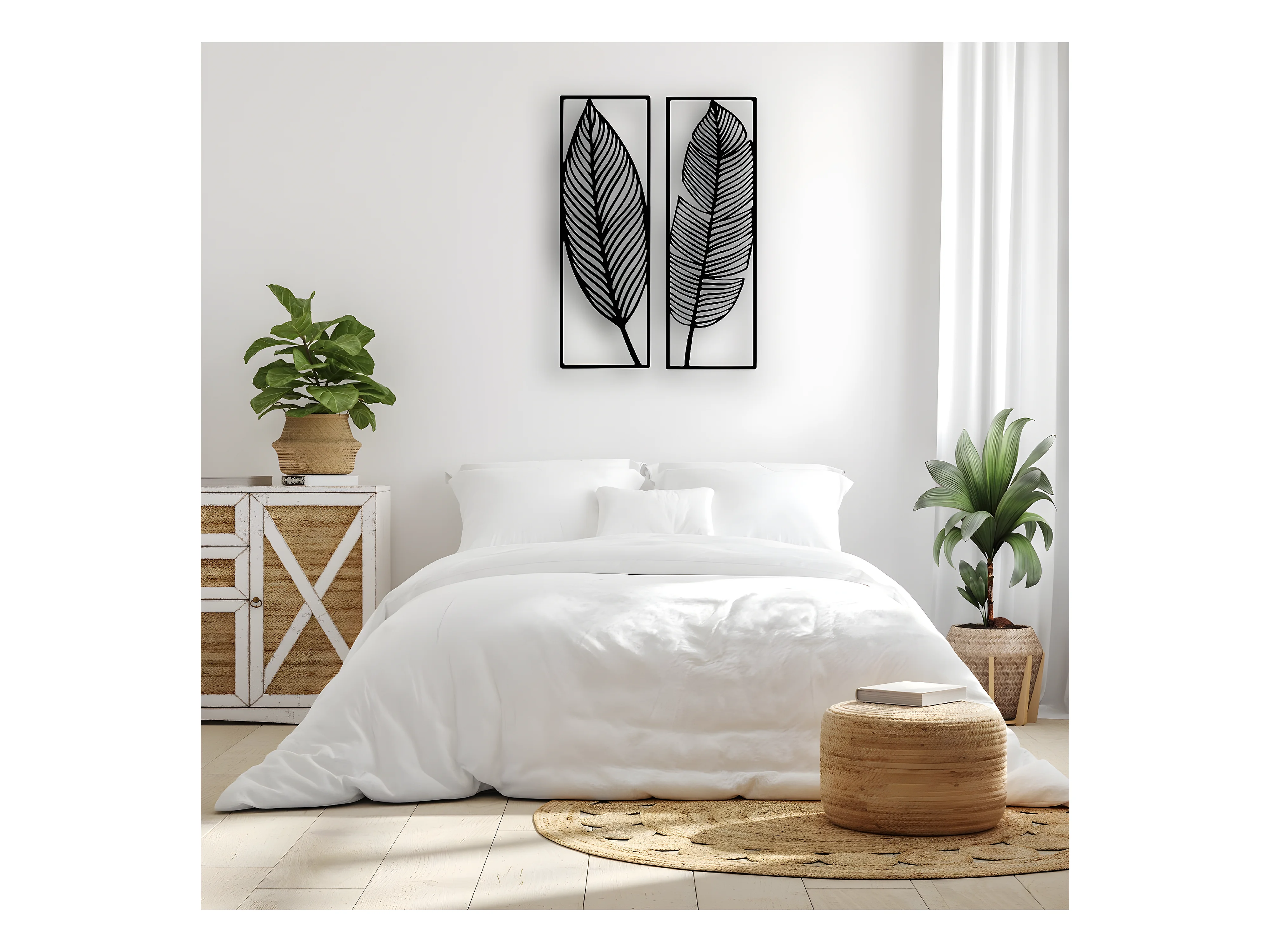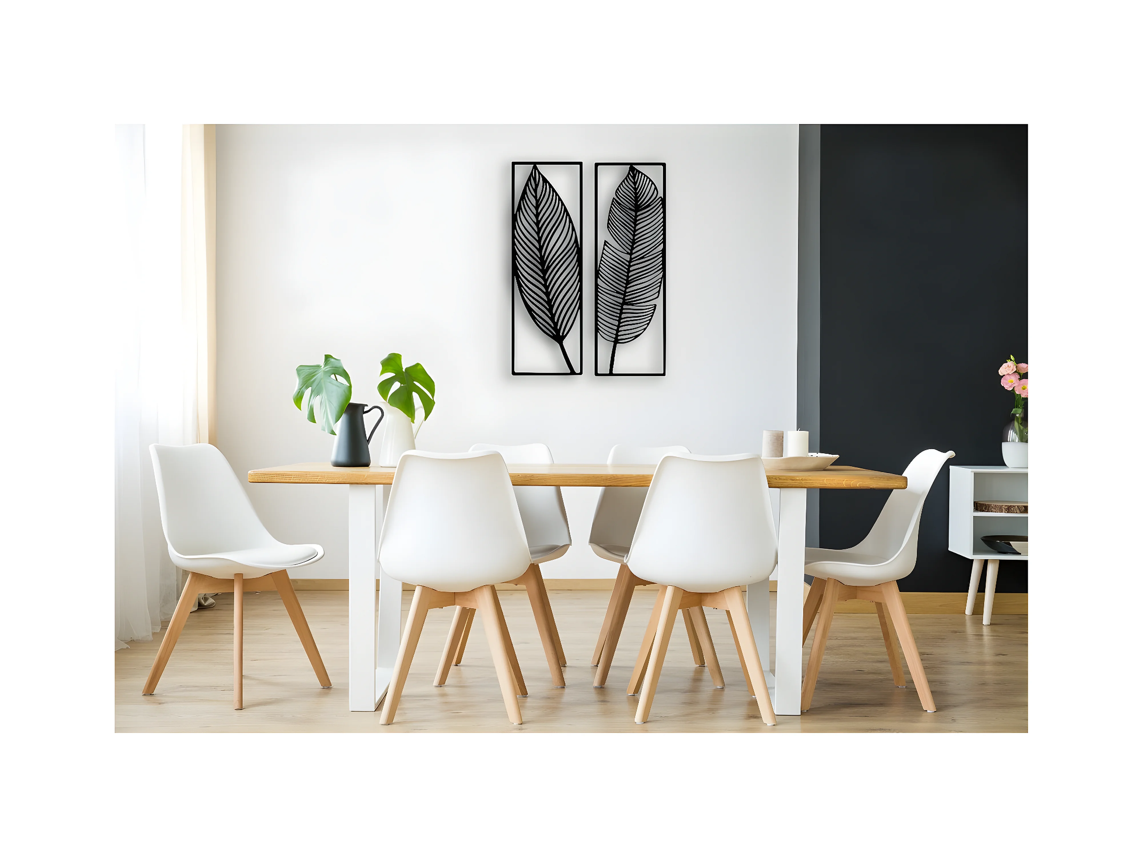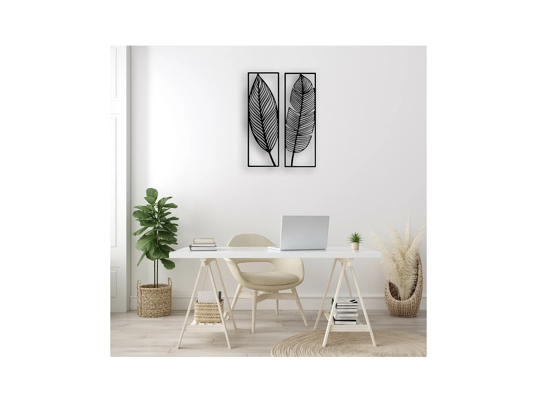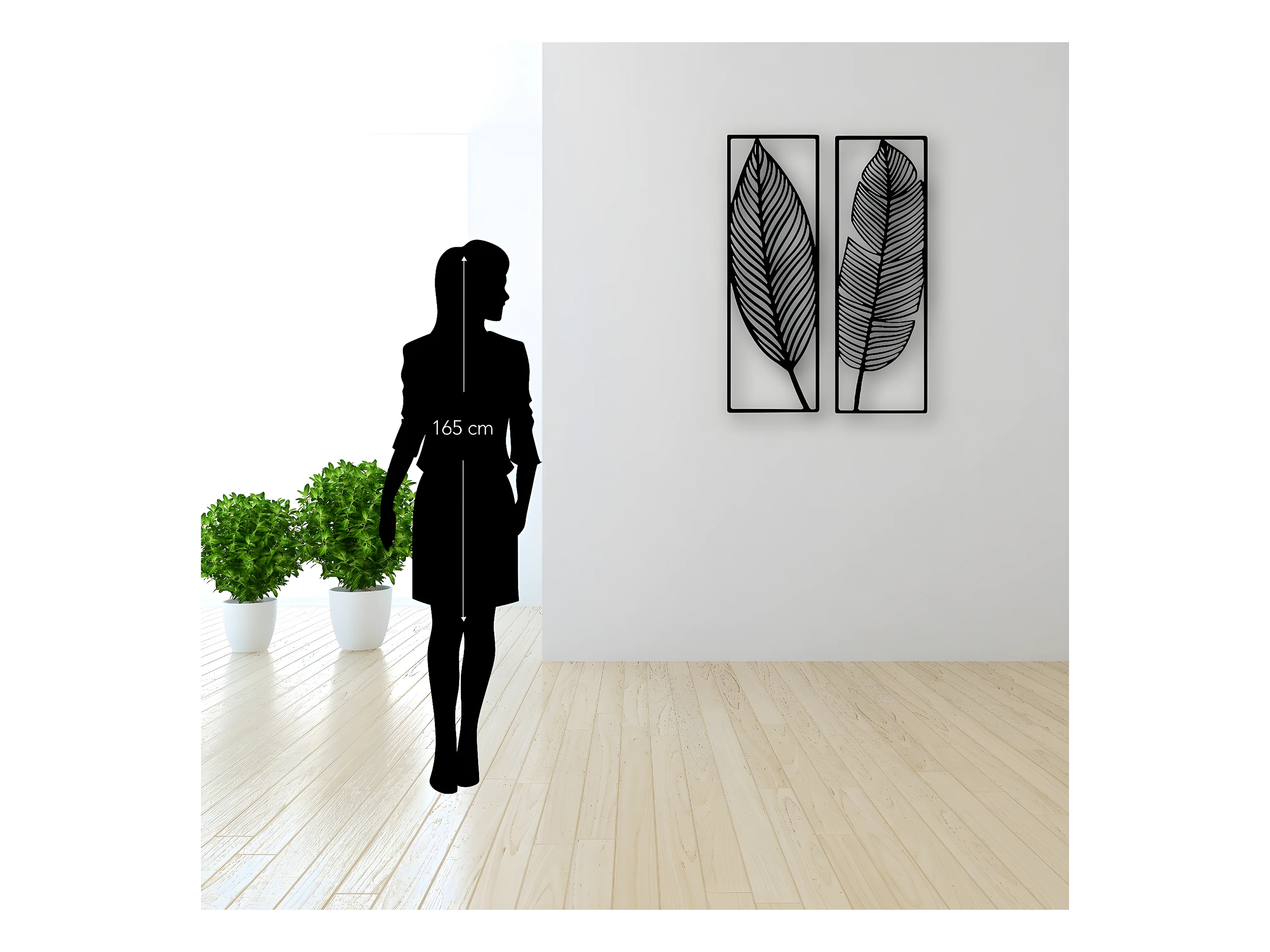 Décoration en Métal Feuille 6, Noir, 65x1,5x90 cm, EPIKASA