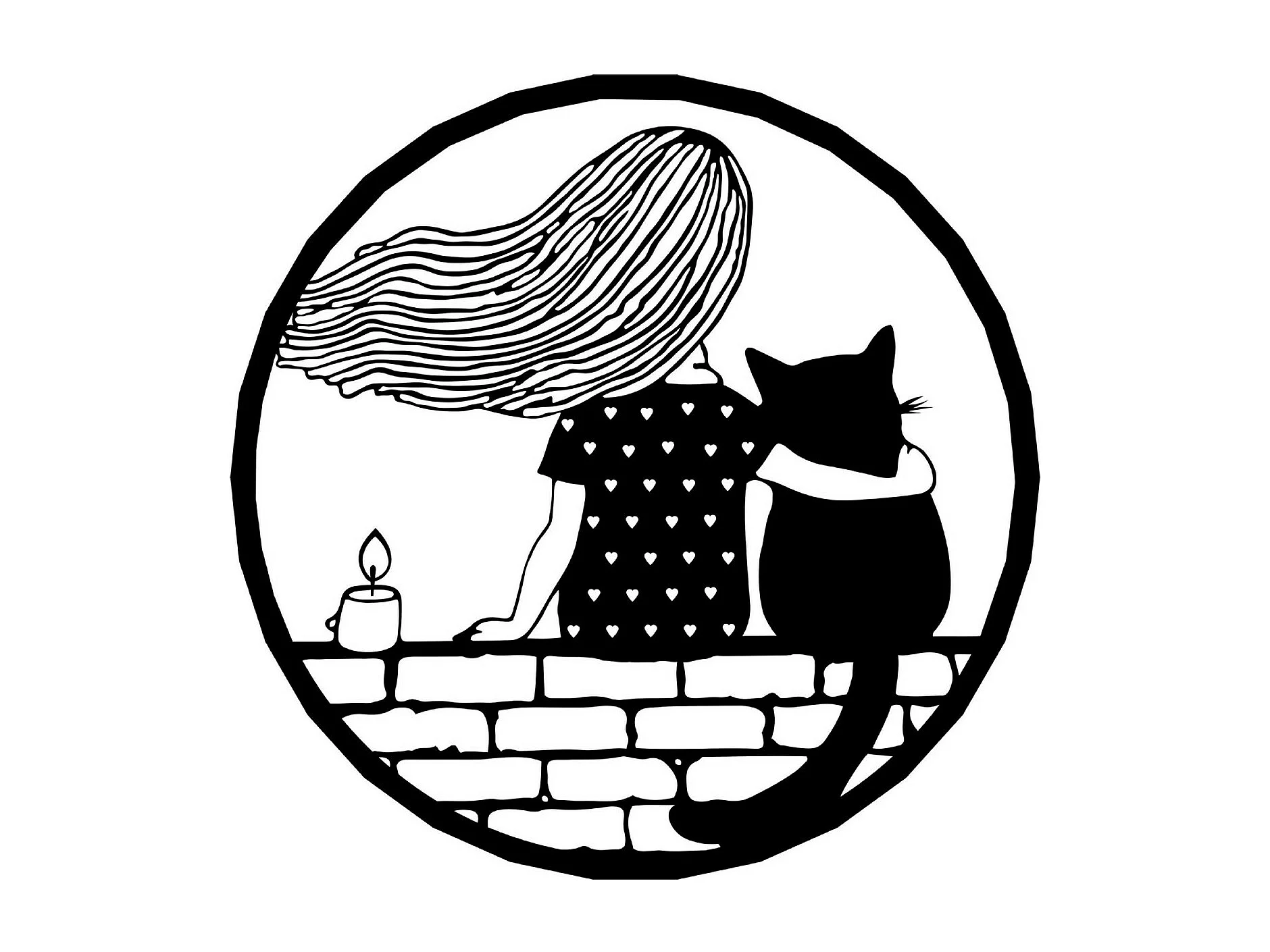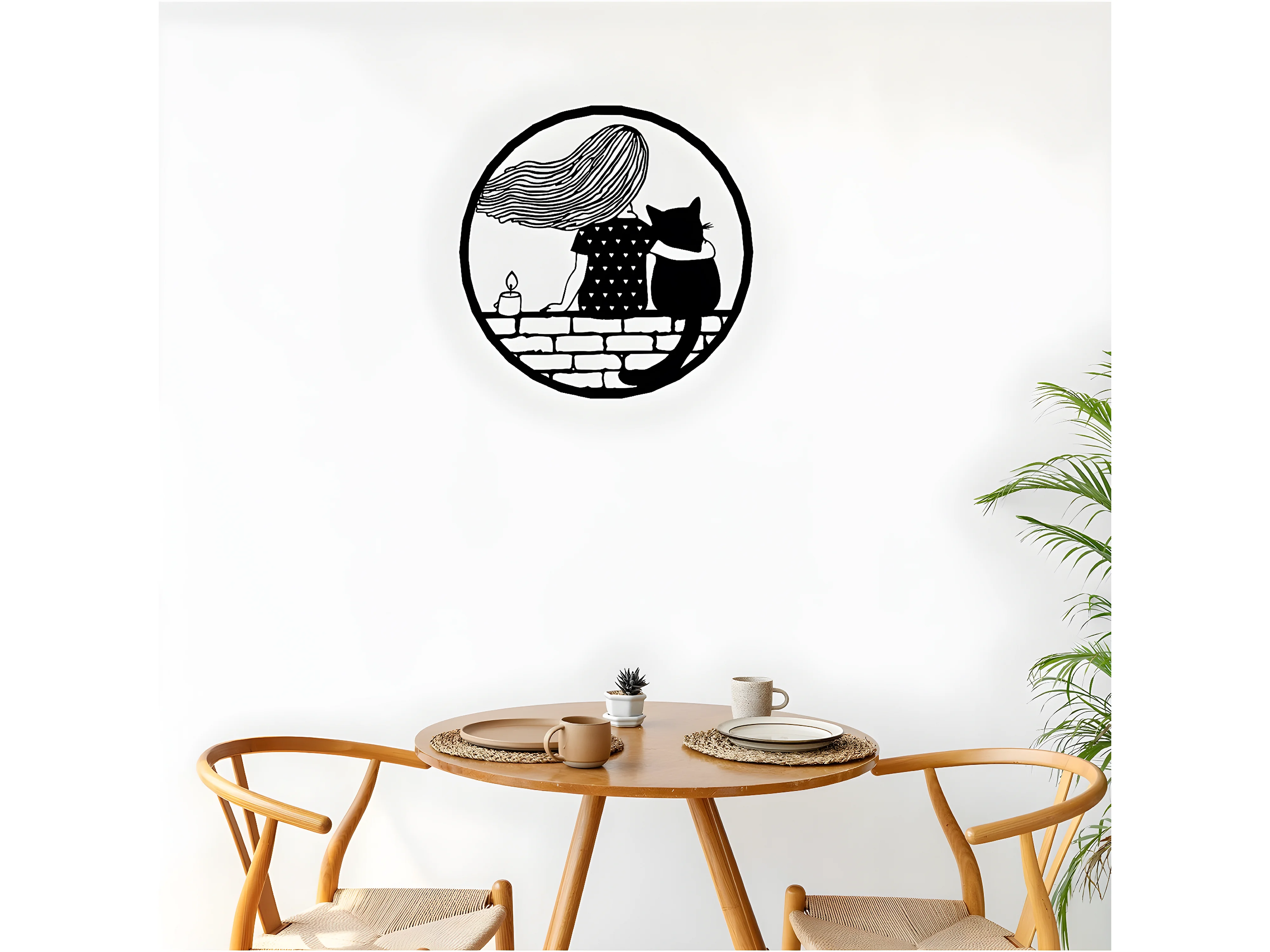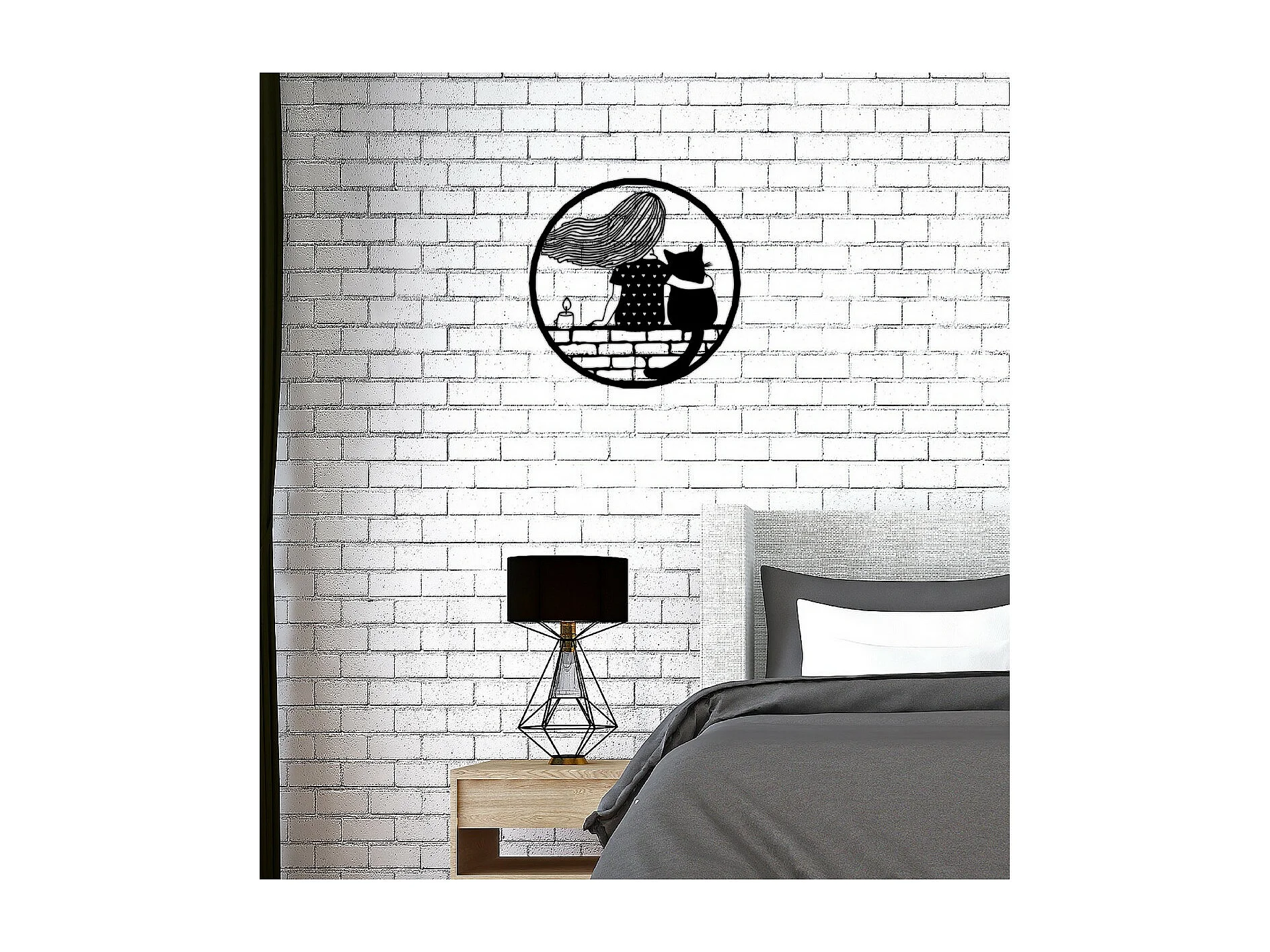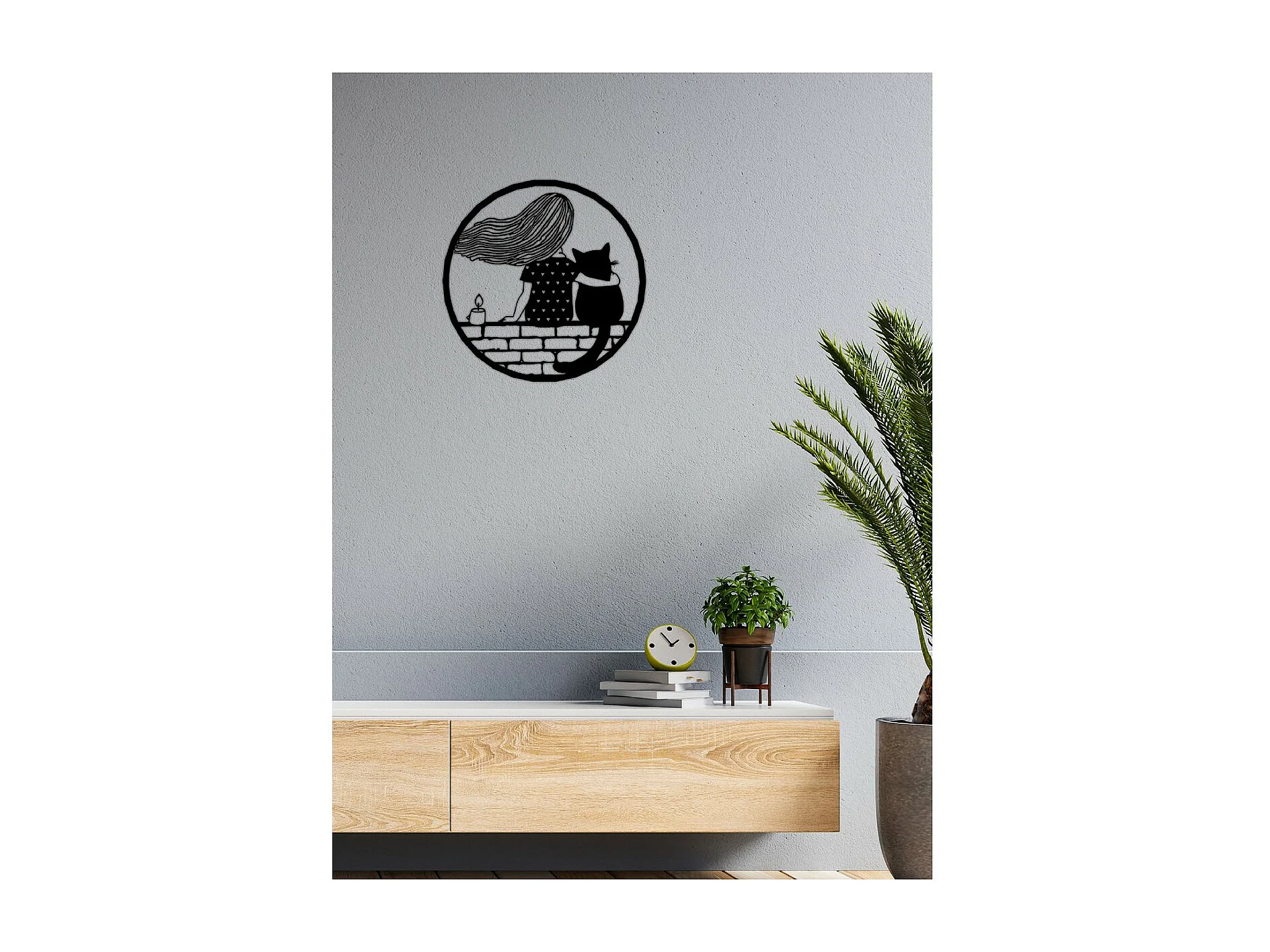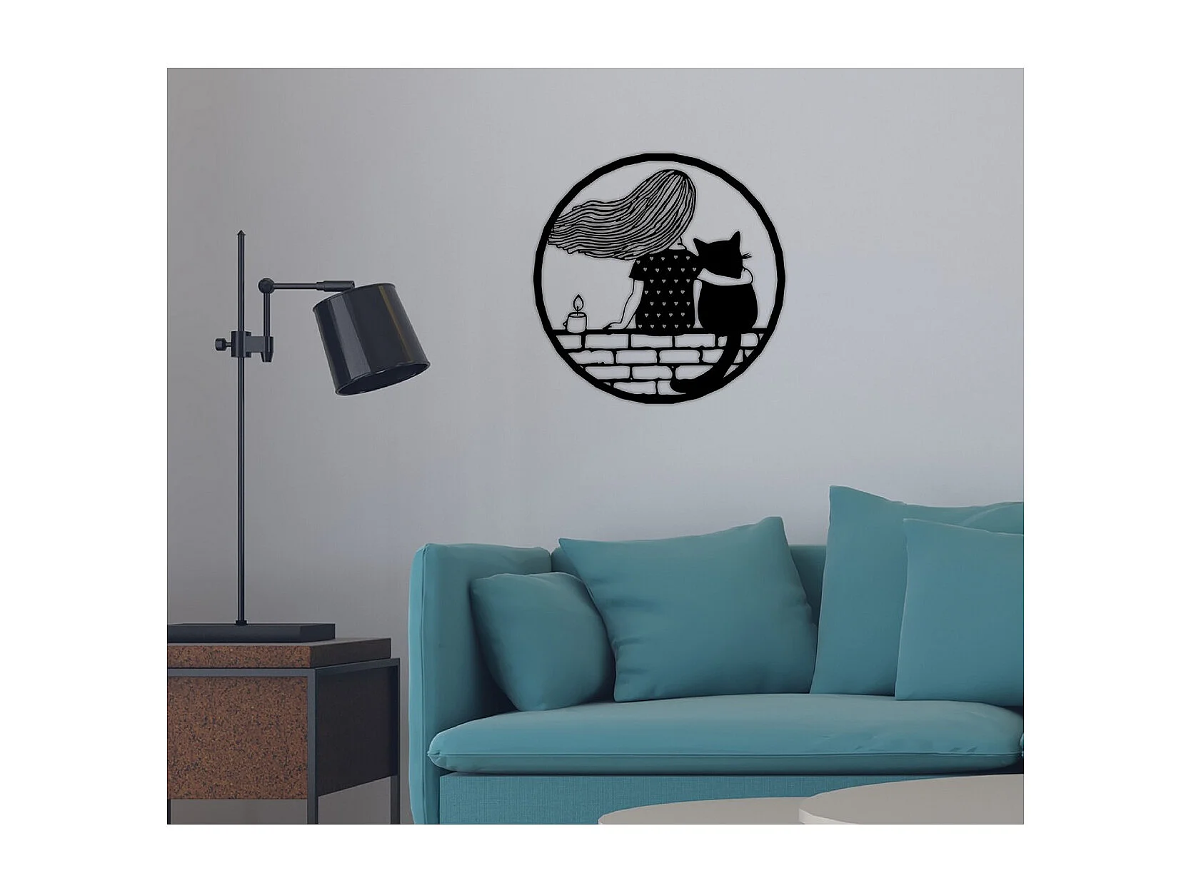 Décoration en Métal Girl and cat, Noir, 60x1,5x60 cm, EPIKASA