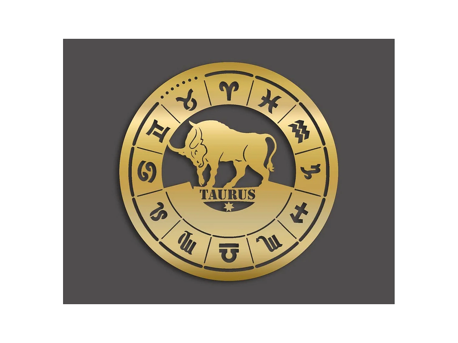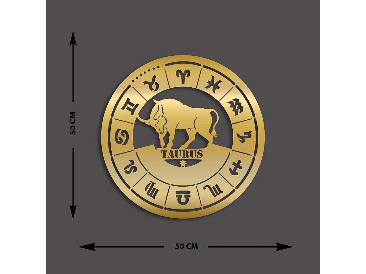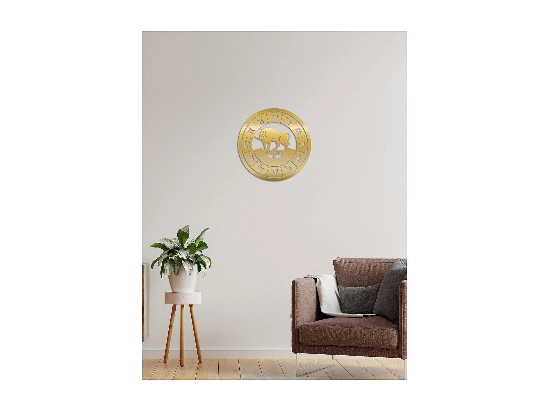 Décoration en Métal Horoscope Taureau 2, Or, 50x0,15x50 cm, EPIKASA