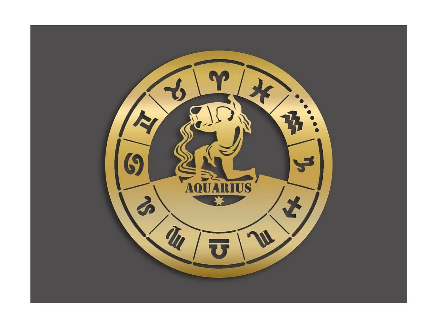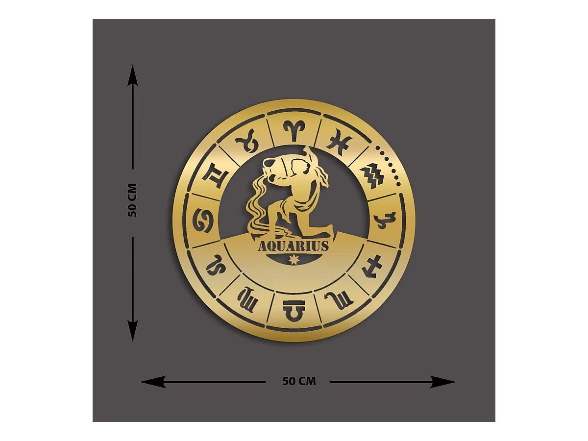Décoration en Métal Horoscope Verseau 2, Or, 50x0,15x50 cm, EPIKASA