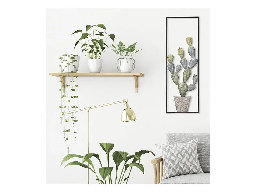 Déco Murale Encadrée en Métal "Cactus" 90cm Multicolore