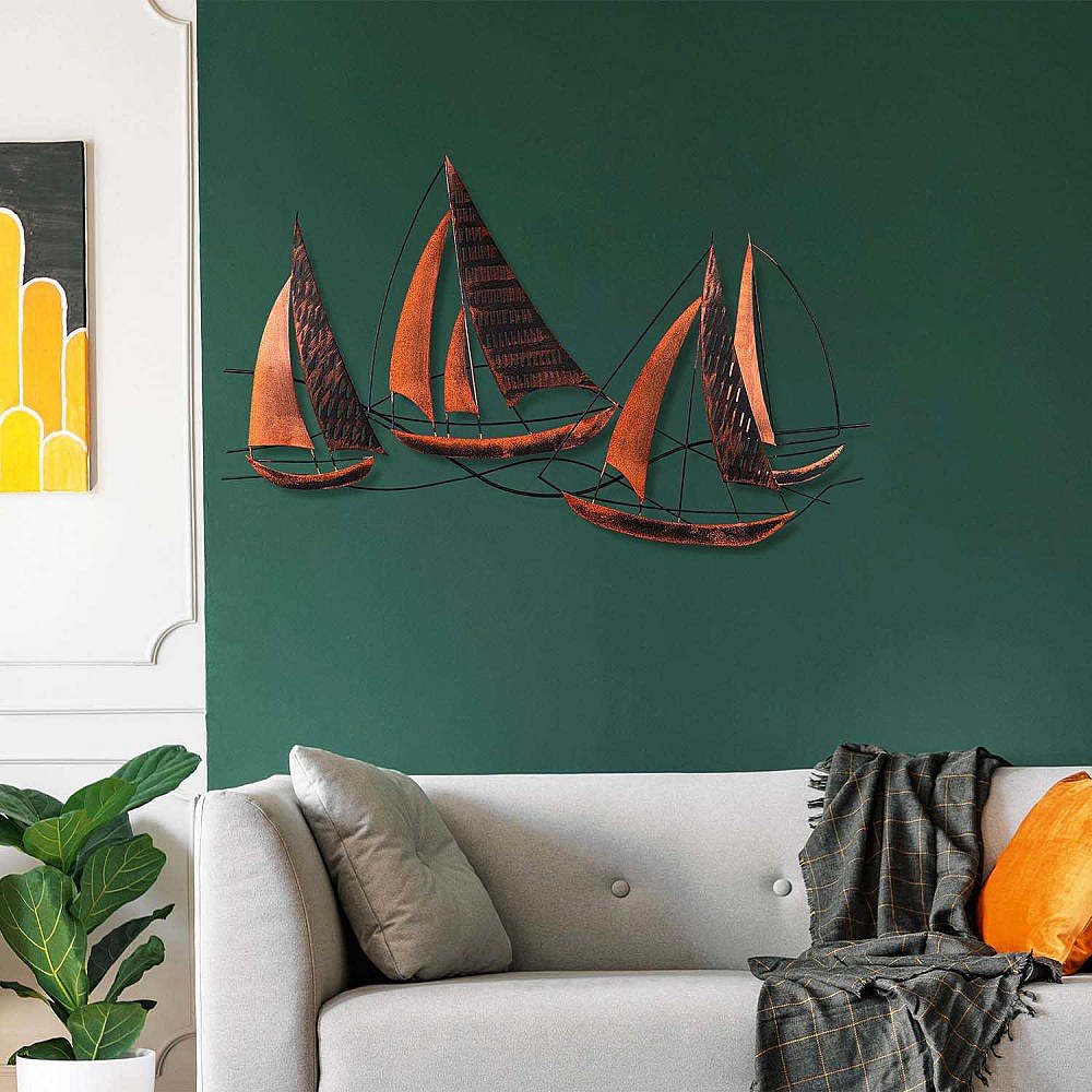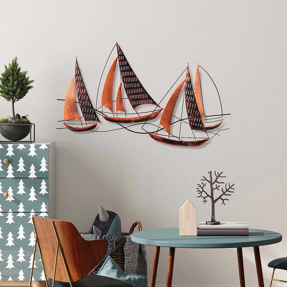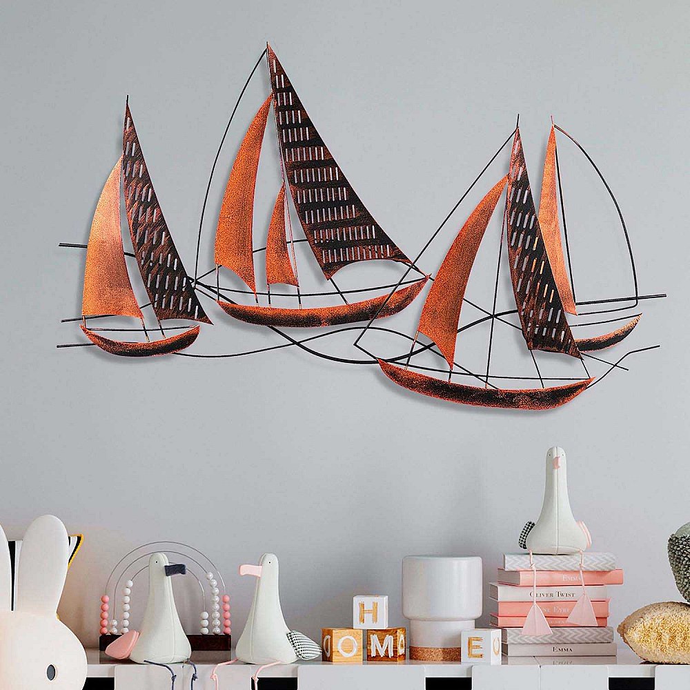 Décoration murale en métal - Mer Bateaux (effet rouille)