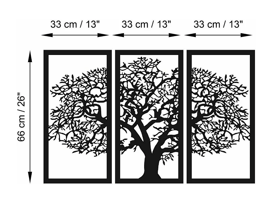 Triptyque décoratif Claudia L116xH71cm Un baiser d'arbres Métal Noir