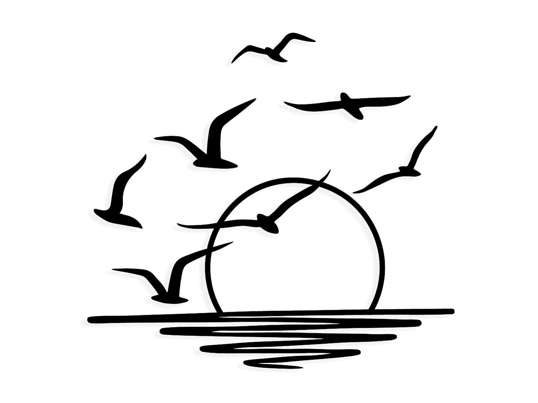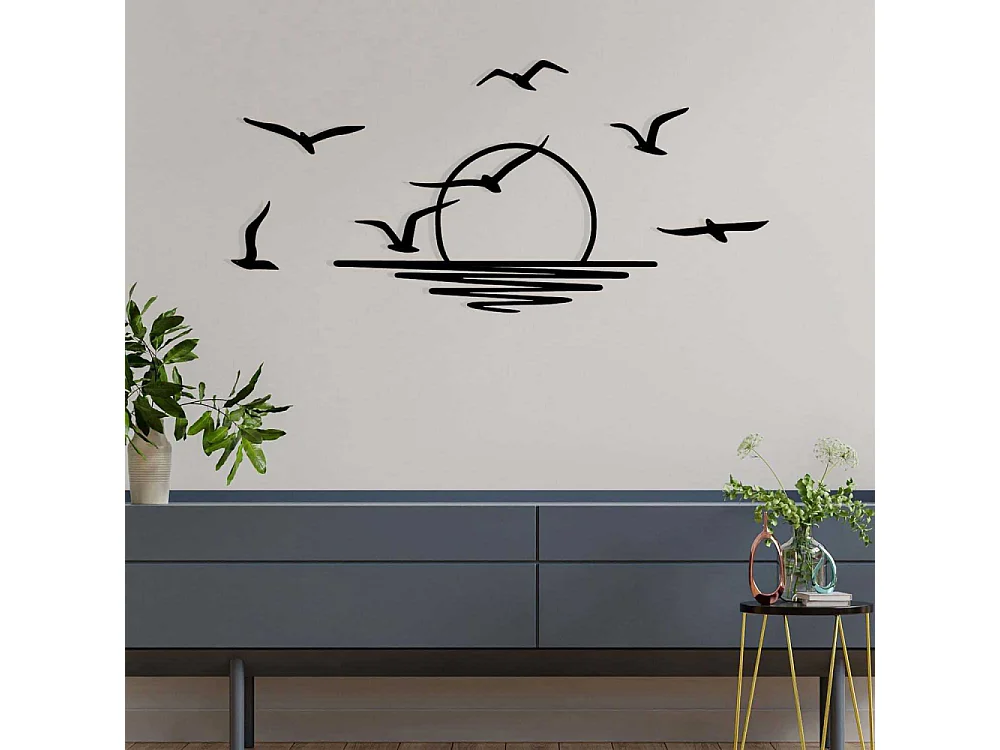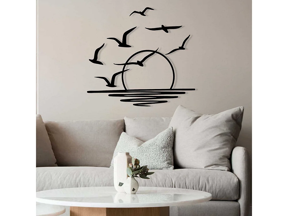 Décoration murale en métal Nature Coucher de soleil avec oiseaux
