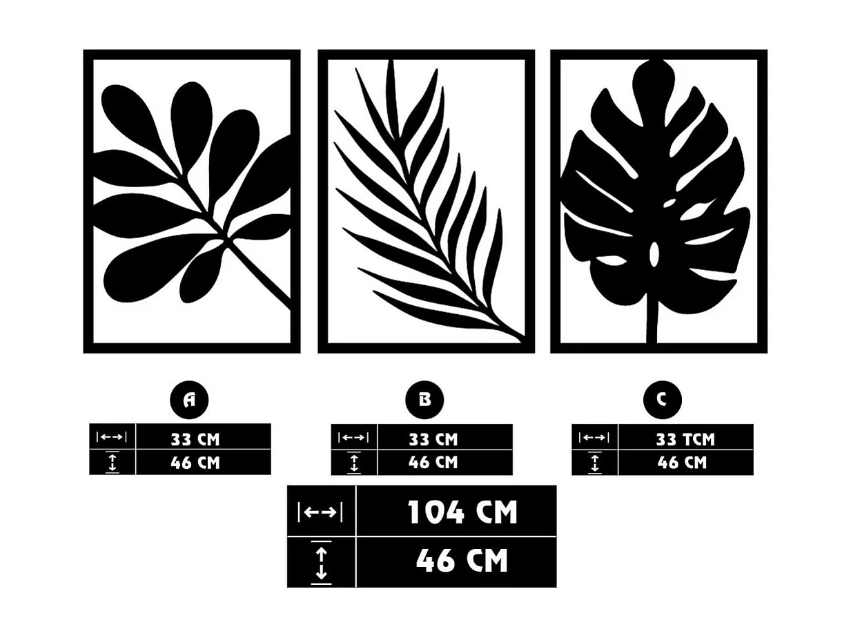 Triptyque décoratif Claudia L116xH71cm Un baiser d'arbres Métal Noir