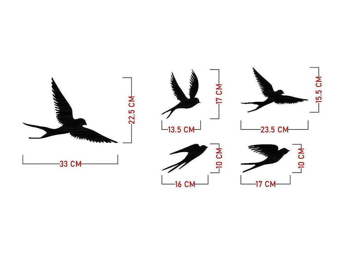 Décoration murale en métal Oiseaux en vol Modèle 3