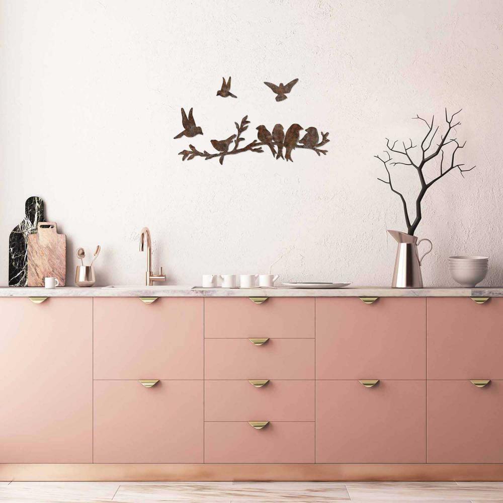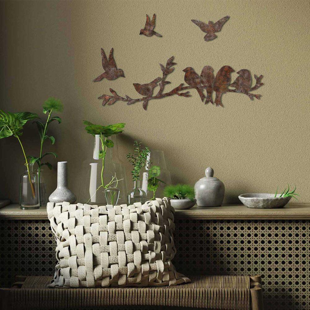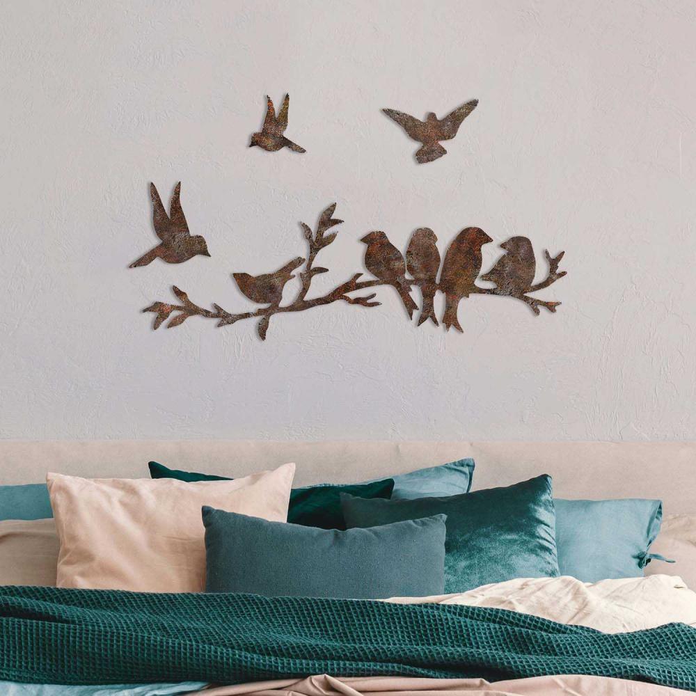 Décoration murale en métal Oiseaux Oiseaux sur branche (effet rouillé)