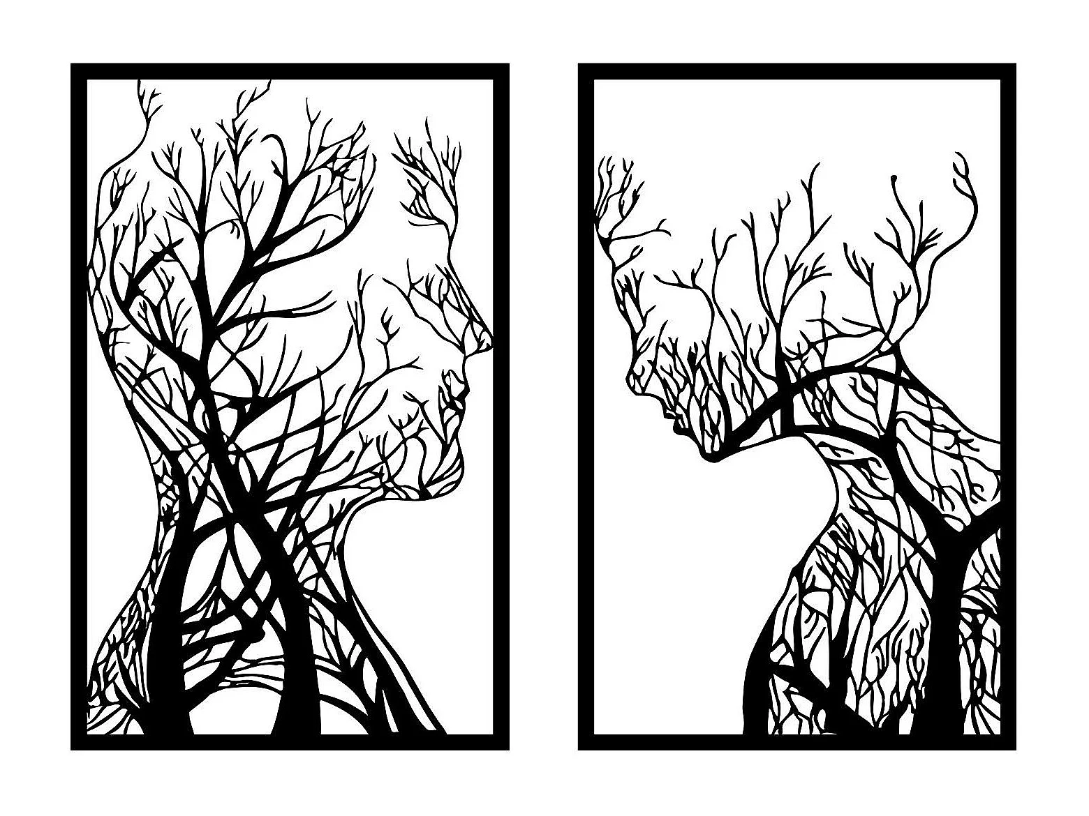 Triptyque décoratif Claudia L116xH71cm Un baiser d'arbres Métal Noir